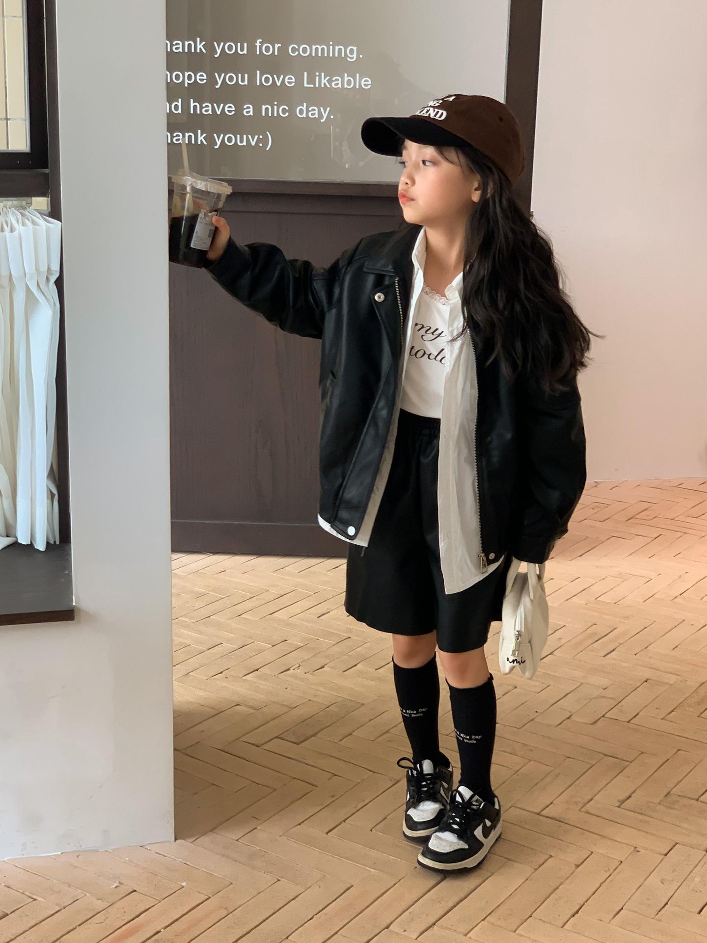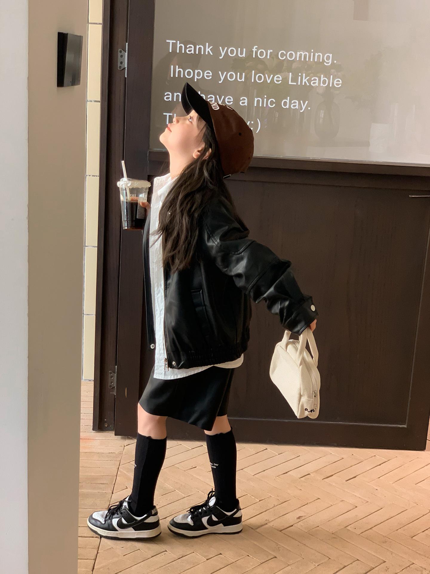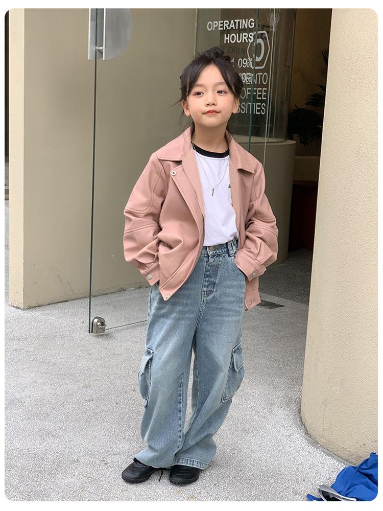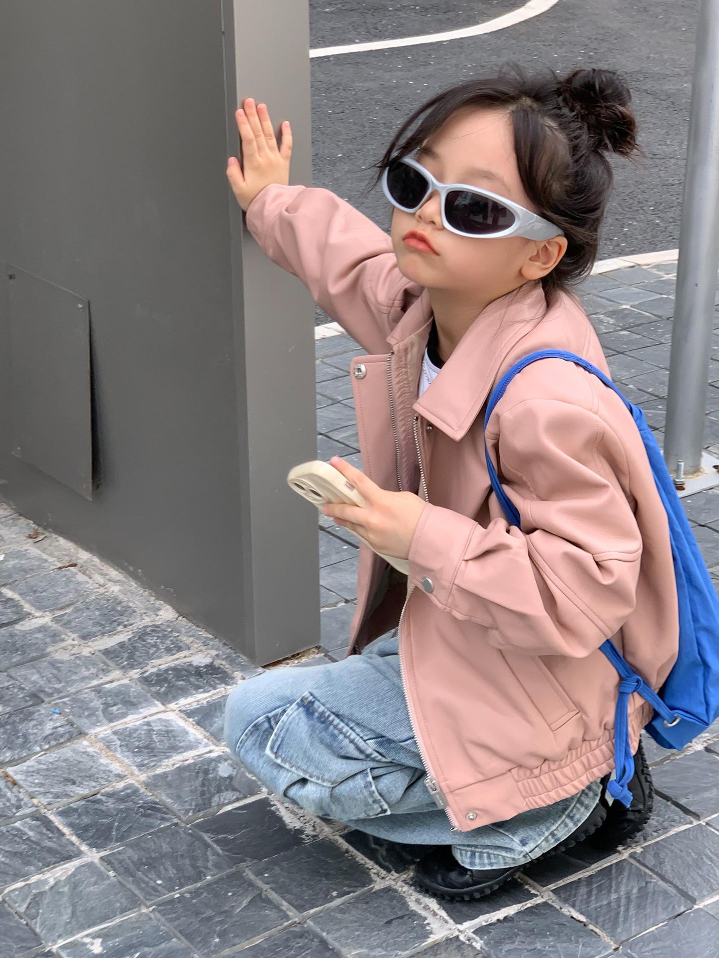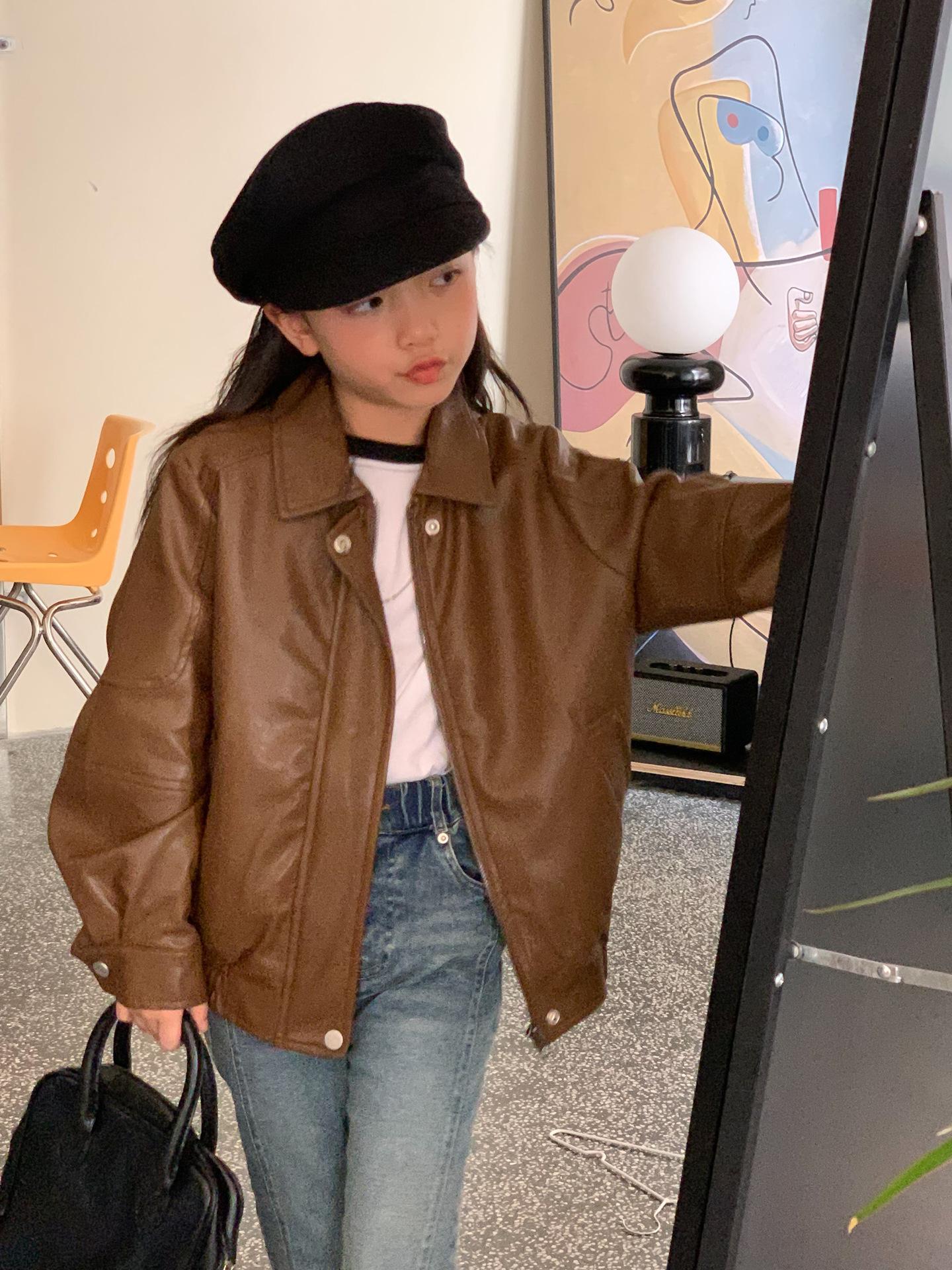 Chaquetas de Cuero para Niñas Otoño 2025 Nuevo Estilo Coreano de Moda Chaqueta de Cuero Pu de Motociclista para Niños