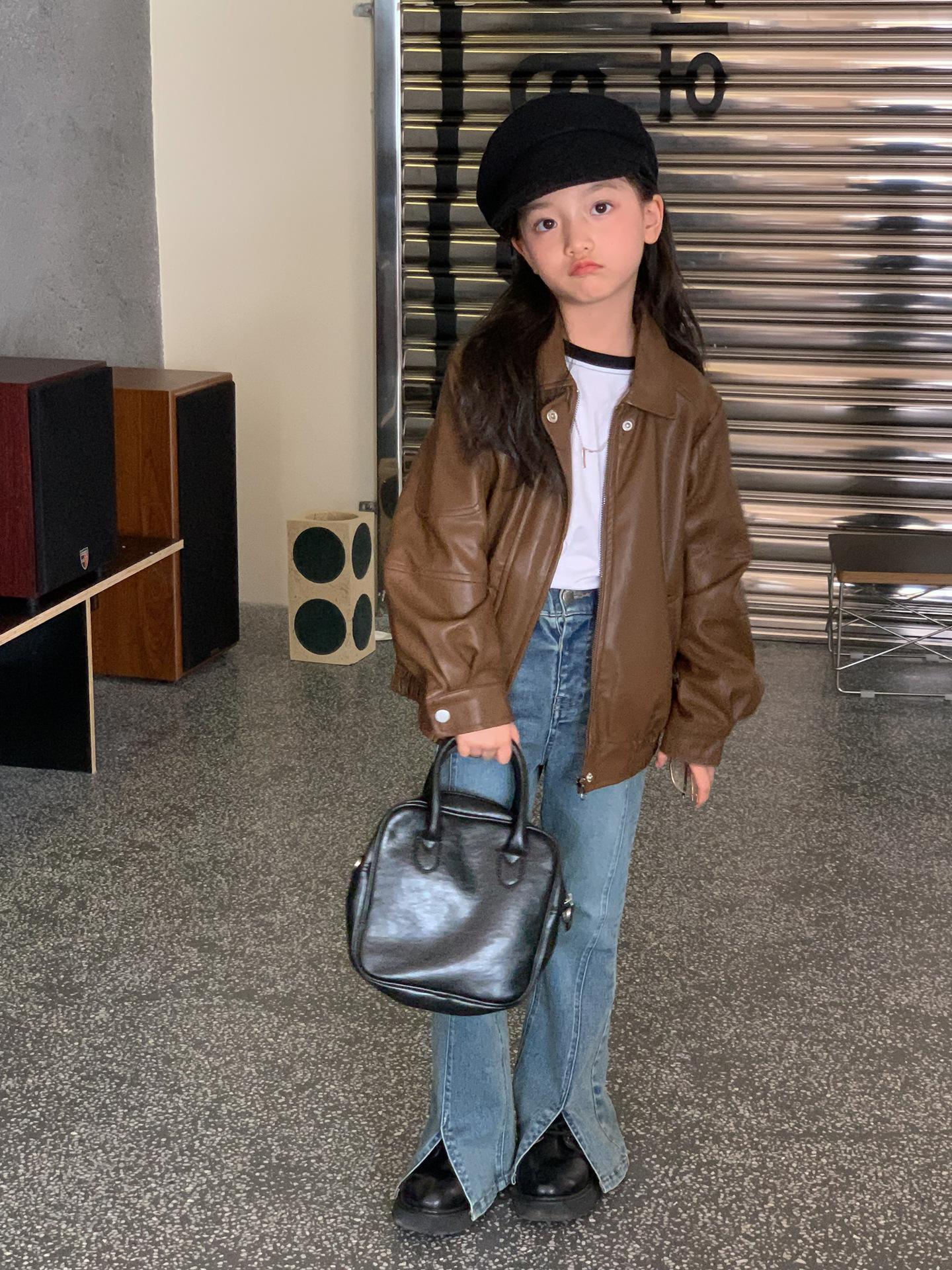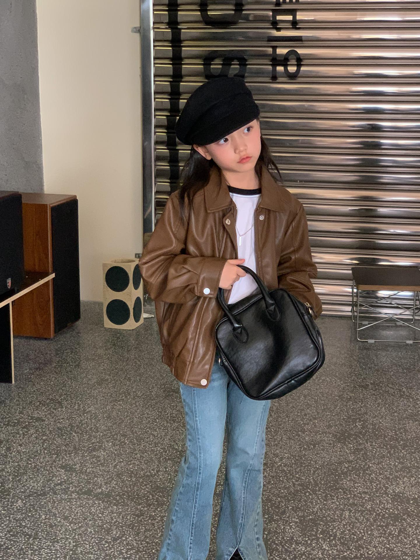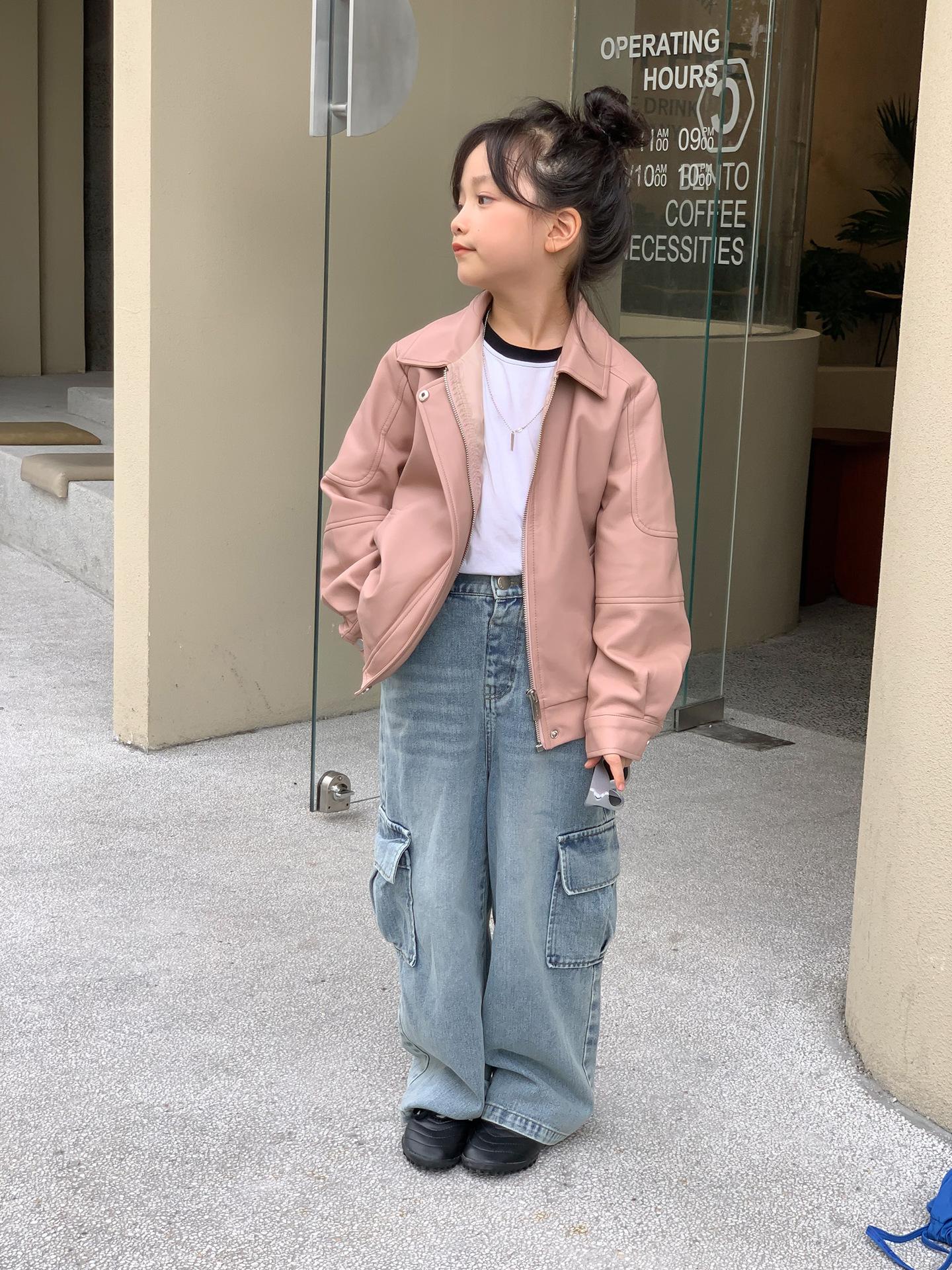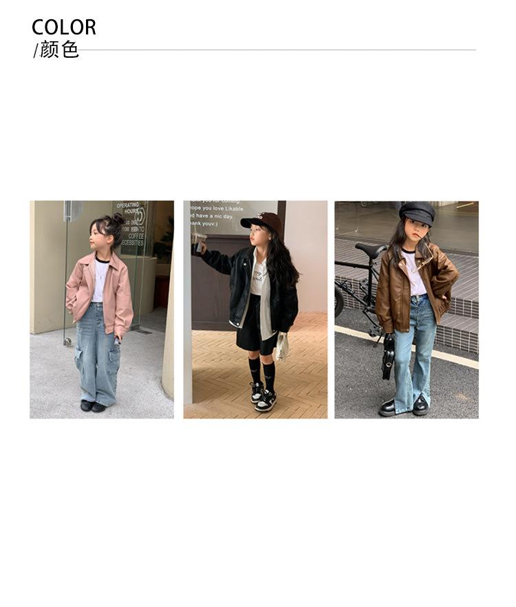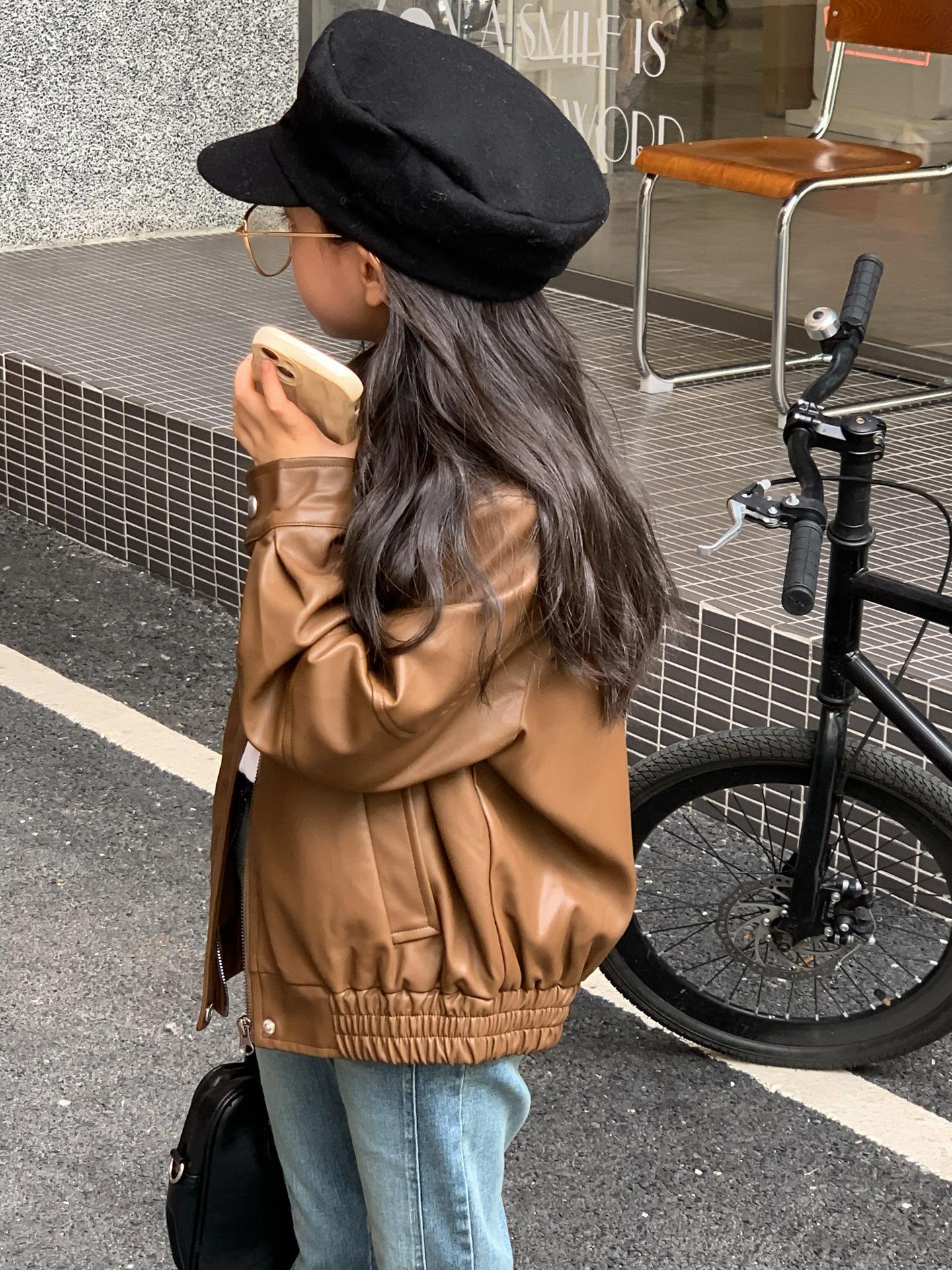 Chaquetas de Cuero para Niñas Otoño 2025 Nuevo Estilo Coreano de Moda Chaqueta de Cuero Pu de Motociclista para Niños