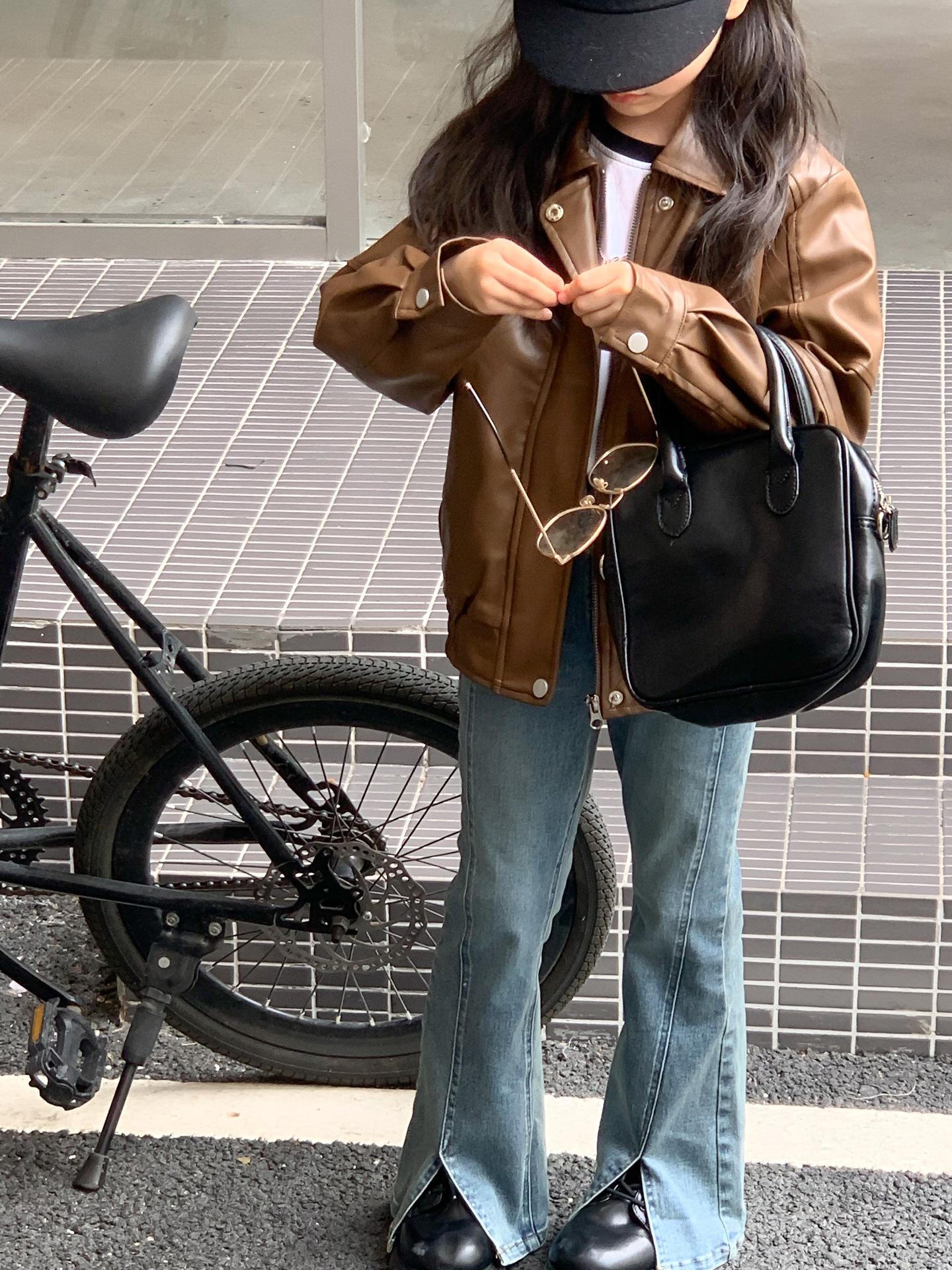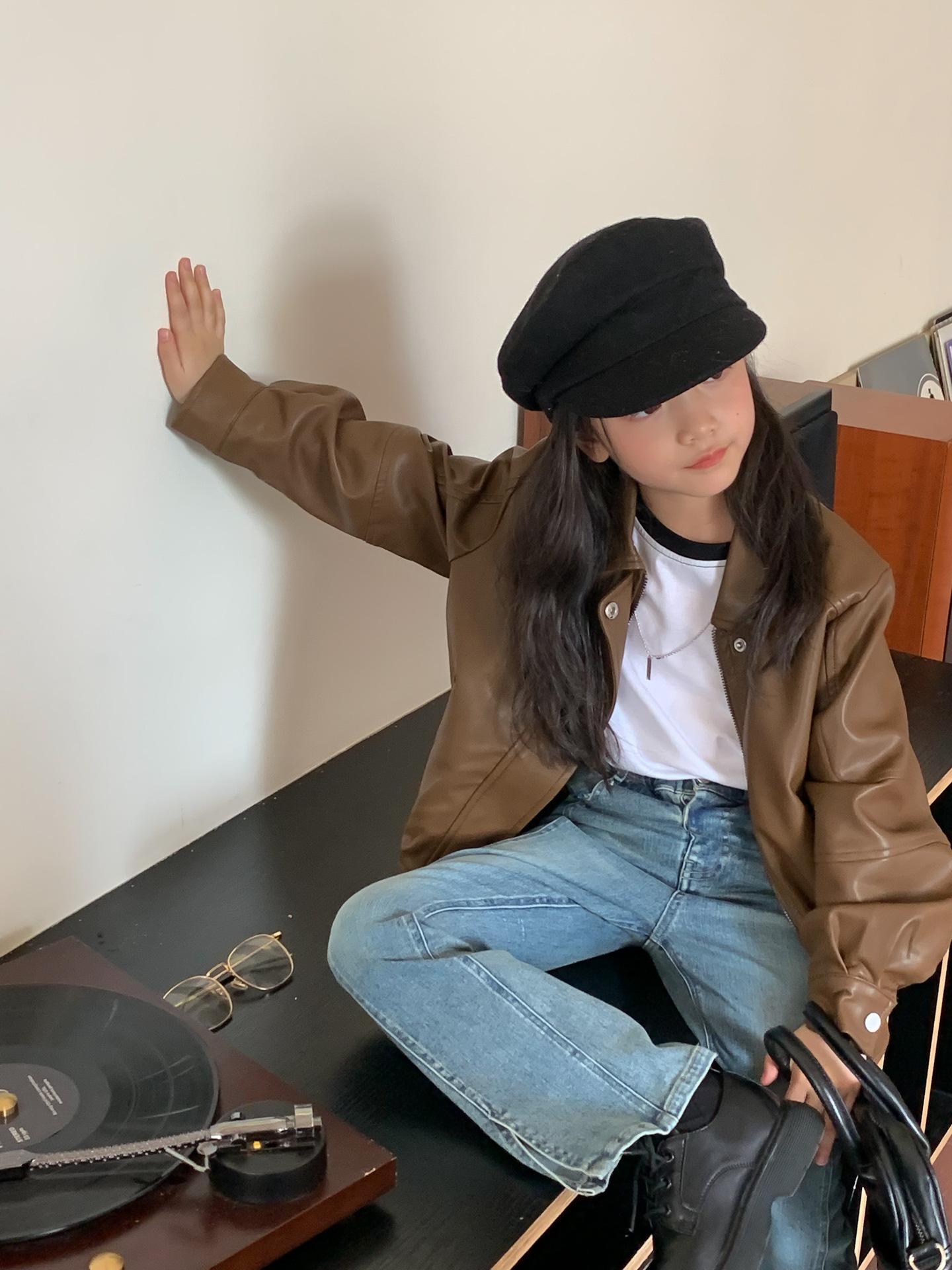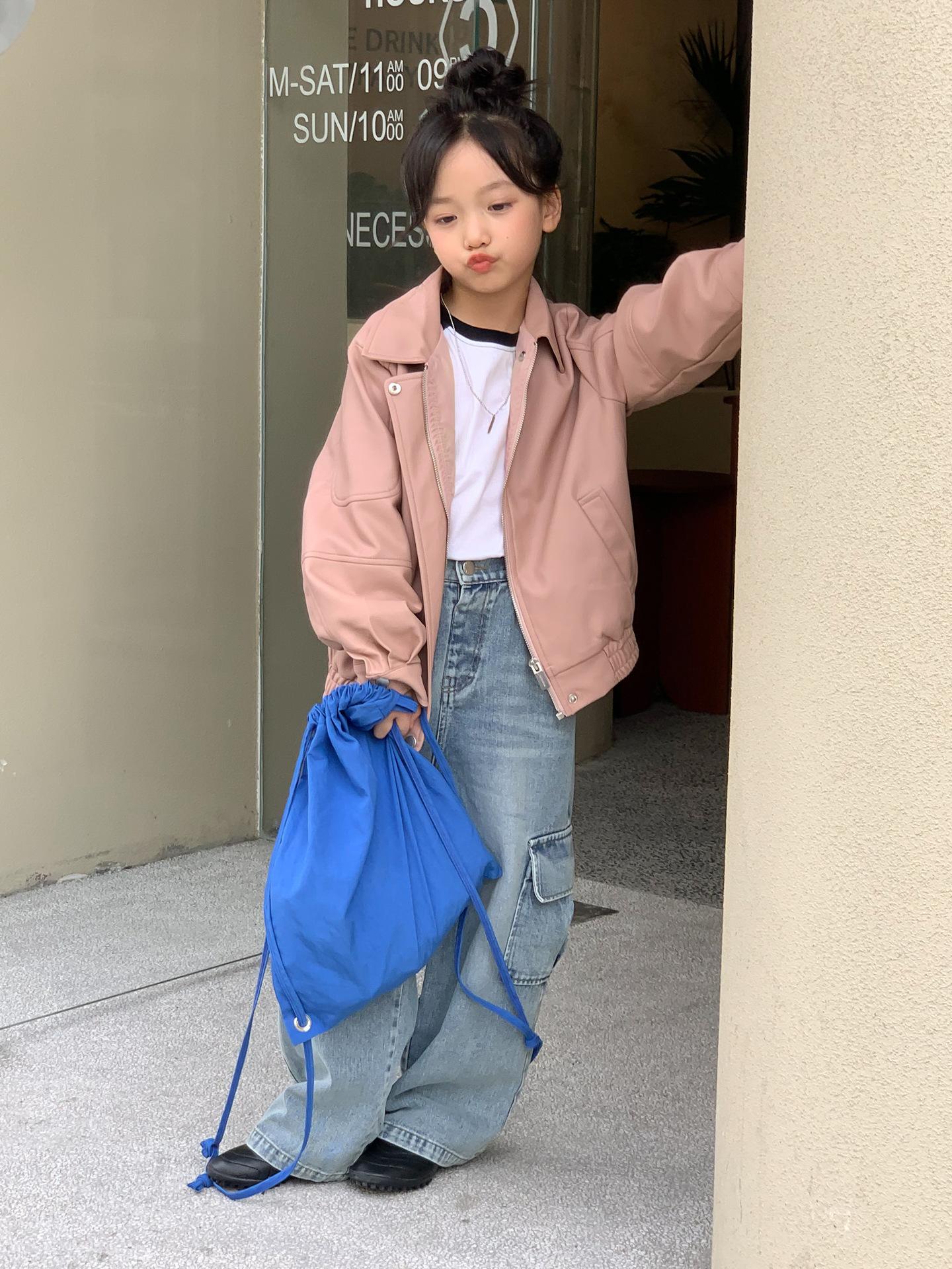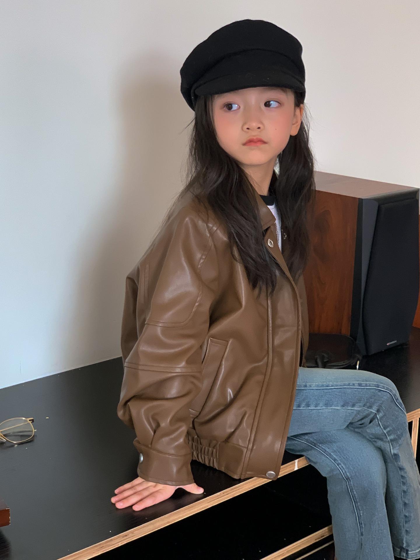 Chaquetas de Cuero para Niñas Otoño 2025 Nuevo Estilo Coreano de Moda Chaqueta de Cuero Pu de Motociclista para Niños