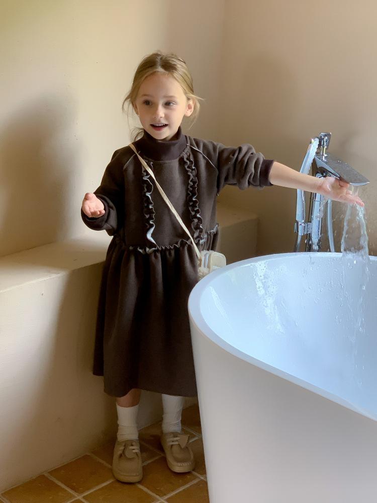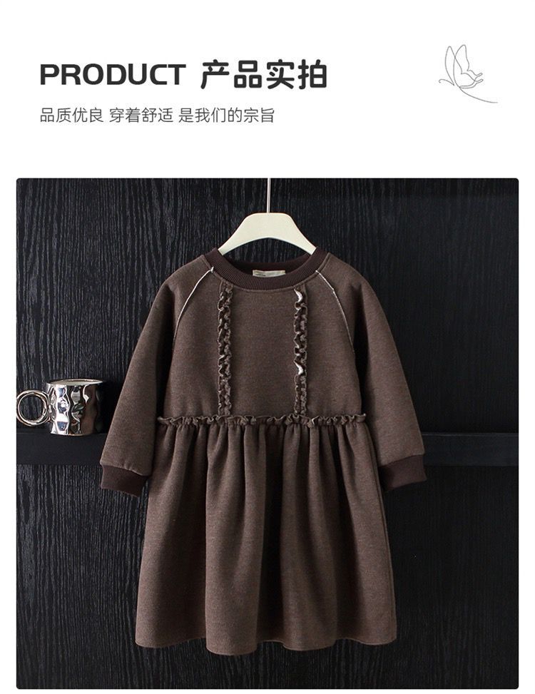 Vestido grueso de manga larga con volantes para niñas de estilo coreano, vestido de moda de otoño e invierno para bebés, vestido de princesa para niñas