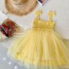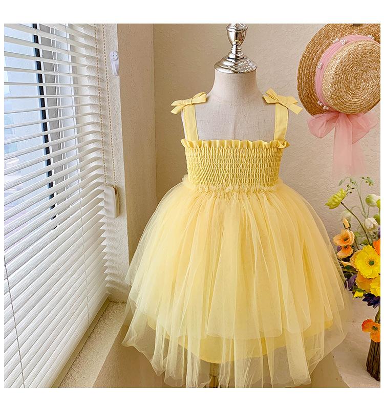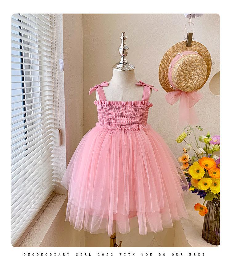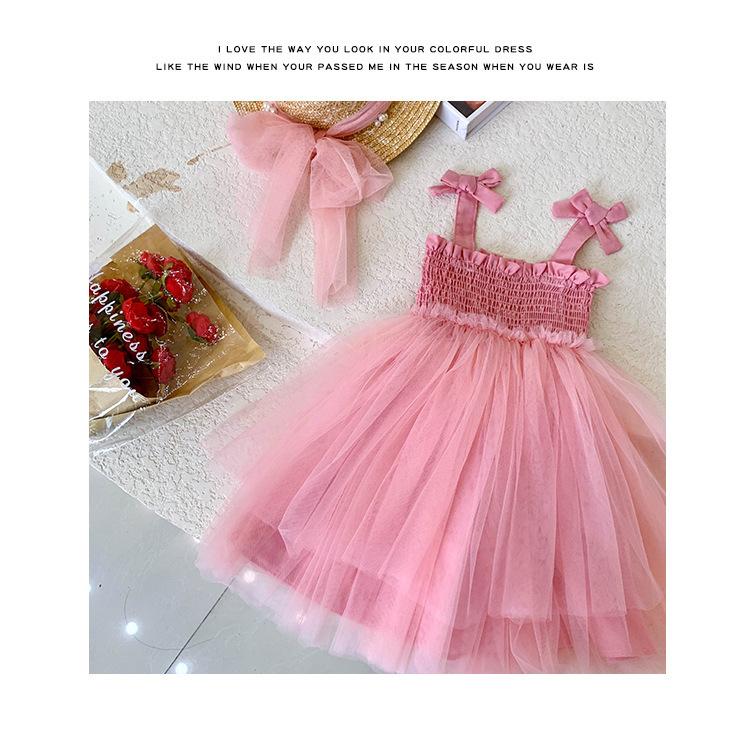 Vestido de princesa para niña, novedad de verano 2024, vestido de malla para niña, vestido de pastel para bebé, vestido lencero con lazo