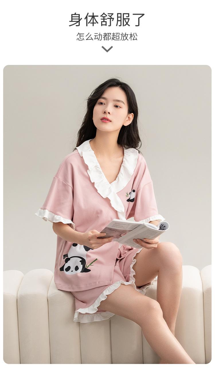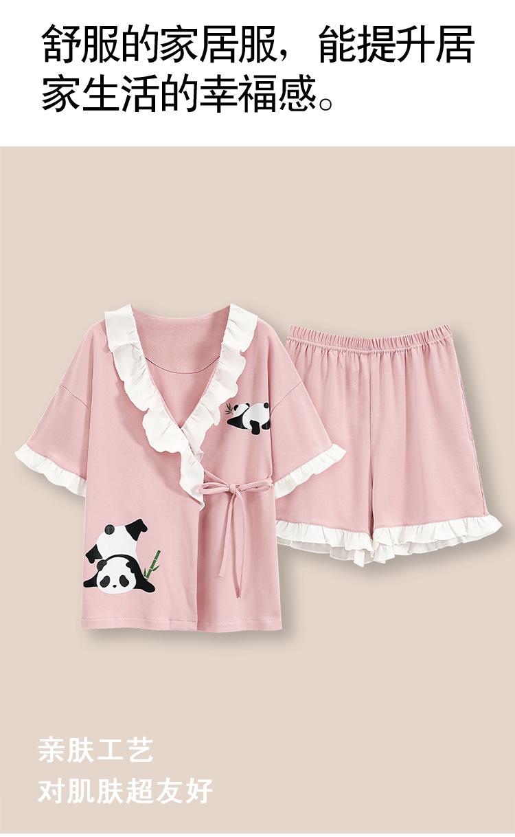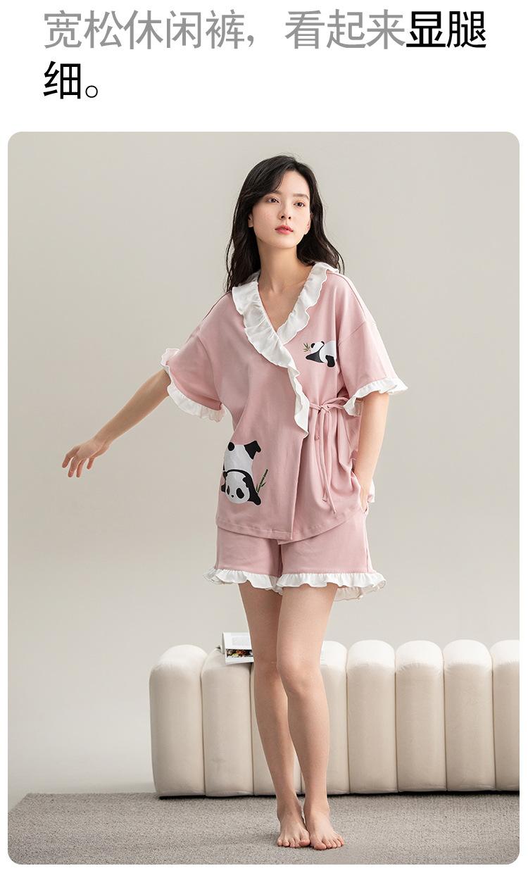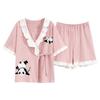 Verano Nuevo 7A Fábrica Algodón Pijama Mujer Manga Corta Shorts Cordones Cuello en V Delgado Traje de Mujer Verano Ropa de Casa