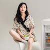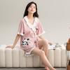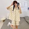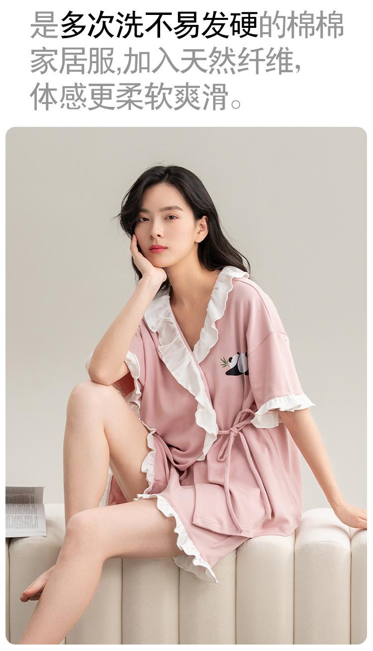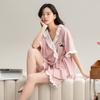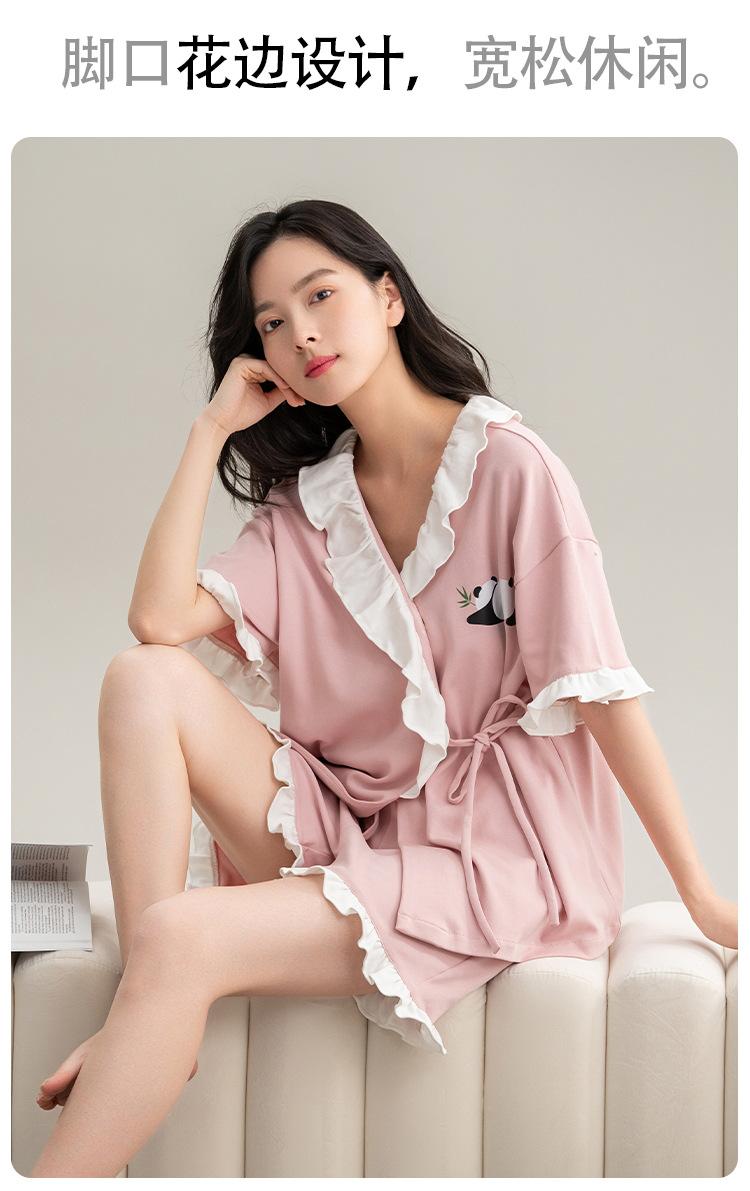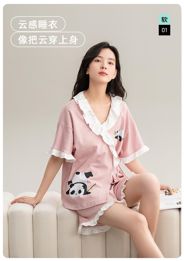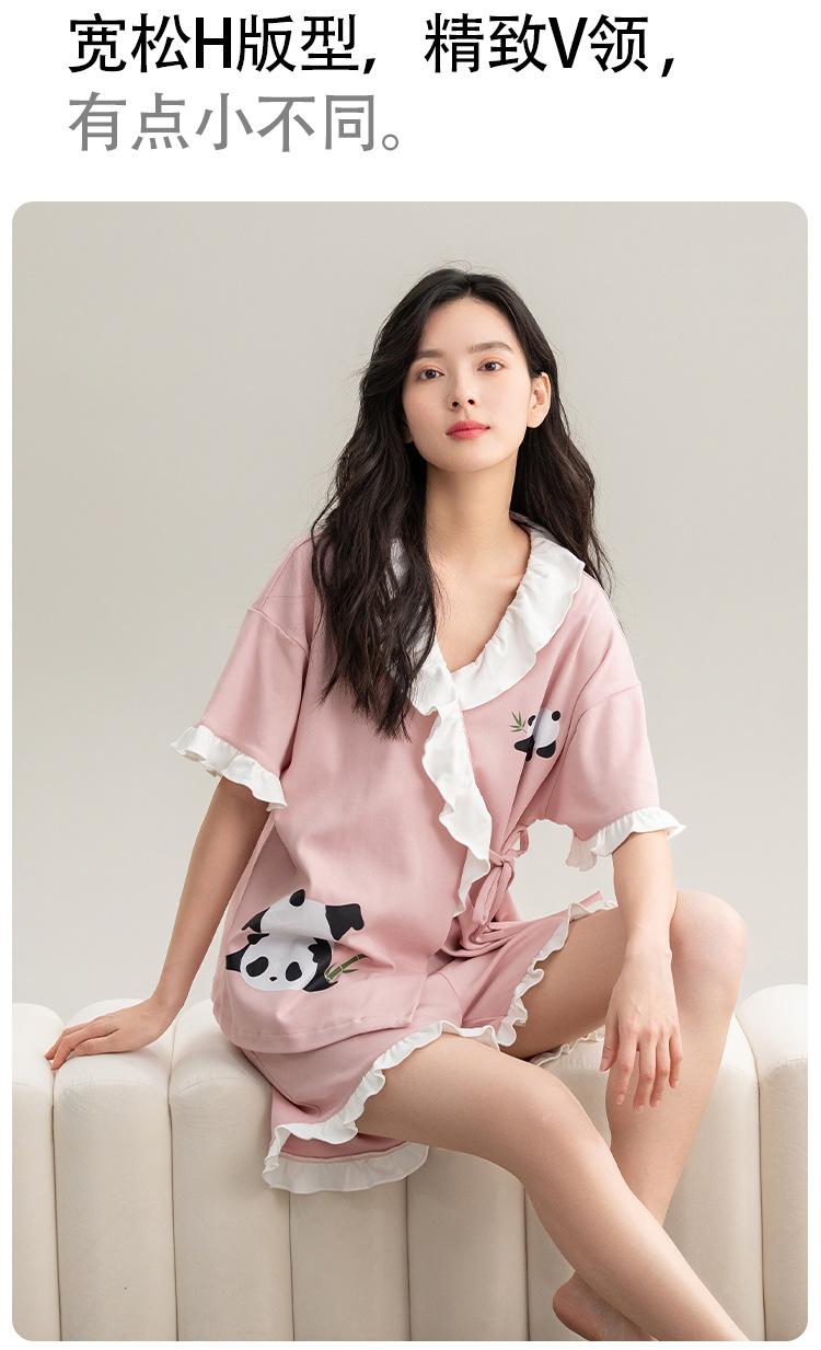 Verano Nuevo 7A Fábrica Algodón Pijama Mujer Manga Corta Shorts Cordones Cuello en V Delgado Traje de Mujer Verano Ropa de Casa