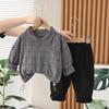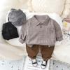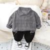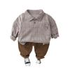 Traje de otoño para niño 2023, ropa de moda para bebé, estilo occidental, suéter de manga larga a cuadros, conjunto de dos piezas
