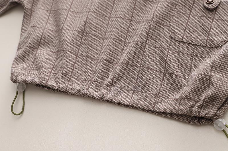 Brown Check Two-piece Long-sleeved Doorsuit