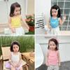 Camiseta de verano para niñas, camiseta de rayas con mangas voladoras y encaje de estilo coreano, personalizada, de marca popular en línea para niños.