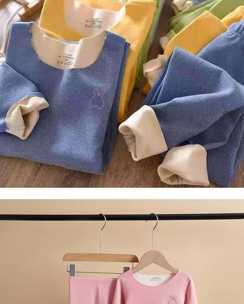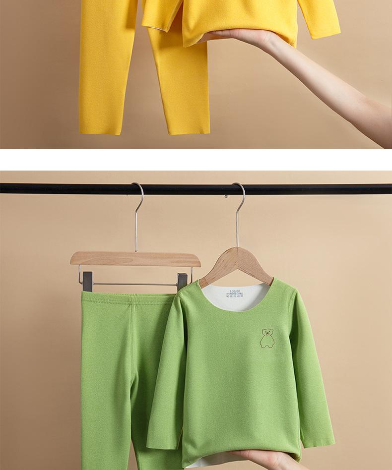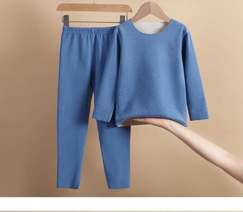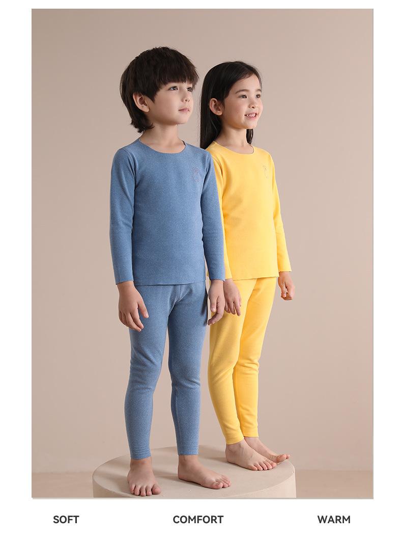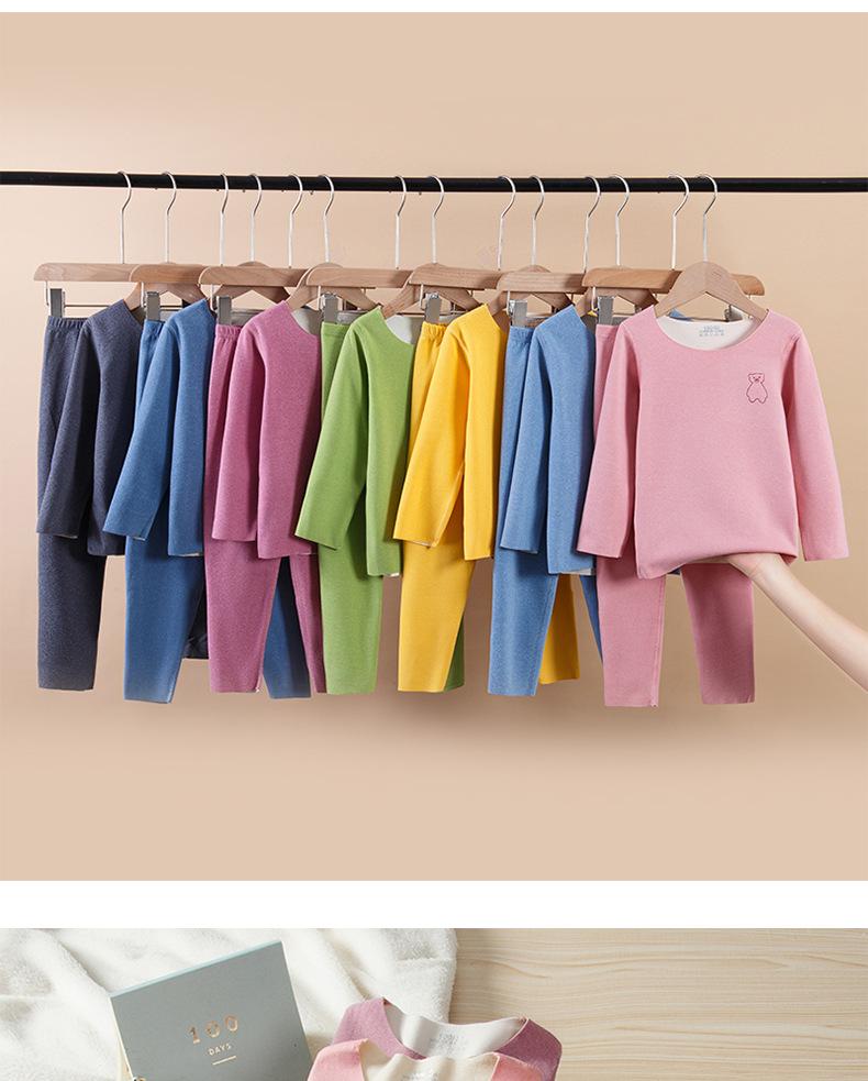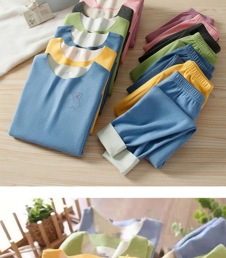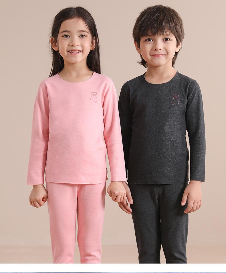 Traje de ropa interior térmica para niños de otoño para niños y niñas, calzoncillos largos para bebés de otoño e invierno, pijamas sin costuras cepillados a doble cara