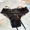 Ropa interior de encaje francés transparente blanco con cordones para mujer, sexy, fina, pura, de cintura baja, tipo tanga.
