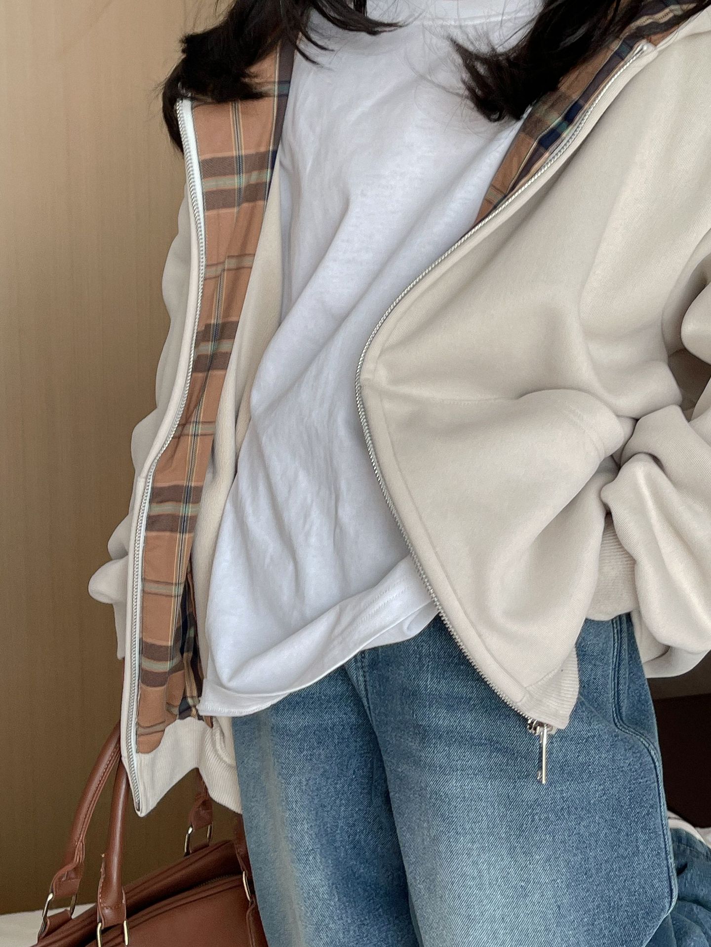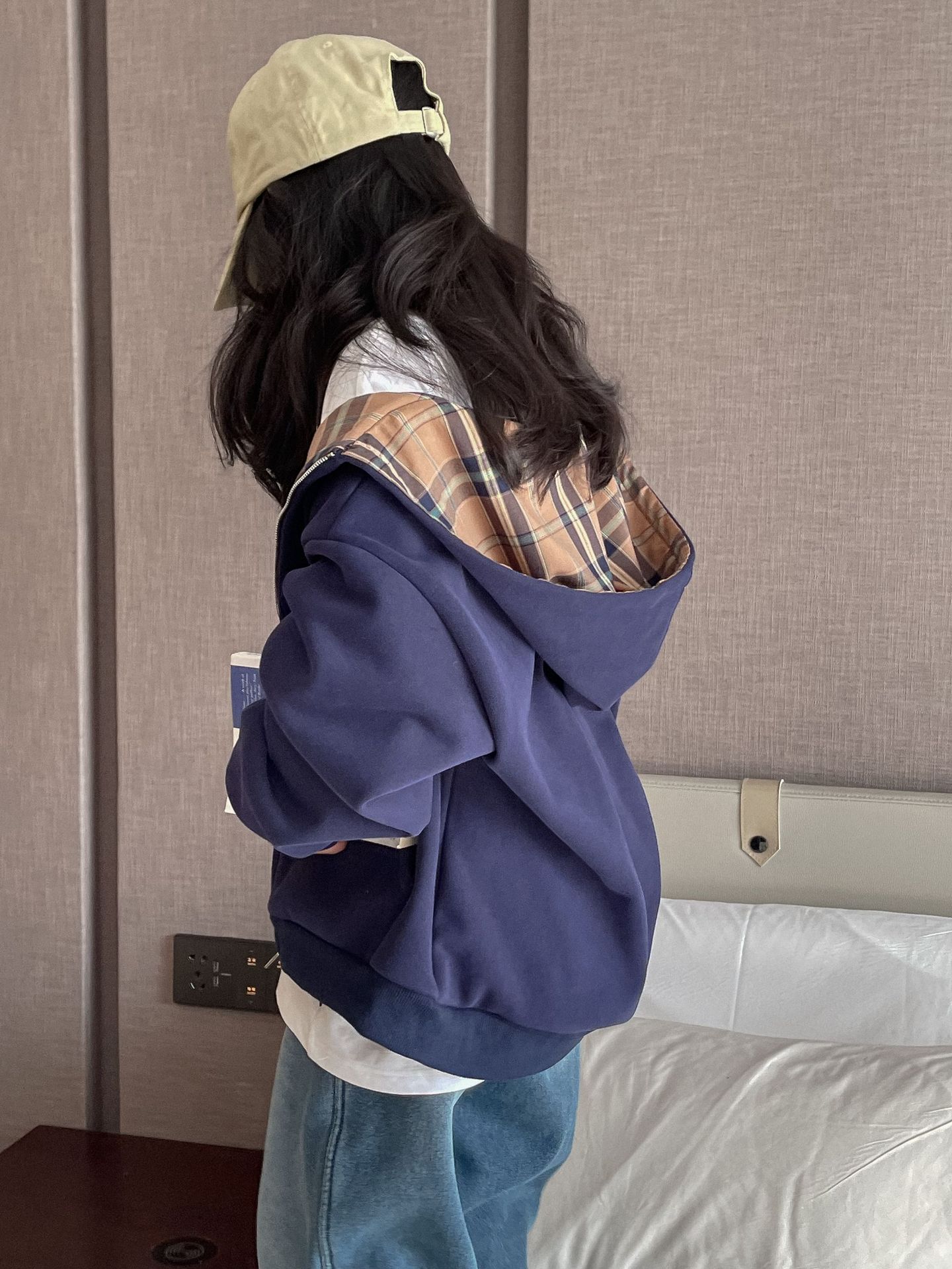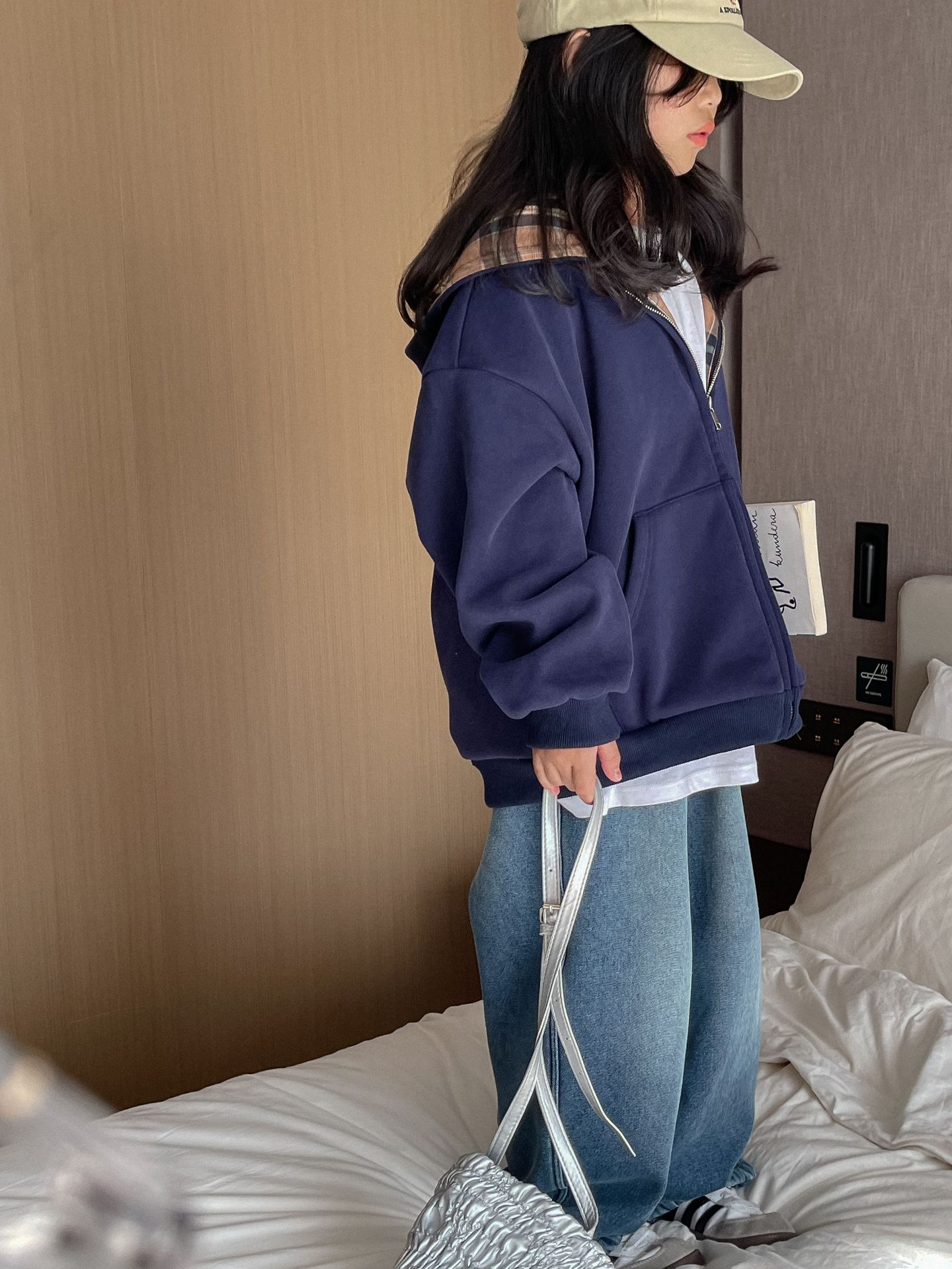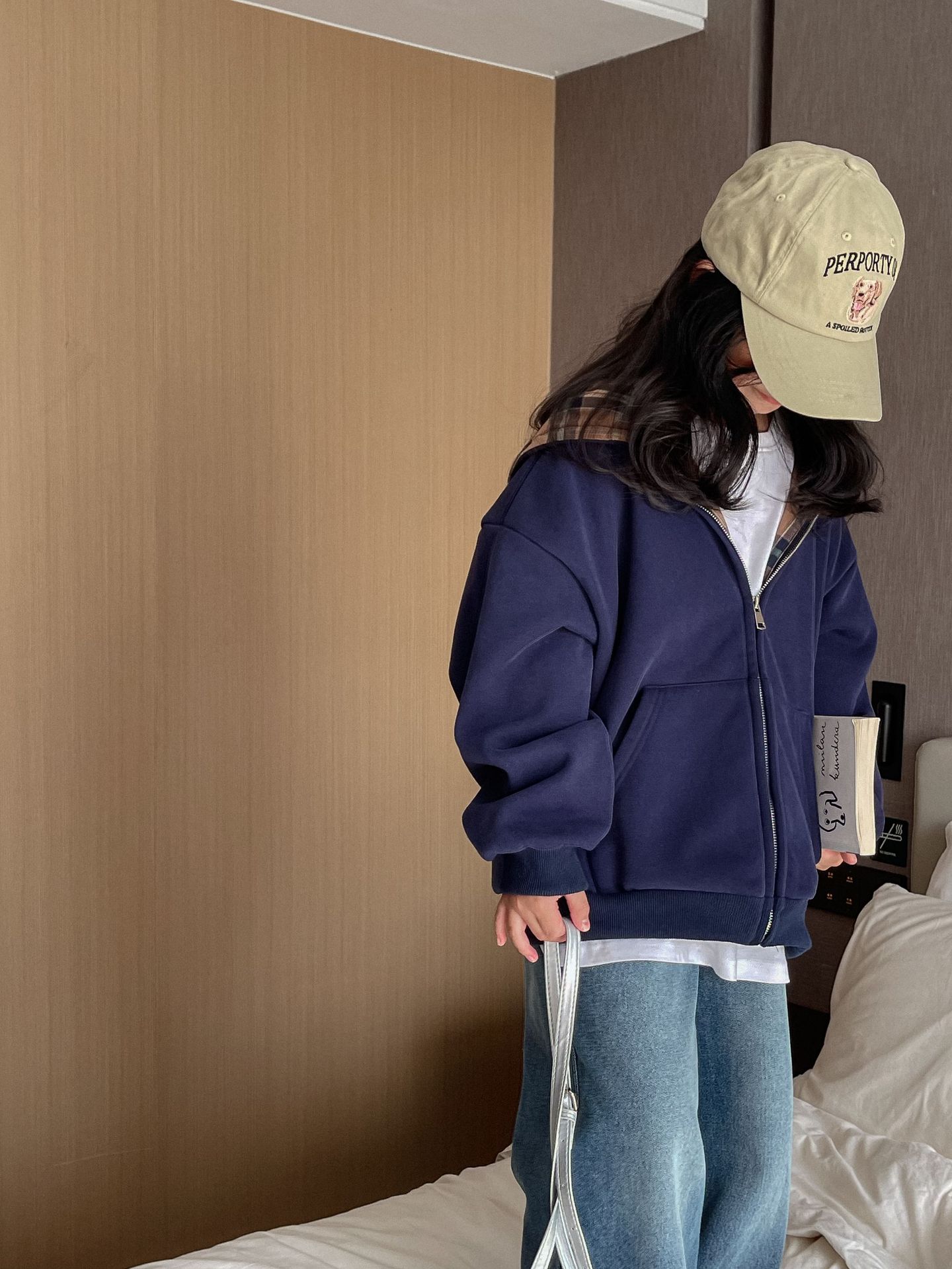 Chaqueta Sudadera con Capucha de Terciopelo para Niños Otoño e Invierno 2025 Niñas Estilo Retro Holgazán Cuadros Cárdigan Casual Top
