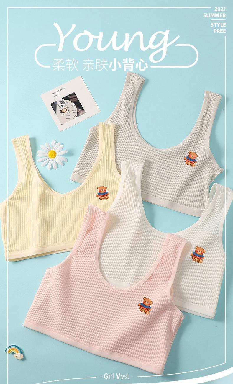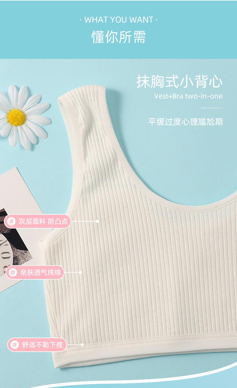 Ropa interior de desarrollo para niñas Estudiante Niña Chaleco de algodón Verde Niña de secundaria 8-9-12 años Top de tubo Verano