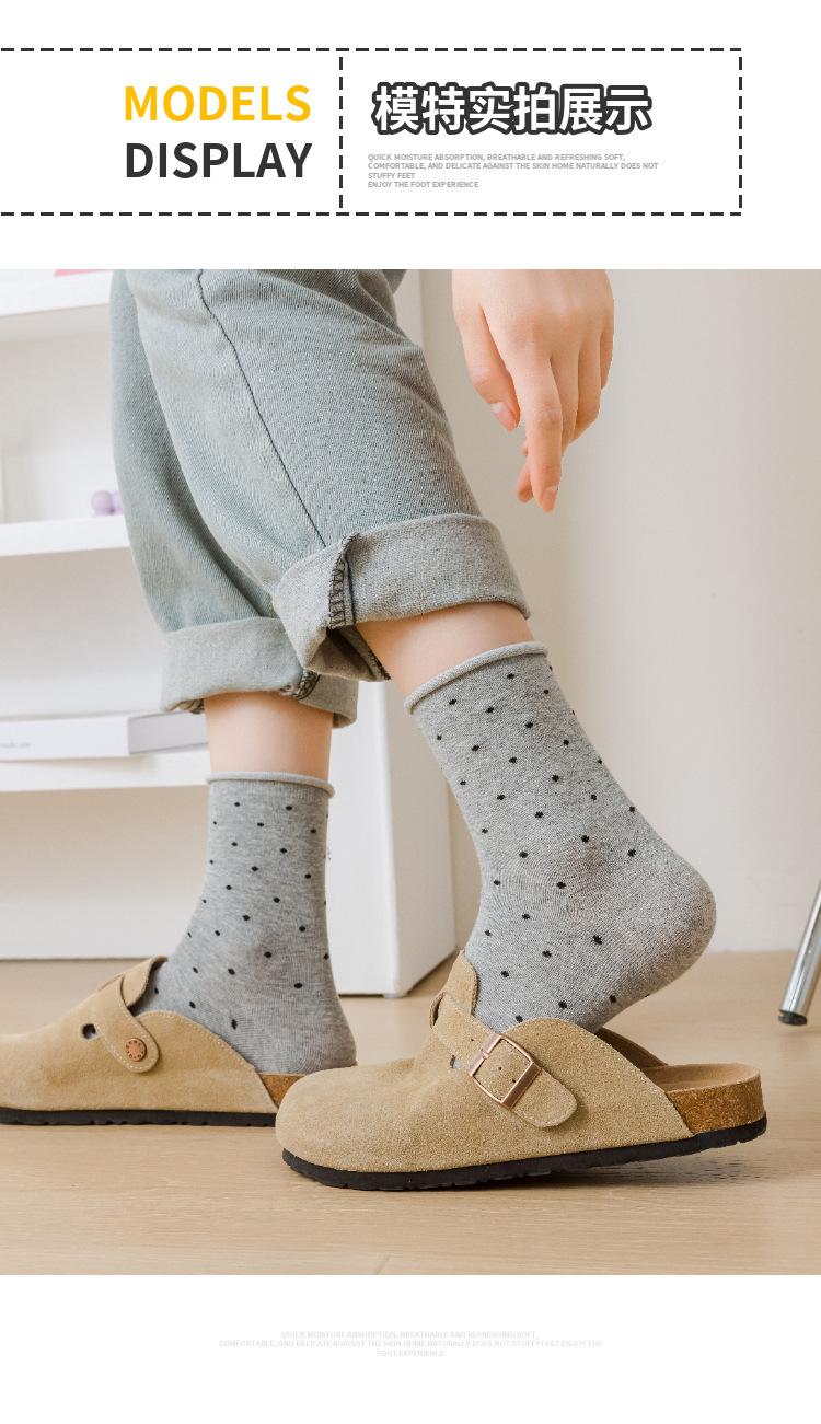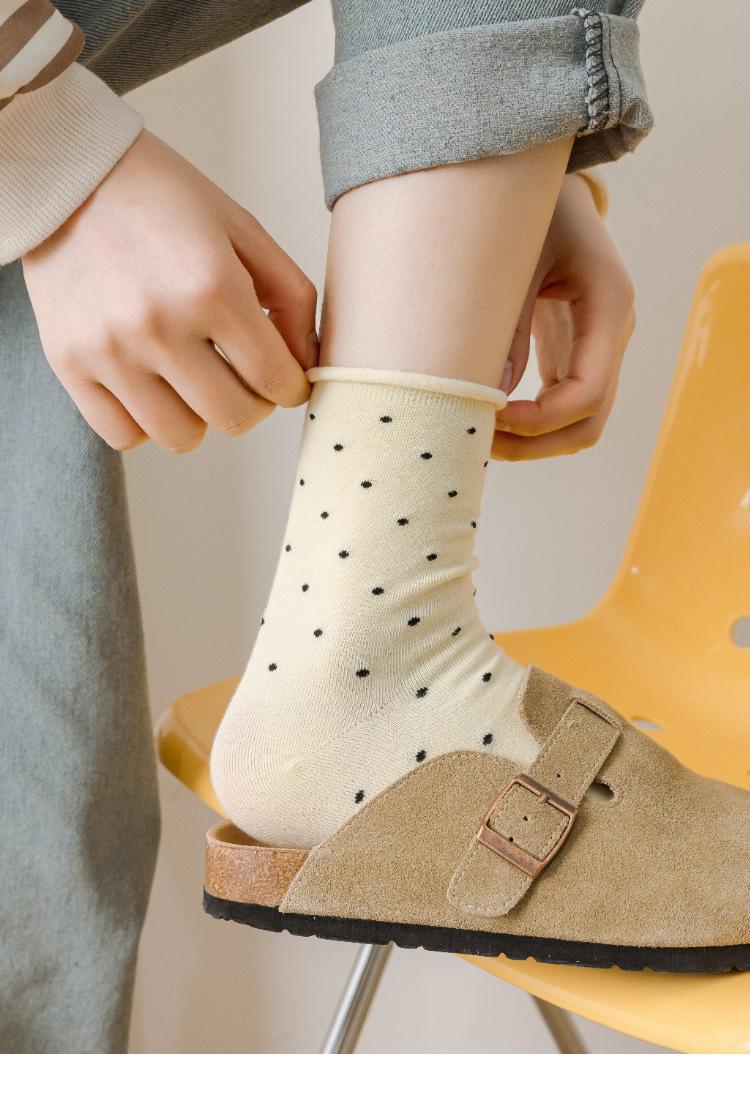 Calcetines de mujer estilo coreano rizados lunares calcetines media pantorrilla calcetines de algodón verano delgados calcetines de rizo para estudiantes calcetines de mujer venta al por mayor de fábrica