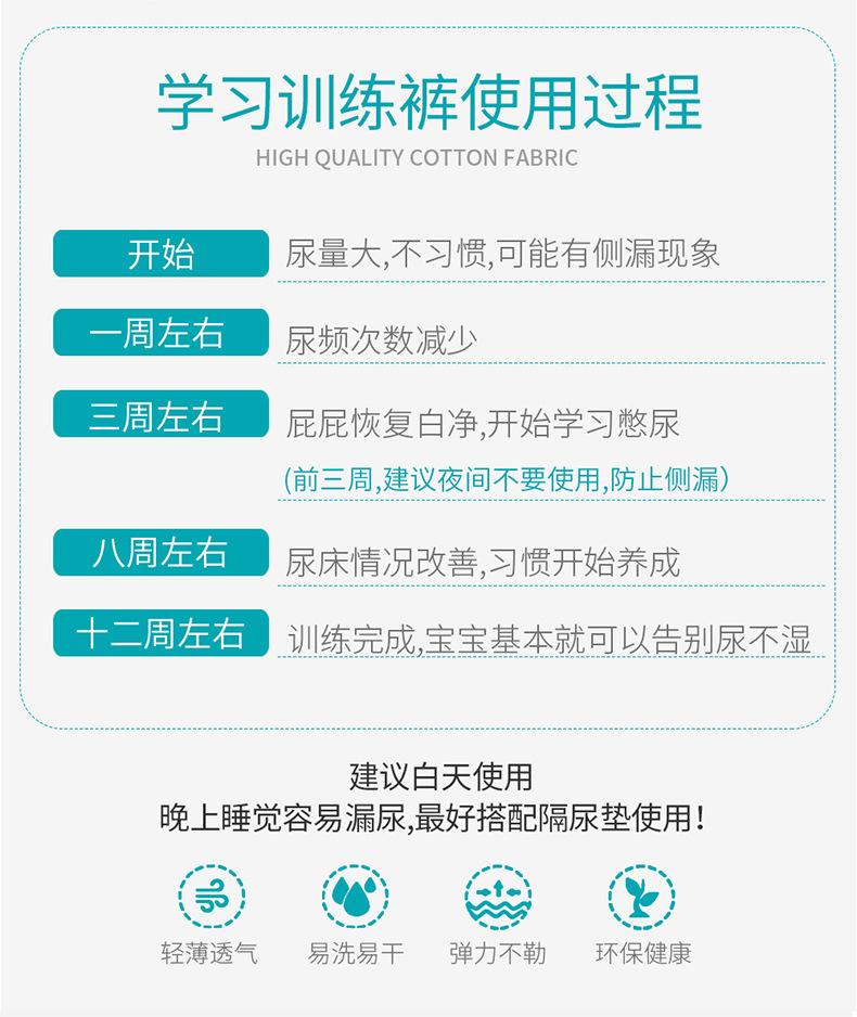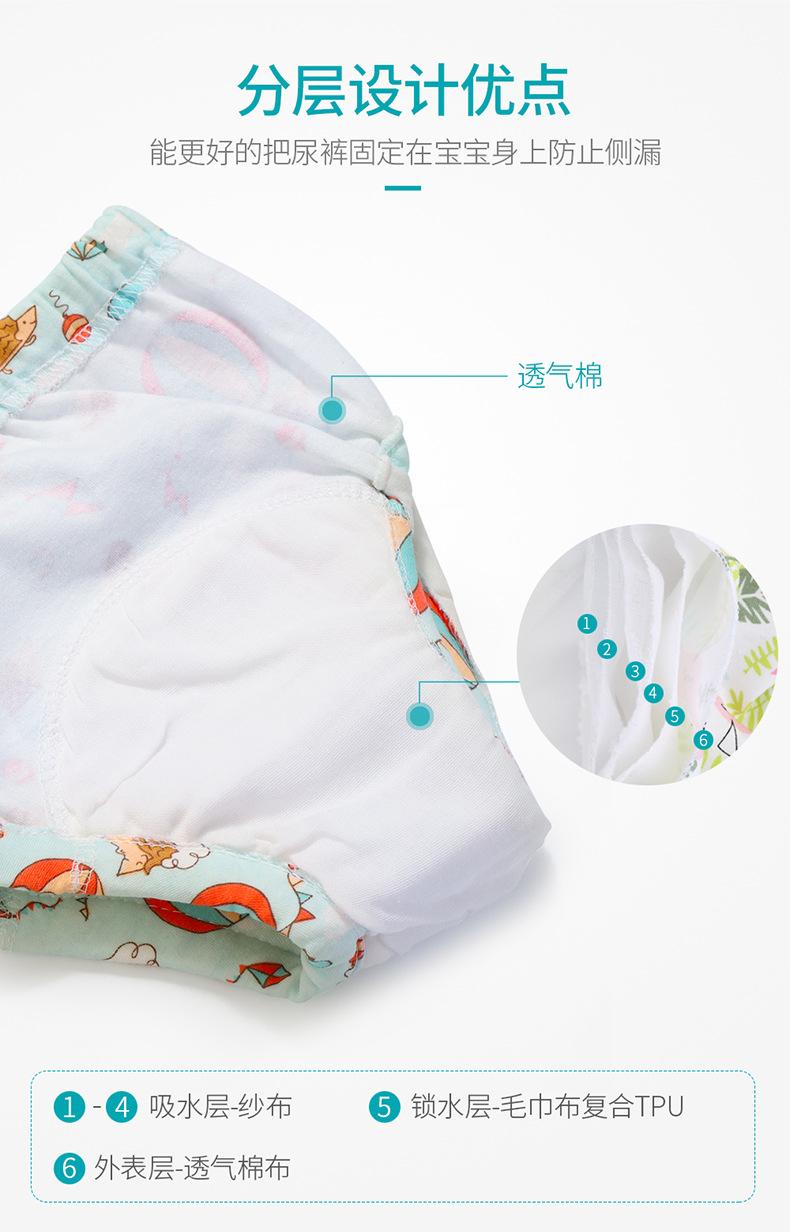 Los calzoncillos de aprendizaje también se llaman calzoncillos de crecimiento y calzoncillos de aprendizaje. Se pueden poner y quitar fácilmente, lo cual es muy práctico. Cumplen las funciones de pañales y pantalones cortos. Son fáciles de usar y cómodos para moverse. Ayudan a las madres a reducir la fatiga y permiten que los bebés aprendan a caminar con facilidad. Son más ajustados que los pañales y ofrecen buena transpirabilidad, lo cual es especialmente adecuado para bebés que están aprendiendo a caminar. Los calzoncillos de aprendizaje están diseñados principalmente para adaptarse a los bebés que gatean, se ponen de pie y caminan a medida que su movilidad aumenta gradualmente. Por lo tanto, una vez que los bebés aprenden a gatear, pueden usar calzoncillos de aprendizaje gradualmente.