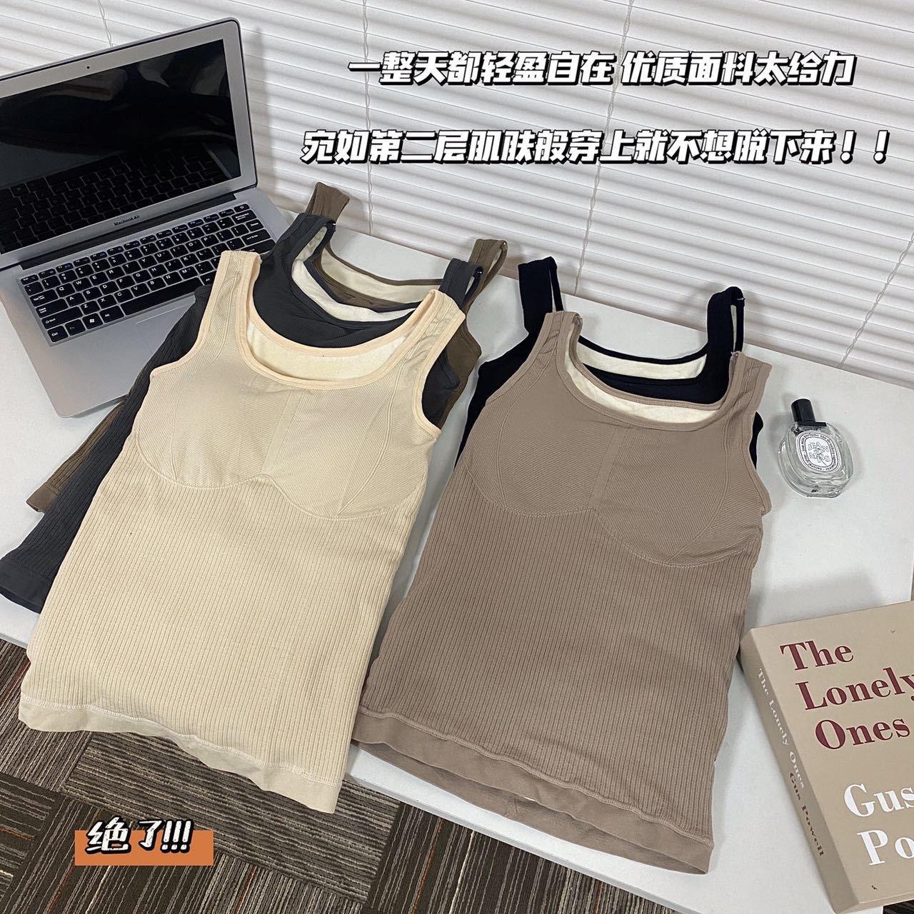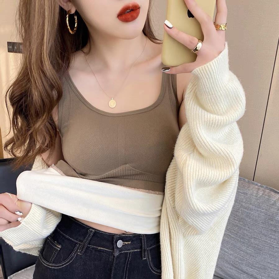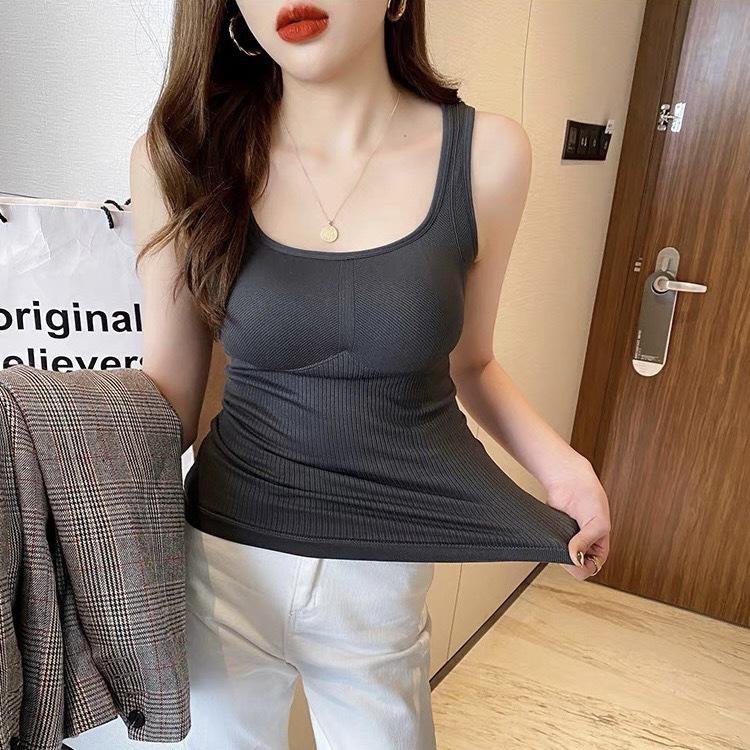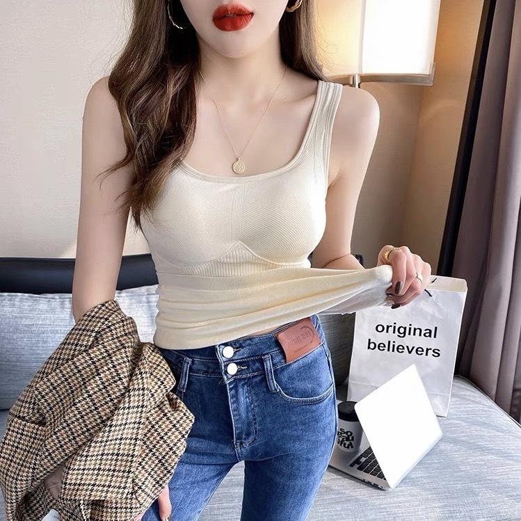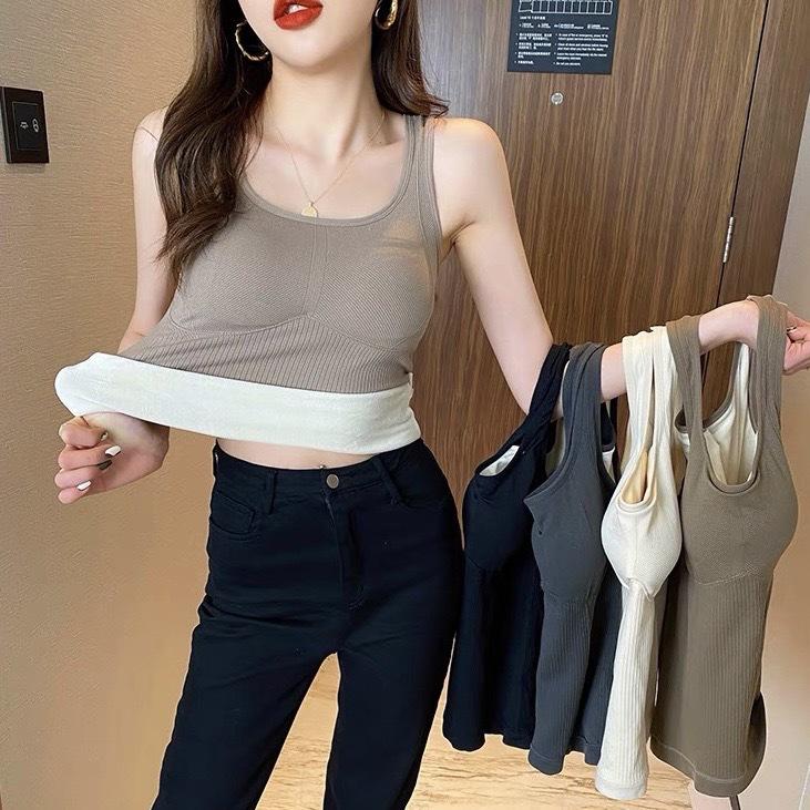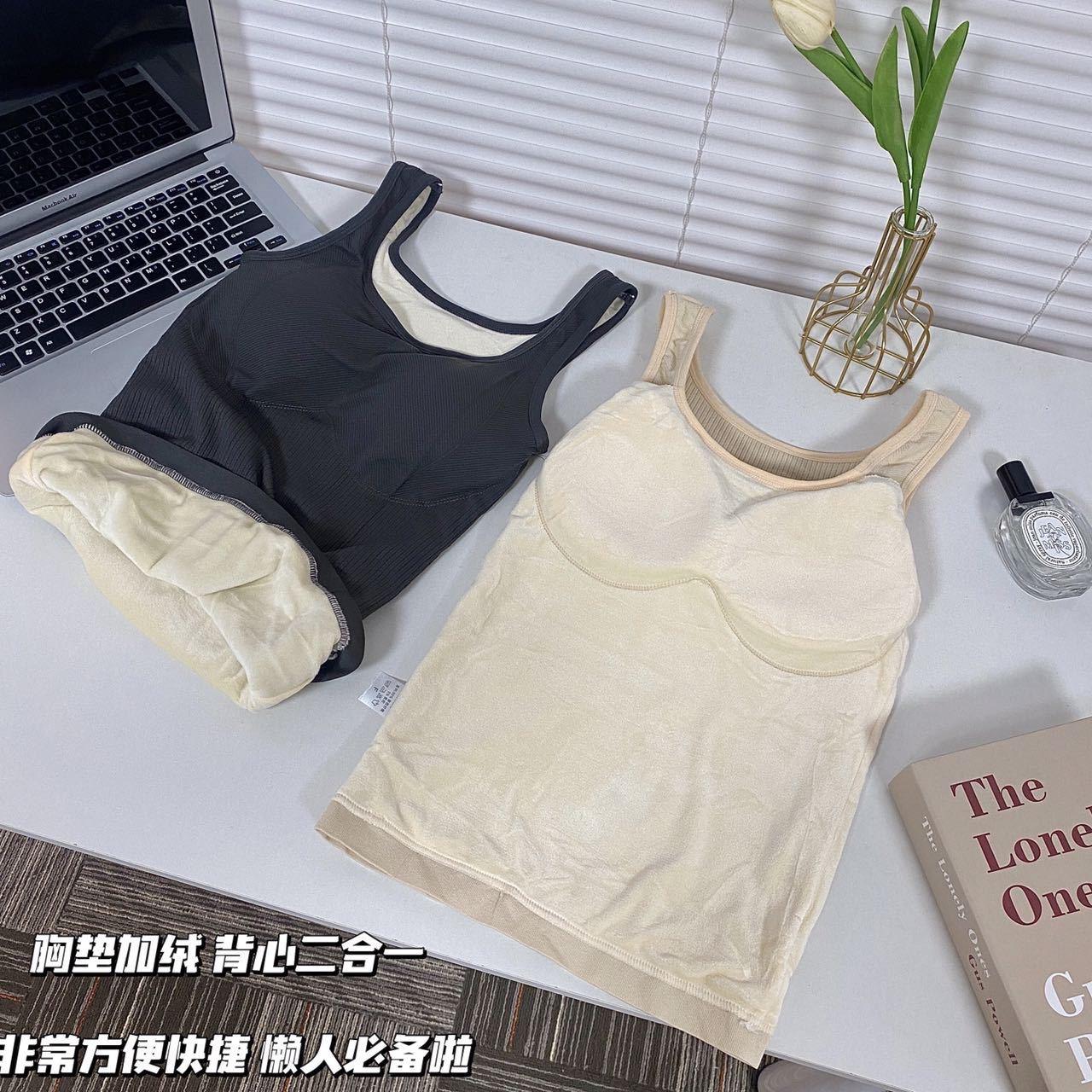 Chaleco térmico grueso con forro polar para mujer, nuevo estilo de otoño e invierno, con almohadilla para el pecho, ropa interior sin mangas, ropa exterior ajustada.