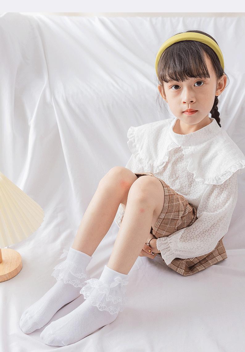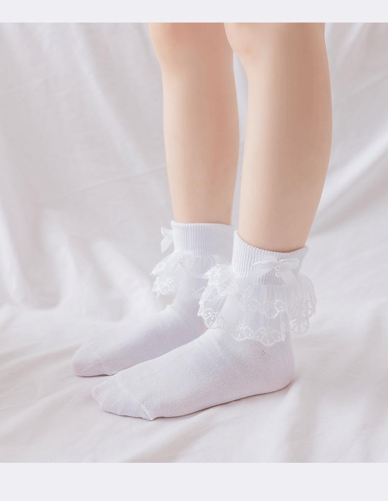 Calcetines de encaje para niños, primavera y otoño, verano, algodón, transpirables, para niñas pequeñas, de encaje blanco, para baile de princesa.