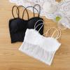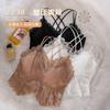 Sujetador de encaje estilo francés sexy con copa triangular sin aro de acero y tirantes finos para los hombros, hermoso sujetador de tubo para la espalda y el pecho, ropa interior básica para mujer