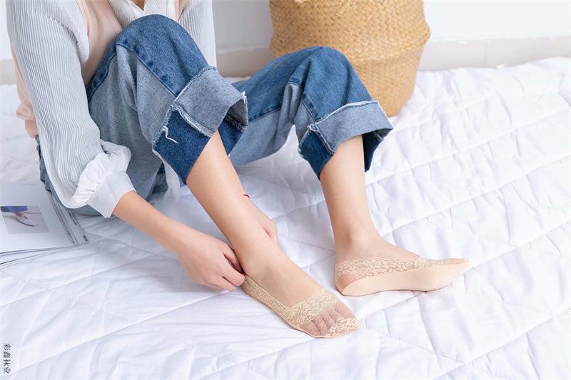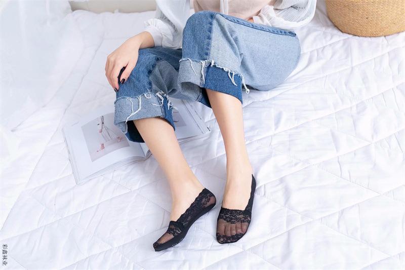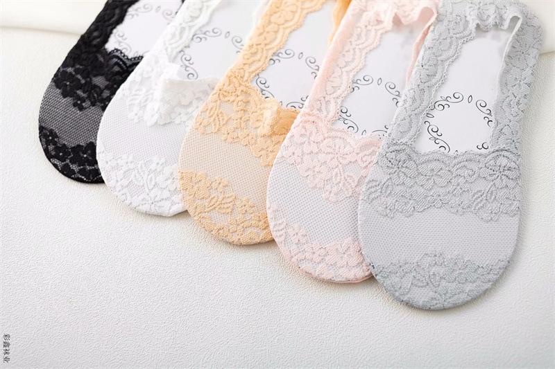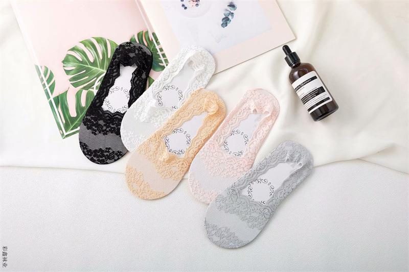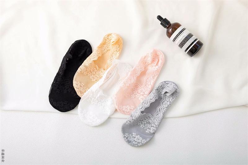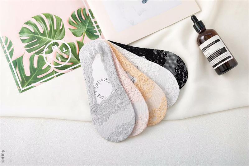 Calcetines de mujer de primavera y verano con boca profunda y borde ligero, invisibles, de malla de encaje, de corte bajo, de silicona, antideslizantes, con talón y tobillo, transpirables.