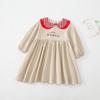 Vestido coreano de cuello doble bordado para niñas, ropa infantil, primavera 2022, vestido infantil, vestido de princesa infantil