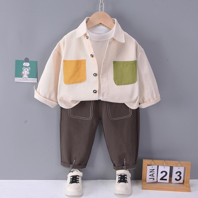 Abrigo de primavera para niños, primavera y otoño 2023, nuevo estilo occidental para niños, top de bolsillo para bebé, moda informal