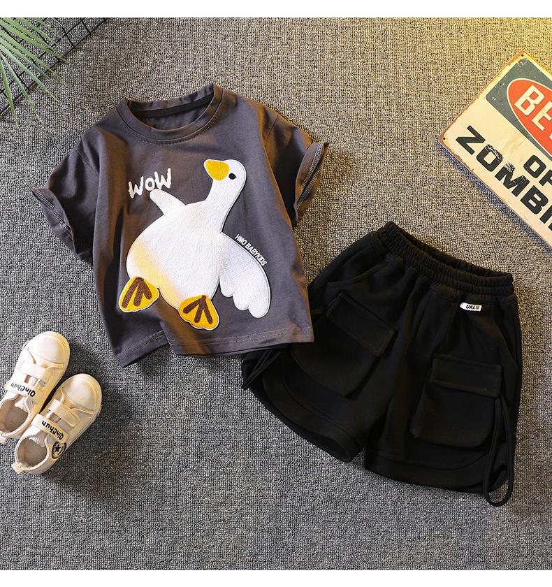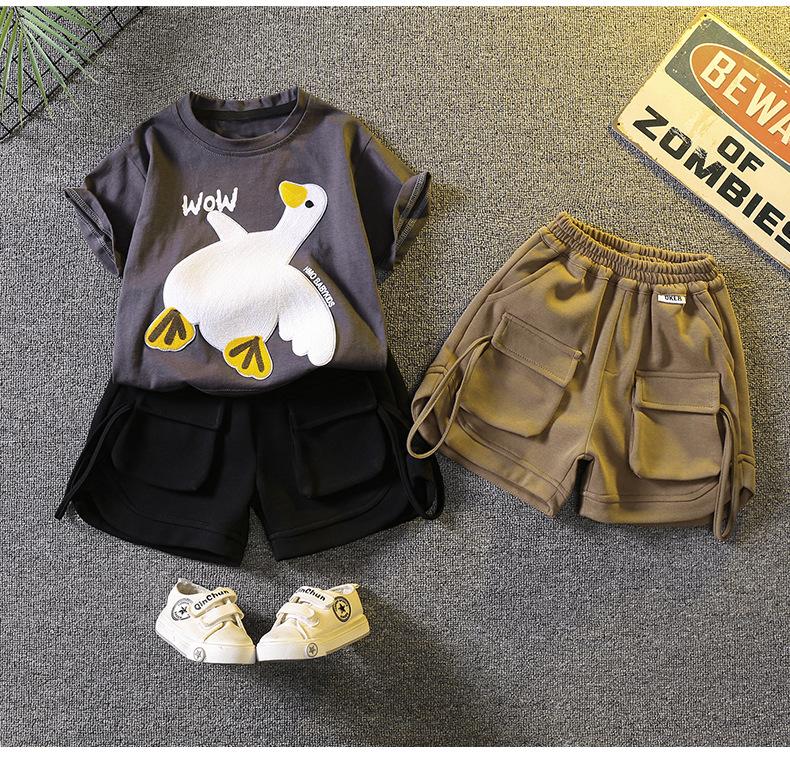 Ropa de Verano para Niños Traje de Celebridad de Internet 2025 Nueva Moda Ropa de Verano para Bebé Guapos Niñitos Conjunto de Dos Piezas de Manga Corta