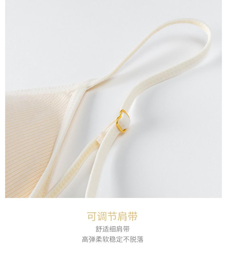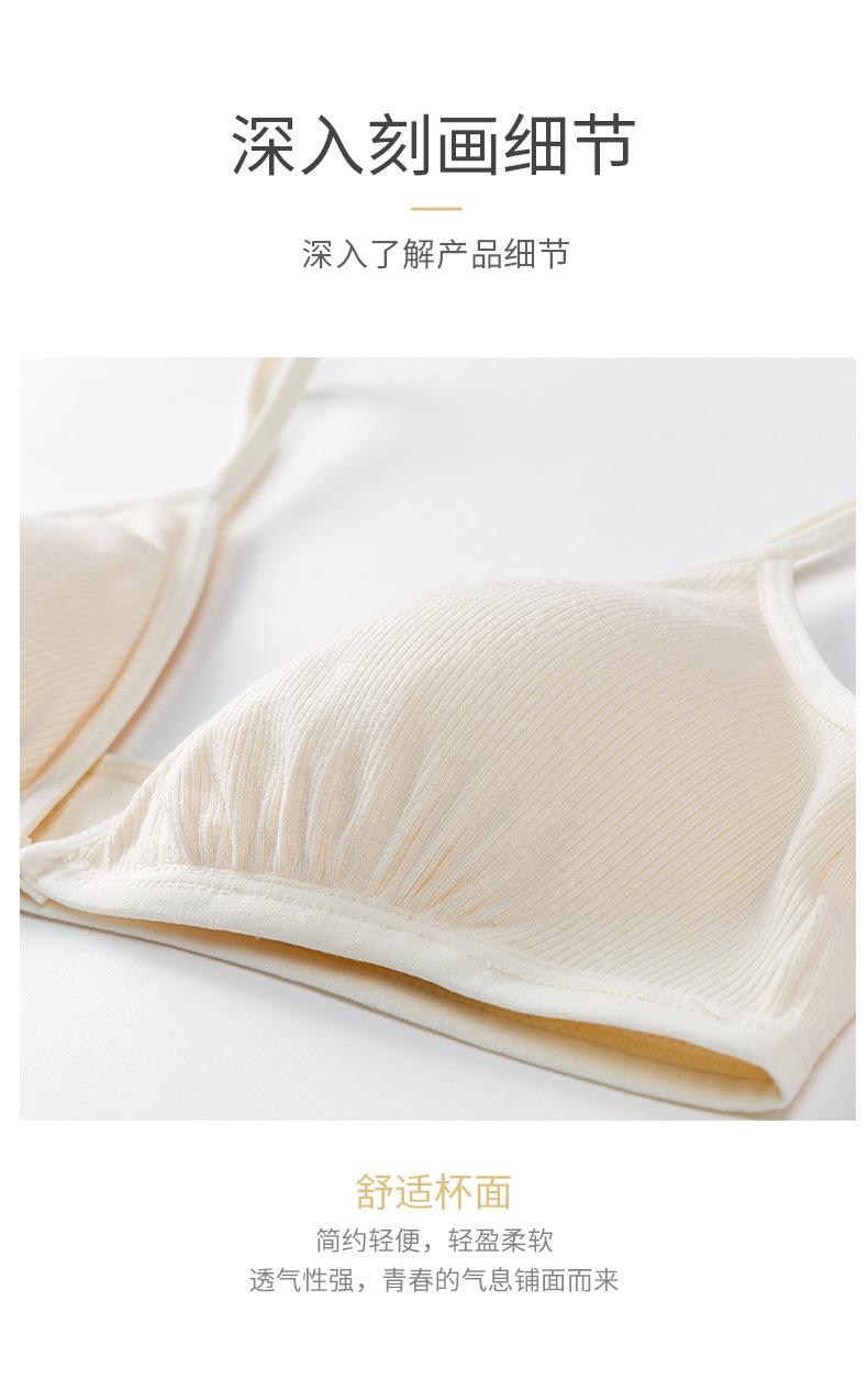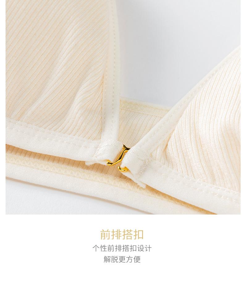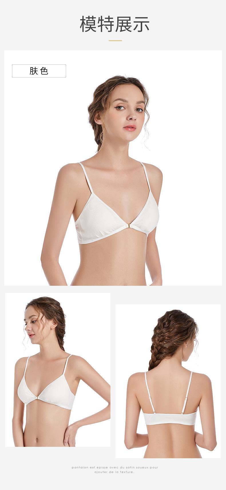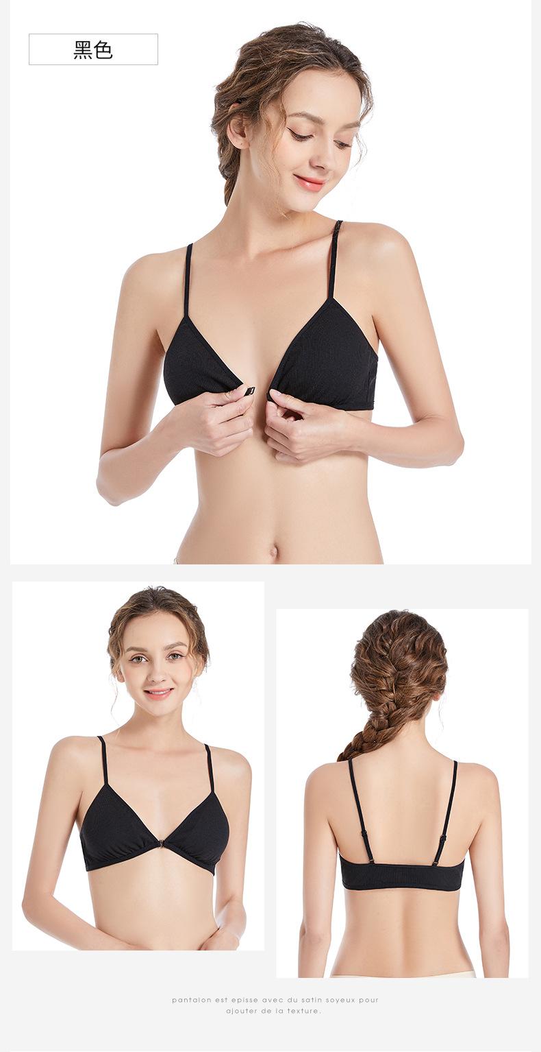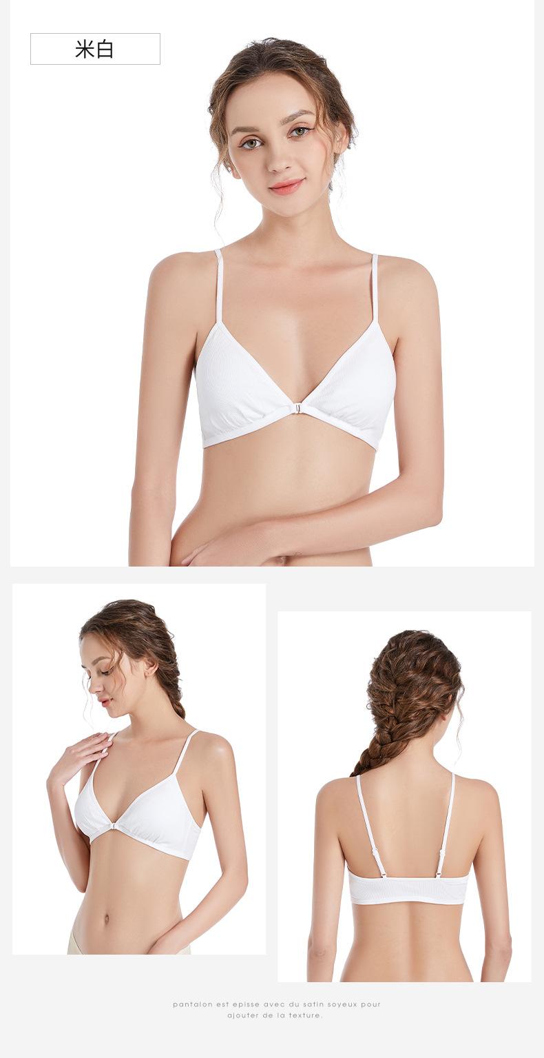 Sujetador de copa triangular sexy francés de color sólido, cómodo e inalámbrico, con tirantes finos para los hombros y hebilla frontal, tendencia