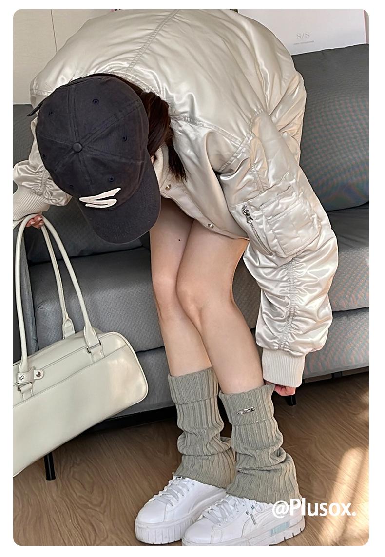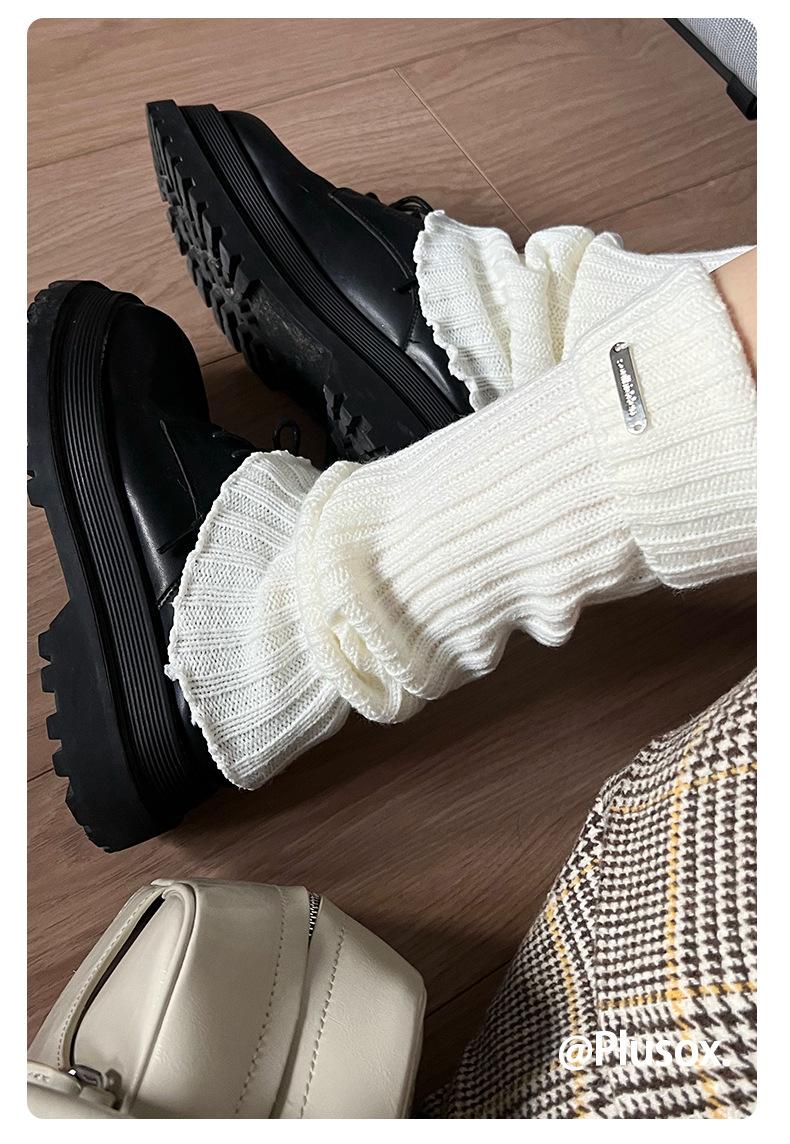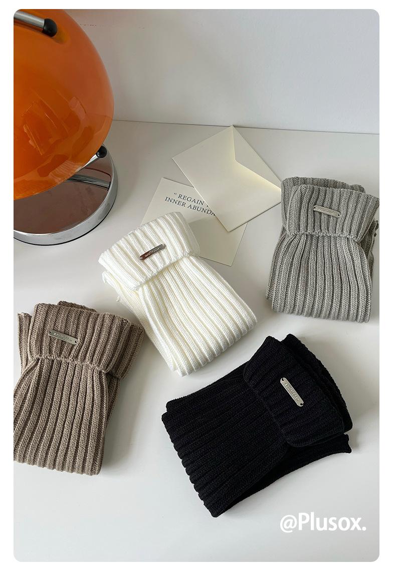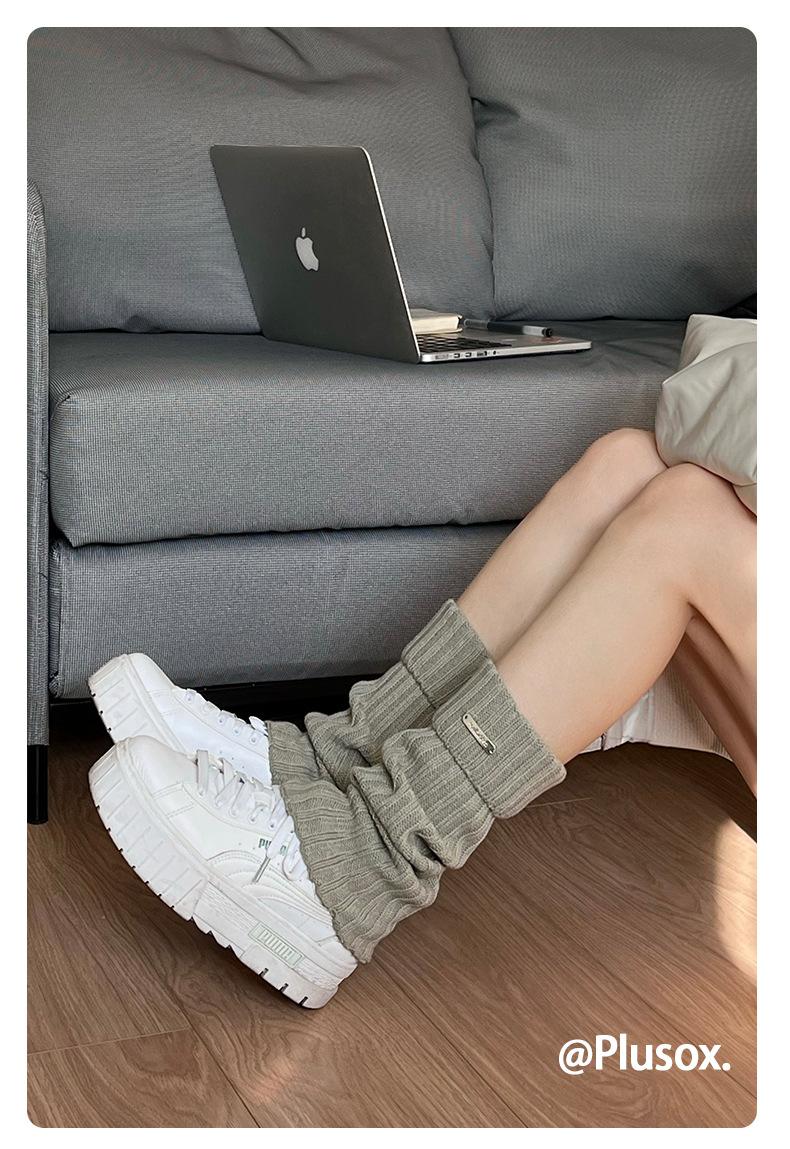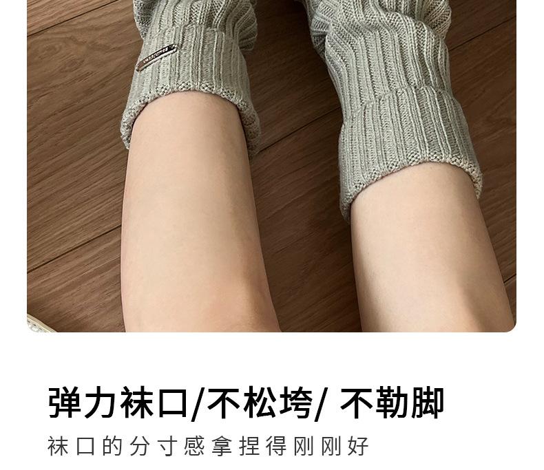 Calcetines de punto de color liso de plusox para otoño e invierno, con etiqueta de hierro plateada, para chica, que combinan con todo, con cubierta para las piernas, gruesos y cálidos.