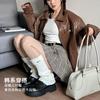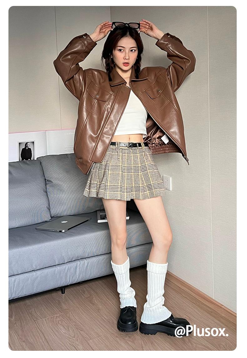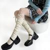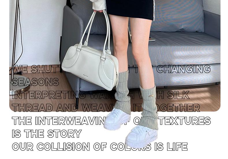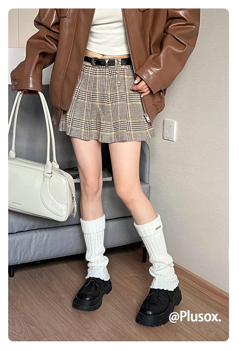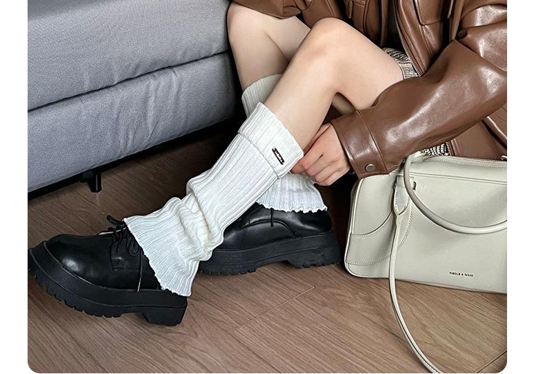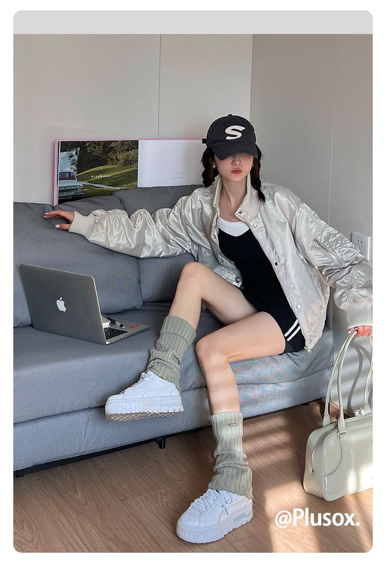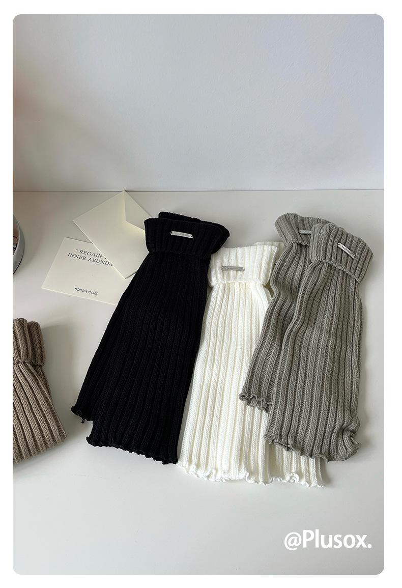 Calcetines de punto de color liso de plusox para otoño e invierno, con etiqueta de hierro plateada, para chica, que combinan con todo, con cubierta para las piernas, gruesos y cálidos.