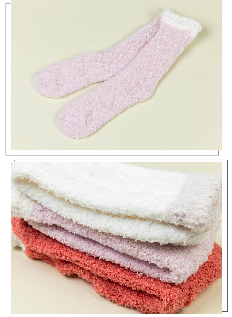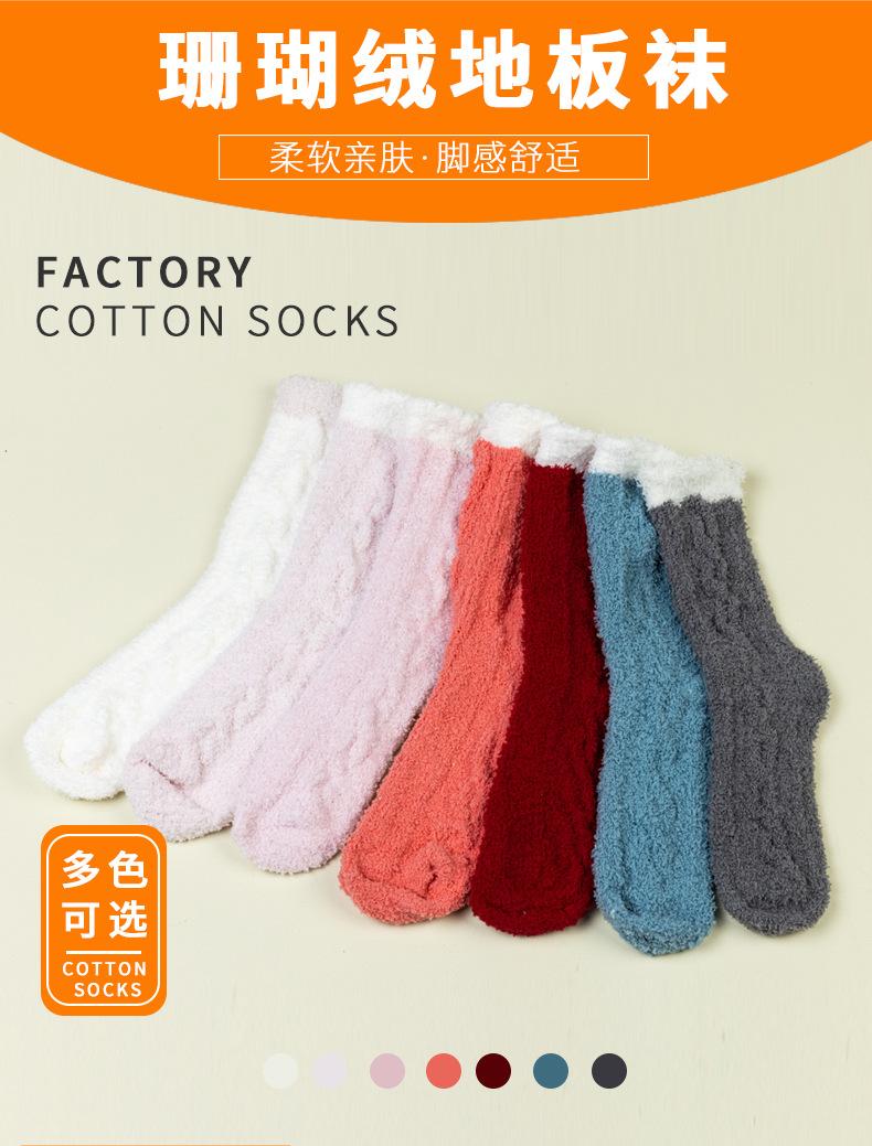 Meias de veludo coral para mulheres outono e inverno forradas de lã espessas toalha meias de chão meias longas para dormir meias quentes de cano médio