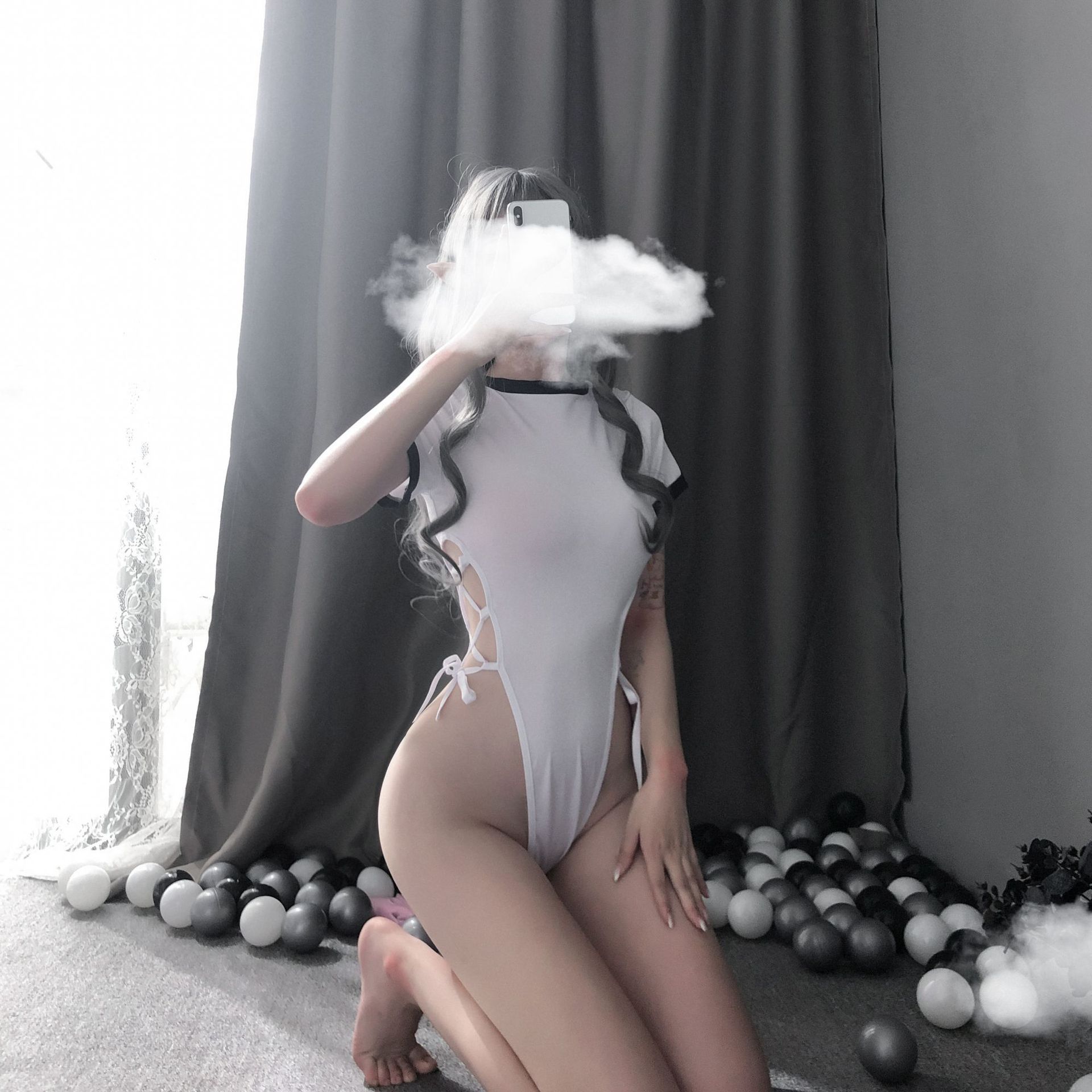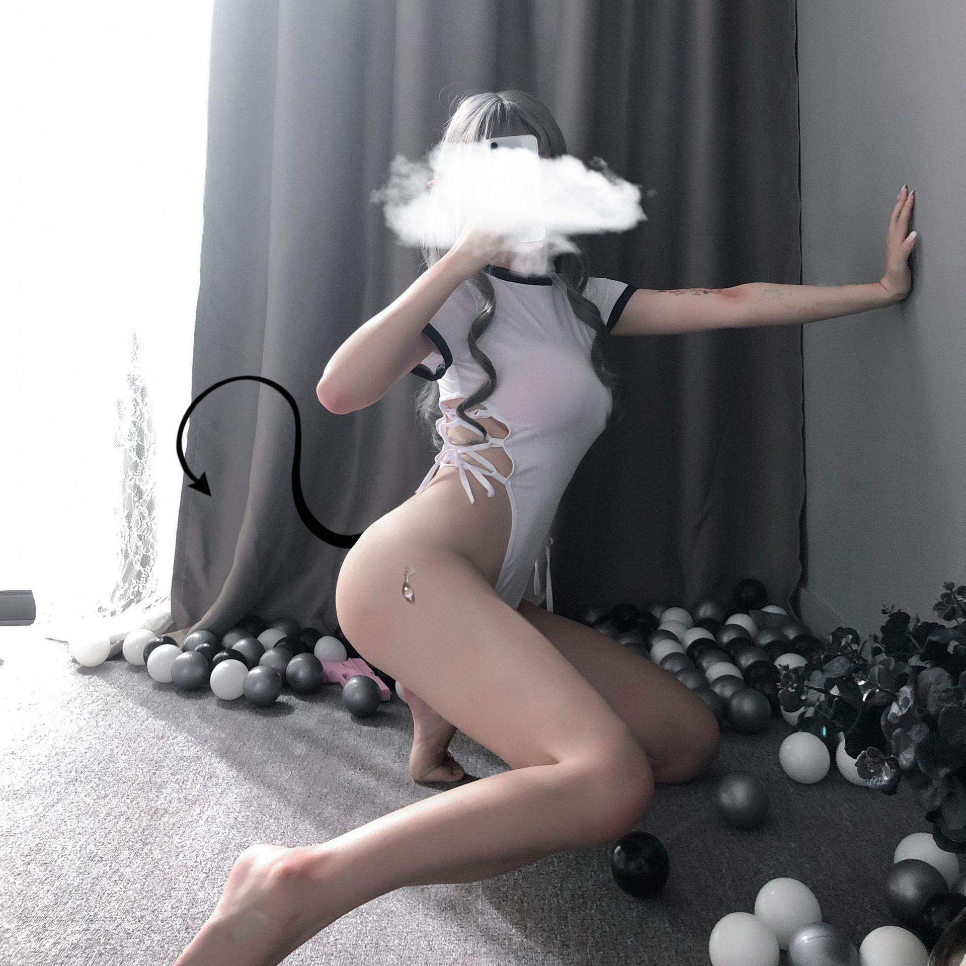 Lencería sexy de agua muerta, traje de una pieza con abertura alta y cordones, hebilla oculta, traje de estudiante abierto con cordones laterales
