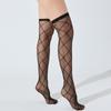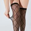 Calcetines hasta la rodilla de cuadros de diamantes negros de seda tentación calcetines altos hasta el muslo