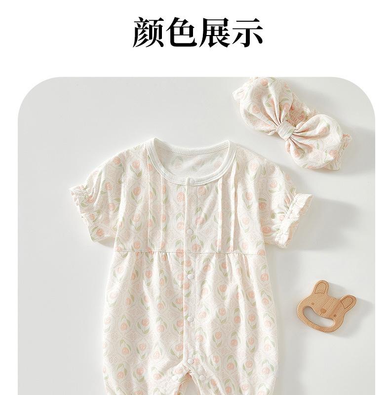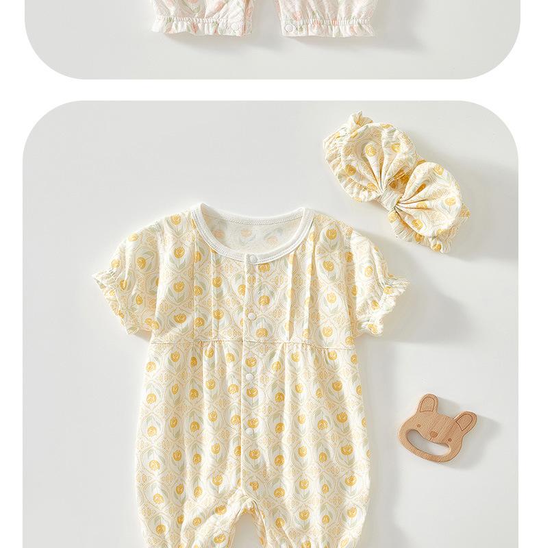 Mono de bebé de verano de manga corta, ropa fina para mujer con banda para el pelo, pijamas de verano, ropa para recién nacidos