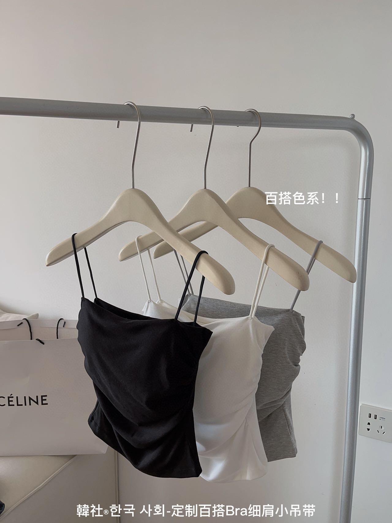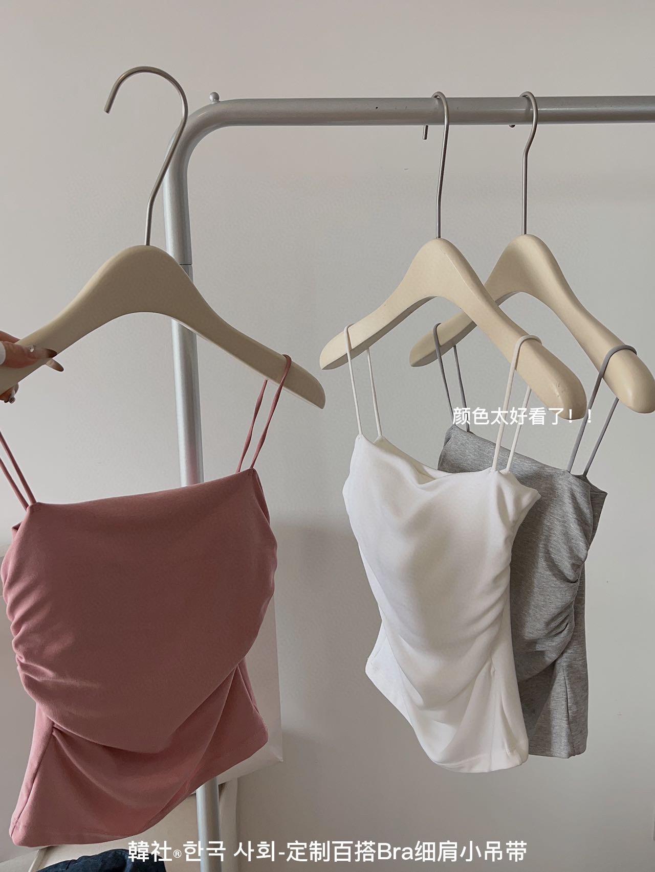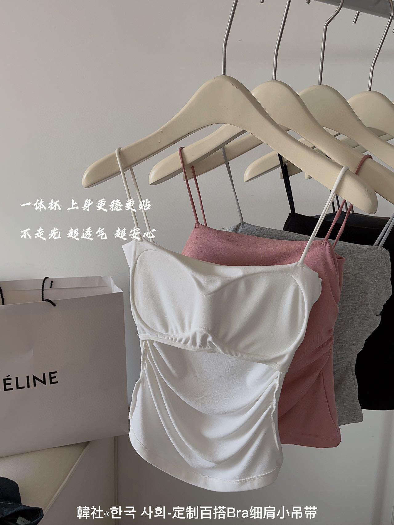 Chaleco de hombros finos que combina con todo, con almohadilla para el pecho, camisa de fondo plisada pura, top de tubo, top fino, ropa exterior, eslinga para la espalda Slimming Beauty