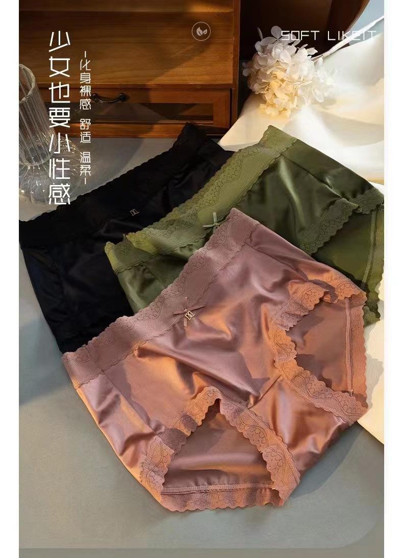 Ropa interior ligera de lujo para mujer, de cintura media, con encaje sin marcas, de algodón puro, con entrepierna y realce de cadera, talla grande.