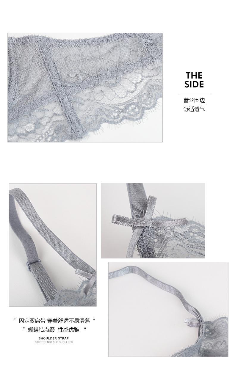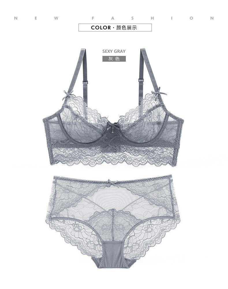 Venta directa de fábrica, nuevo conjunto de sujetador sexy de encaje pequeño con pecho grande y ropa interior hueca ultrafina para mujer |