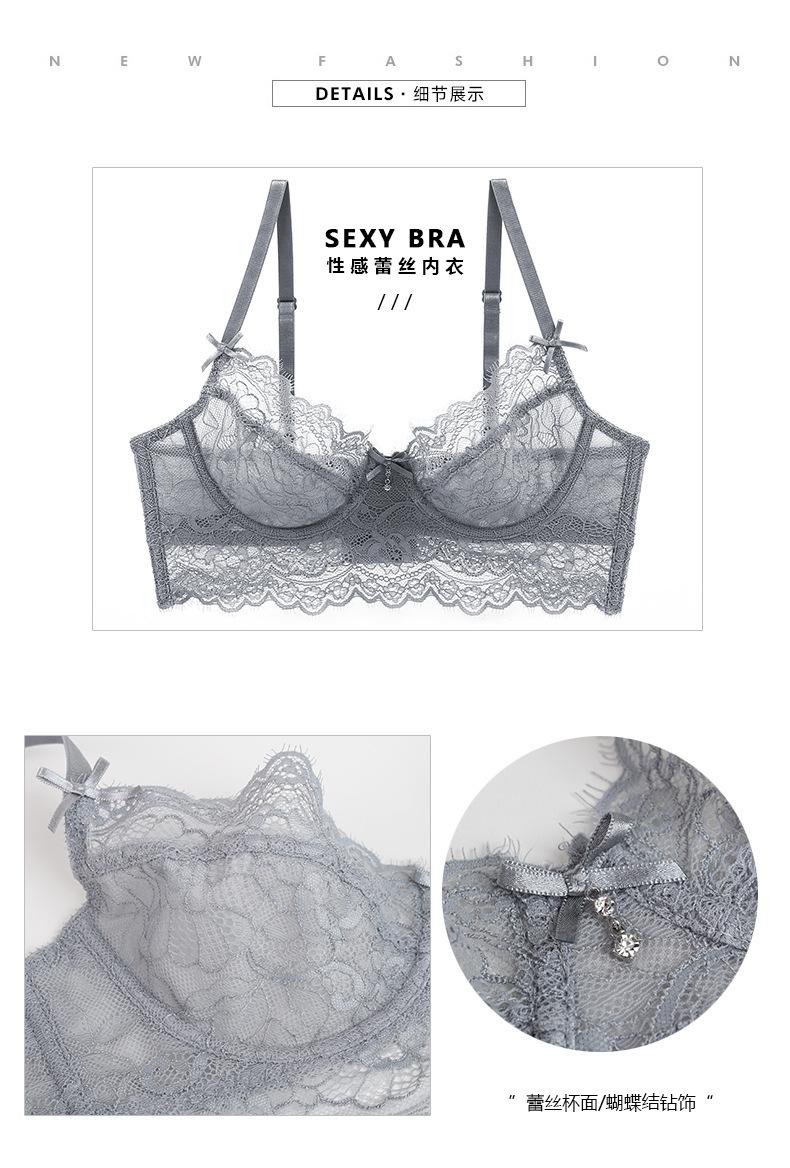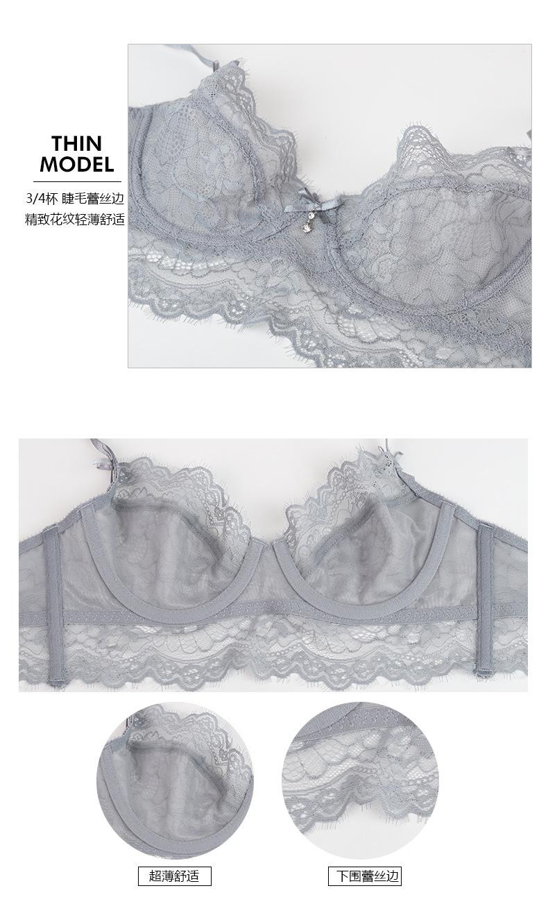 Conjunto de sujetador de mujer, ropa interior de encaje sexy, nueva, europea y americana, ultrafina, transpirable, de pecho grande, de talla pequeña |