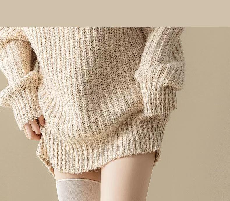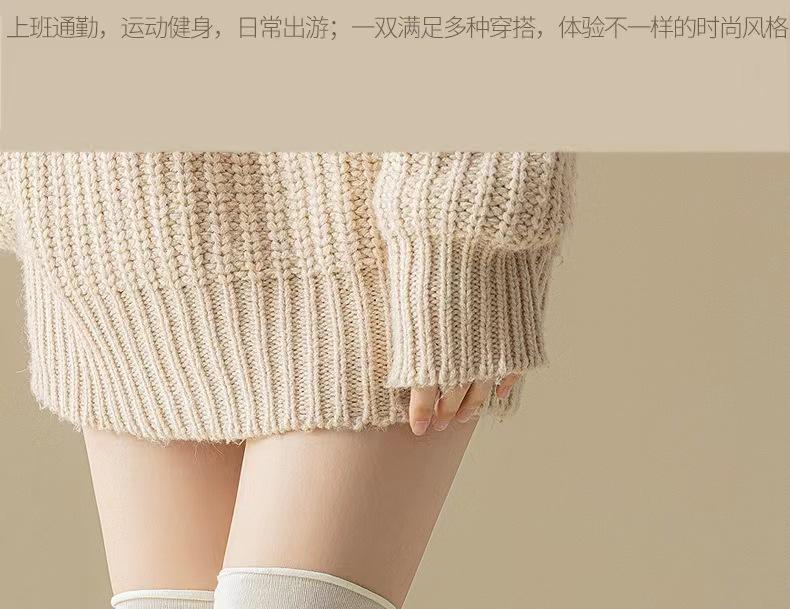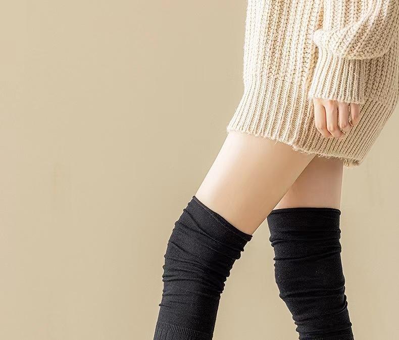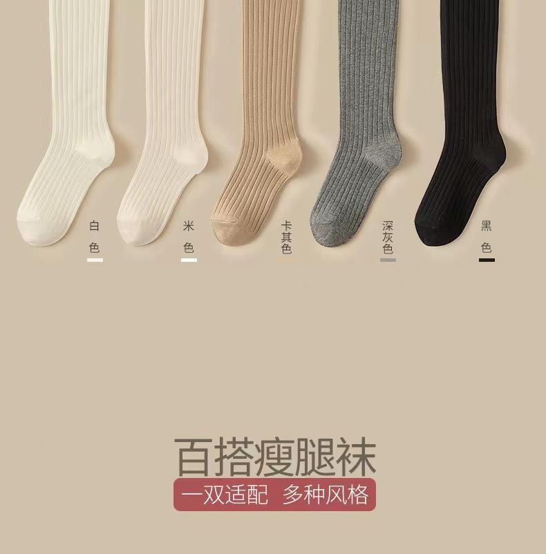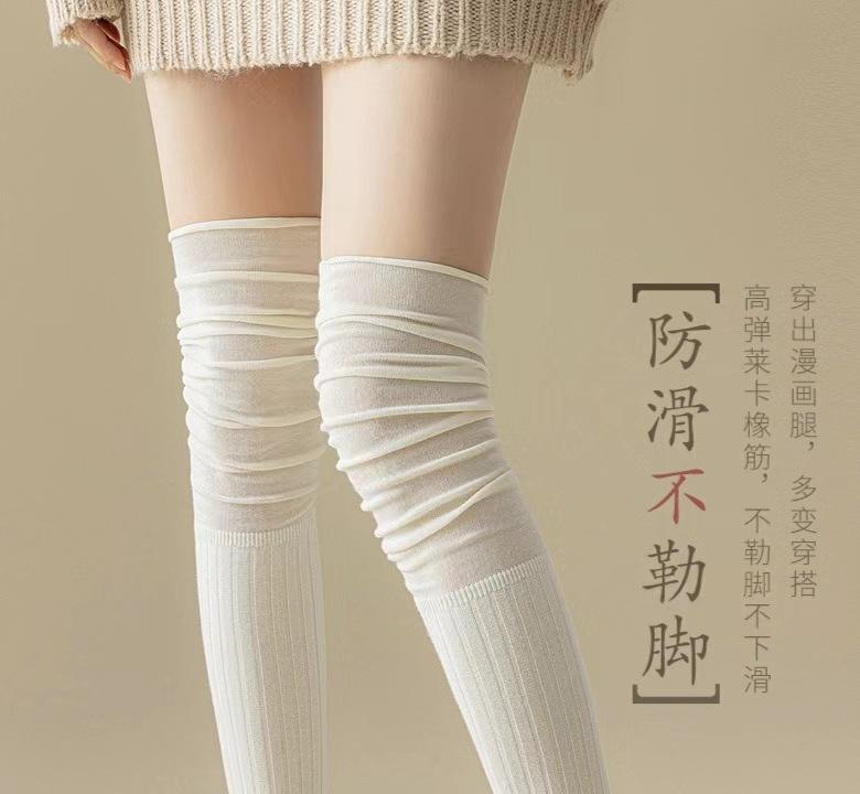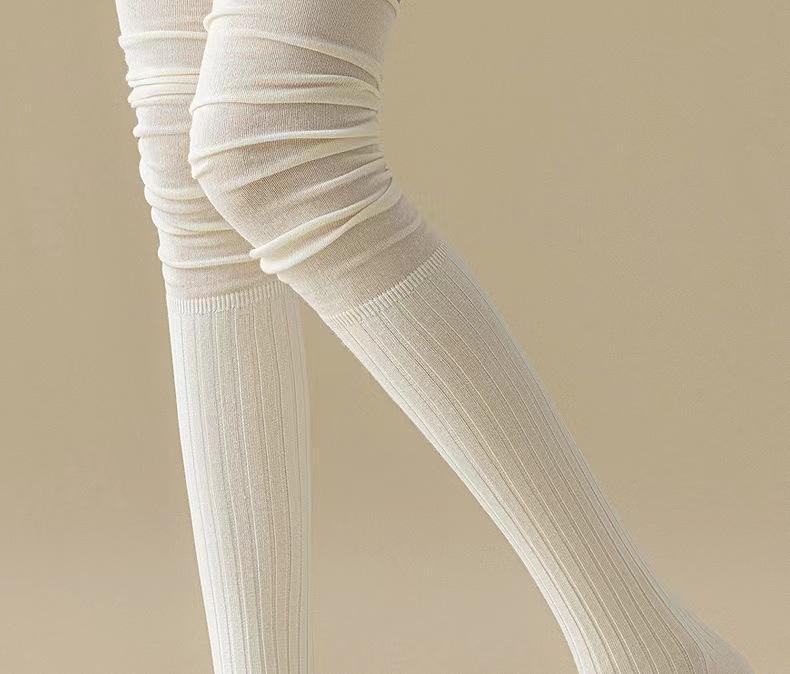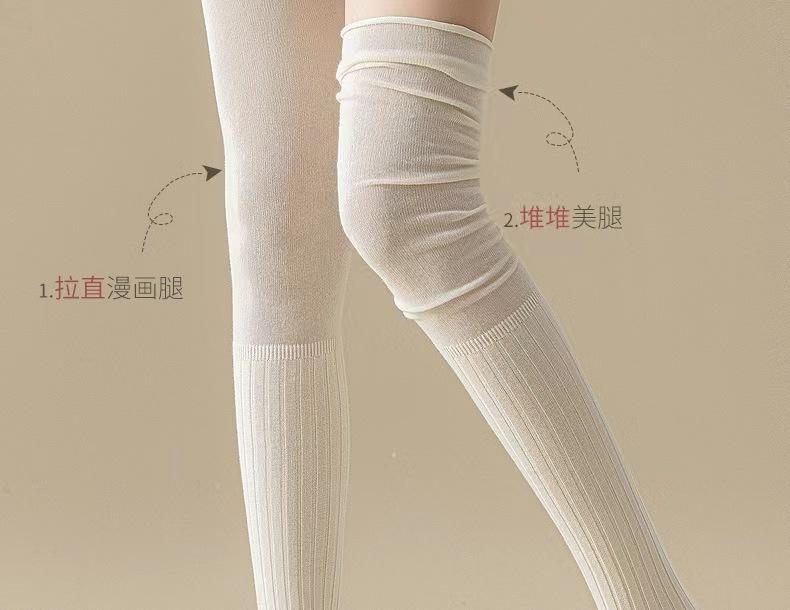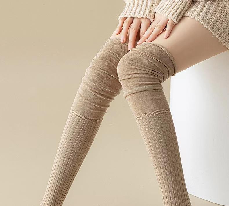 Medias blancas leche de otoño e invierno, medias altas color caqui para mujer, calcetines beige hasta el muslo, calcetines hasta la rodilla con costura japonesa, calcetines apilados