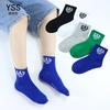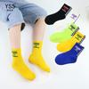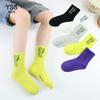 Par de calcetines para niños Yi, estilo coreano, de color liso, de longitud media, de algodón peinado, blancos, deportivos, para niños y niñas, estudiantes, de algodón.