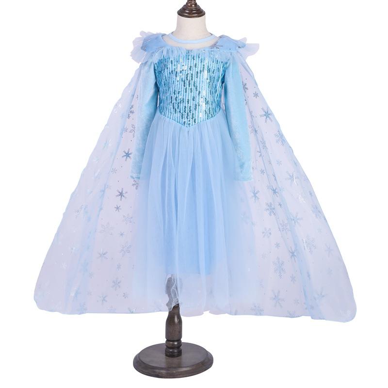 2021 Nuevo vestido de princesa Aisha congelada europea y americana, nuevo vestido de actuación para niños, vestido con capa de lentejuelas
