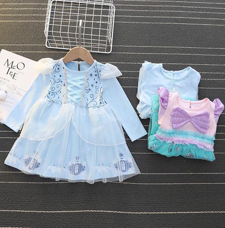 Vestido de verano para niñas, vestido de princesa Cenicienta, vestido de princesa Frozen para niños, vestido de malla esponjosa de alta gama