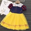 Vestido de princesa Elsa de Frozen de manga corta colorido, ropa infantil de comercio exterior, vestido de niña, disfraz de actuación para el Día del Niño
