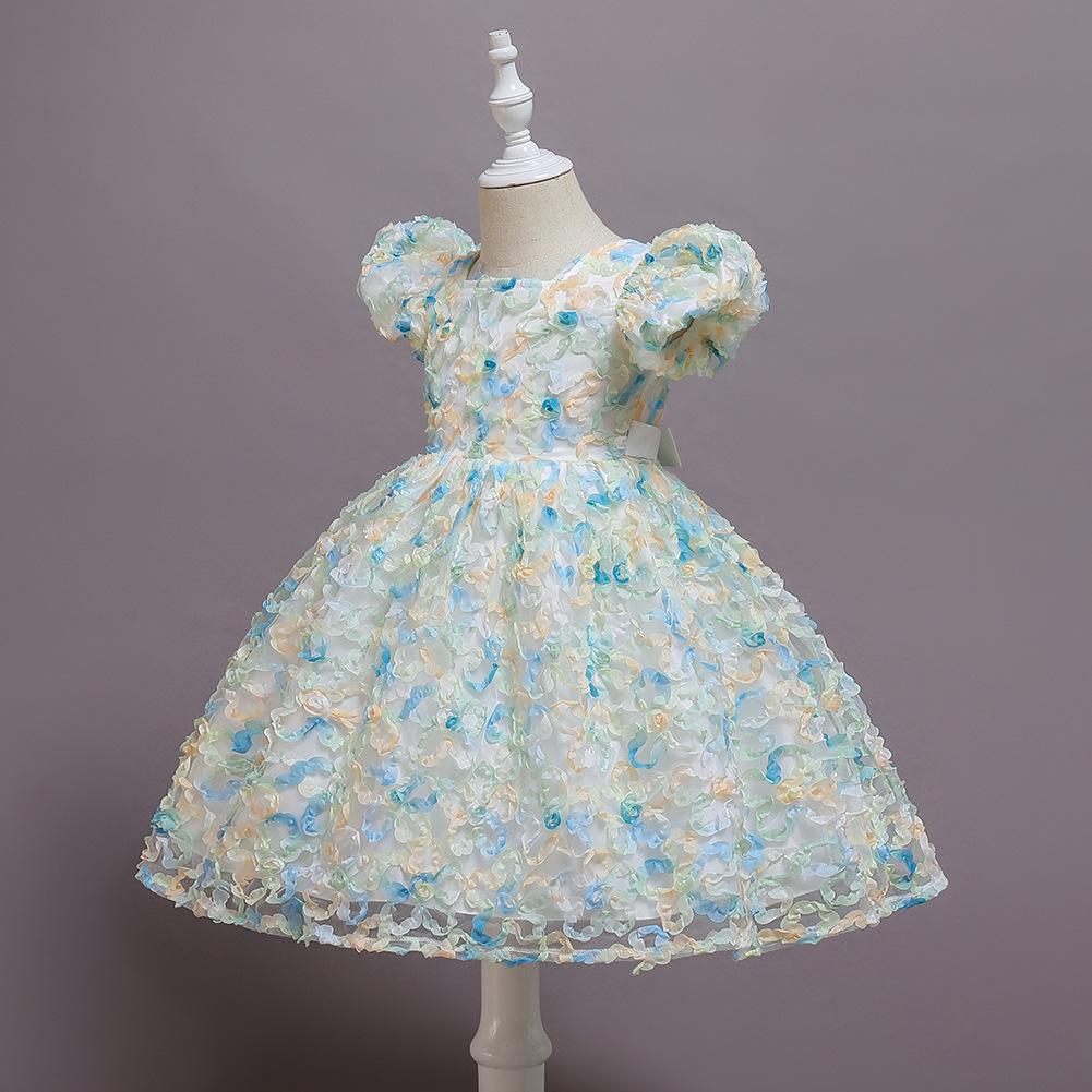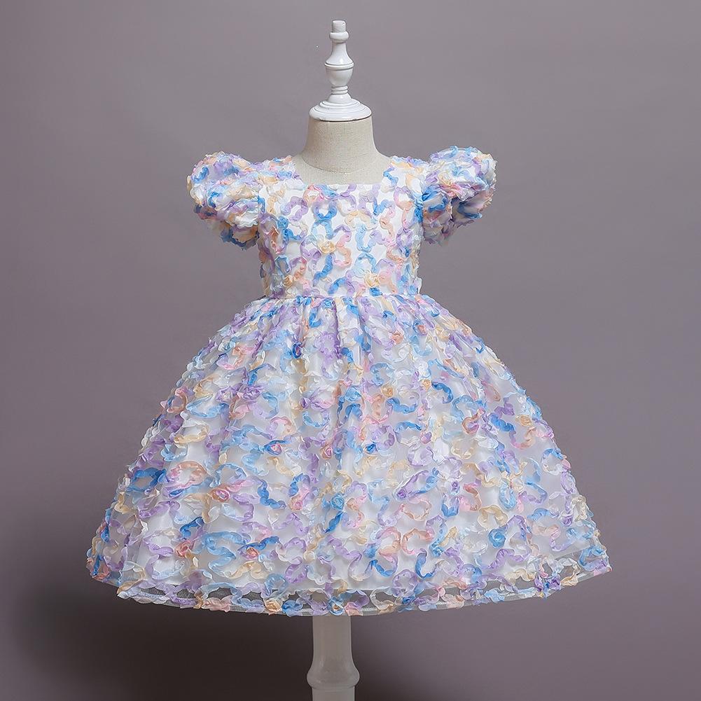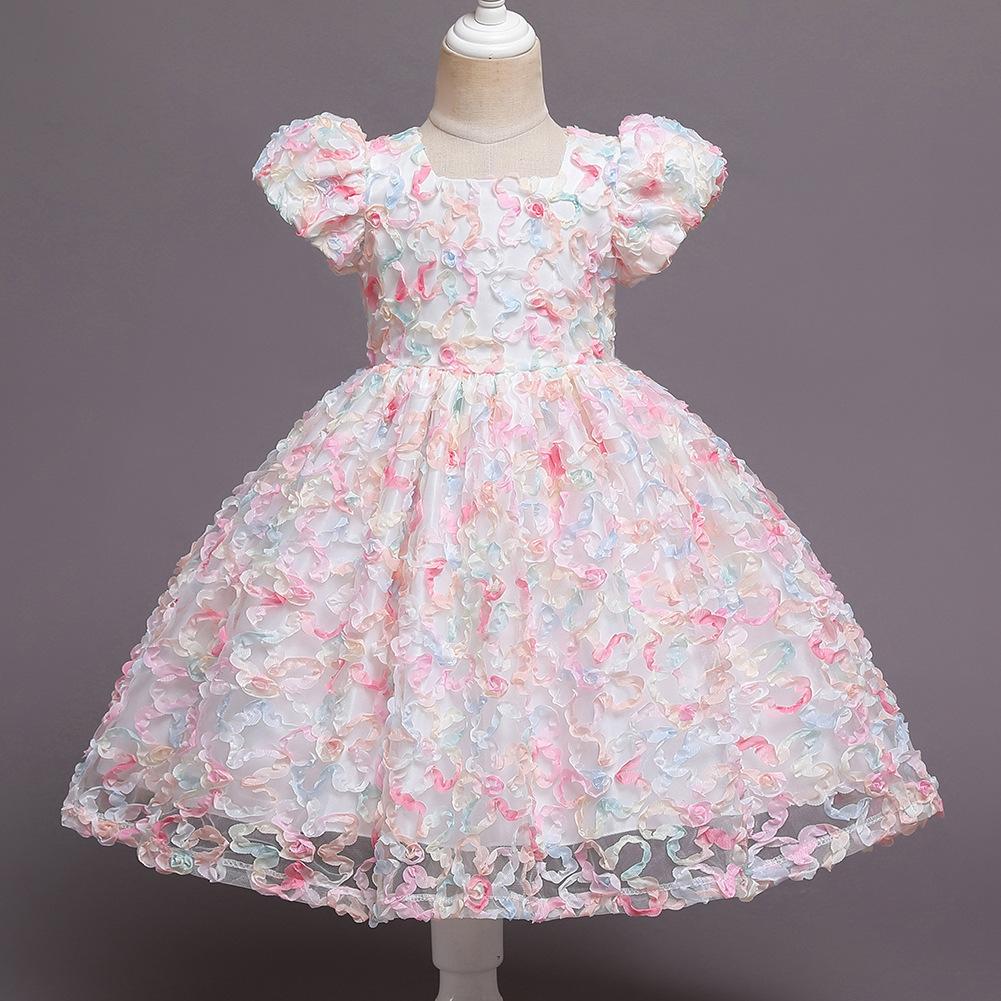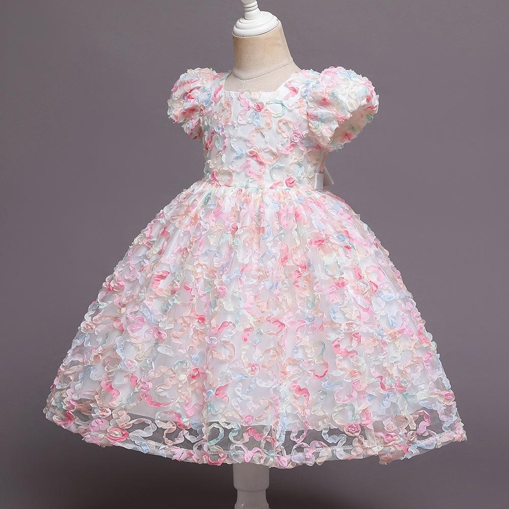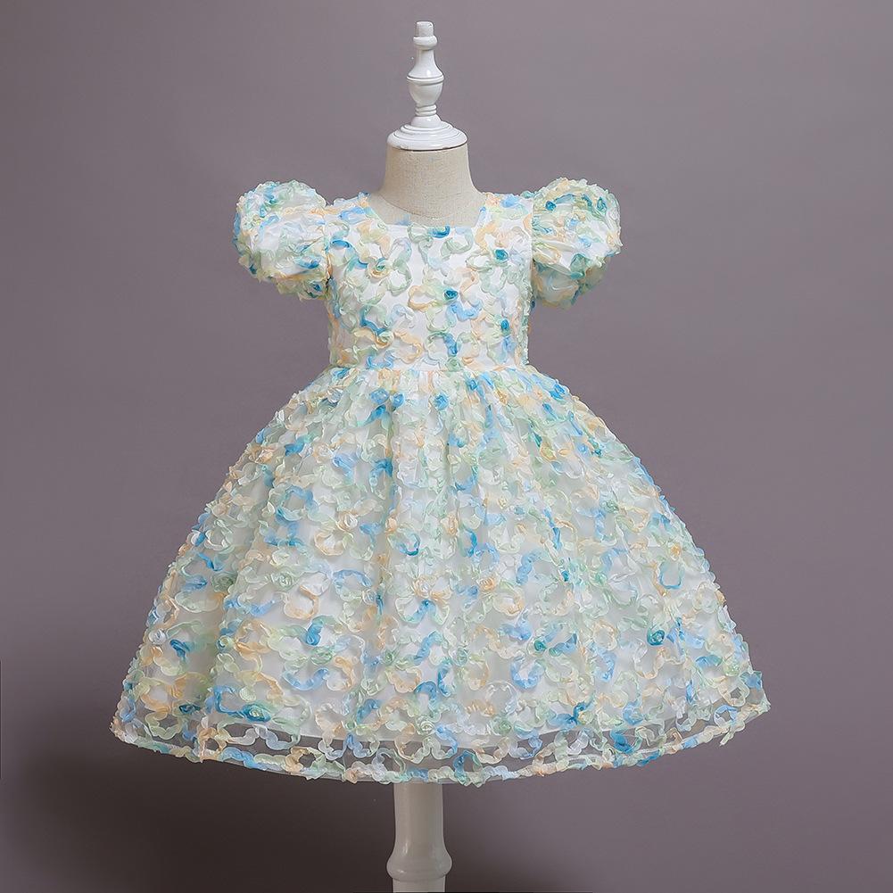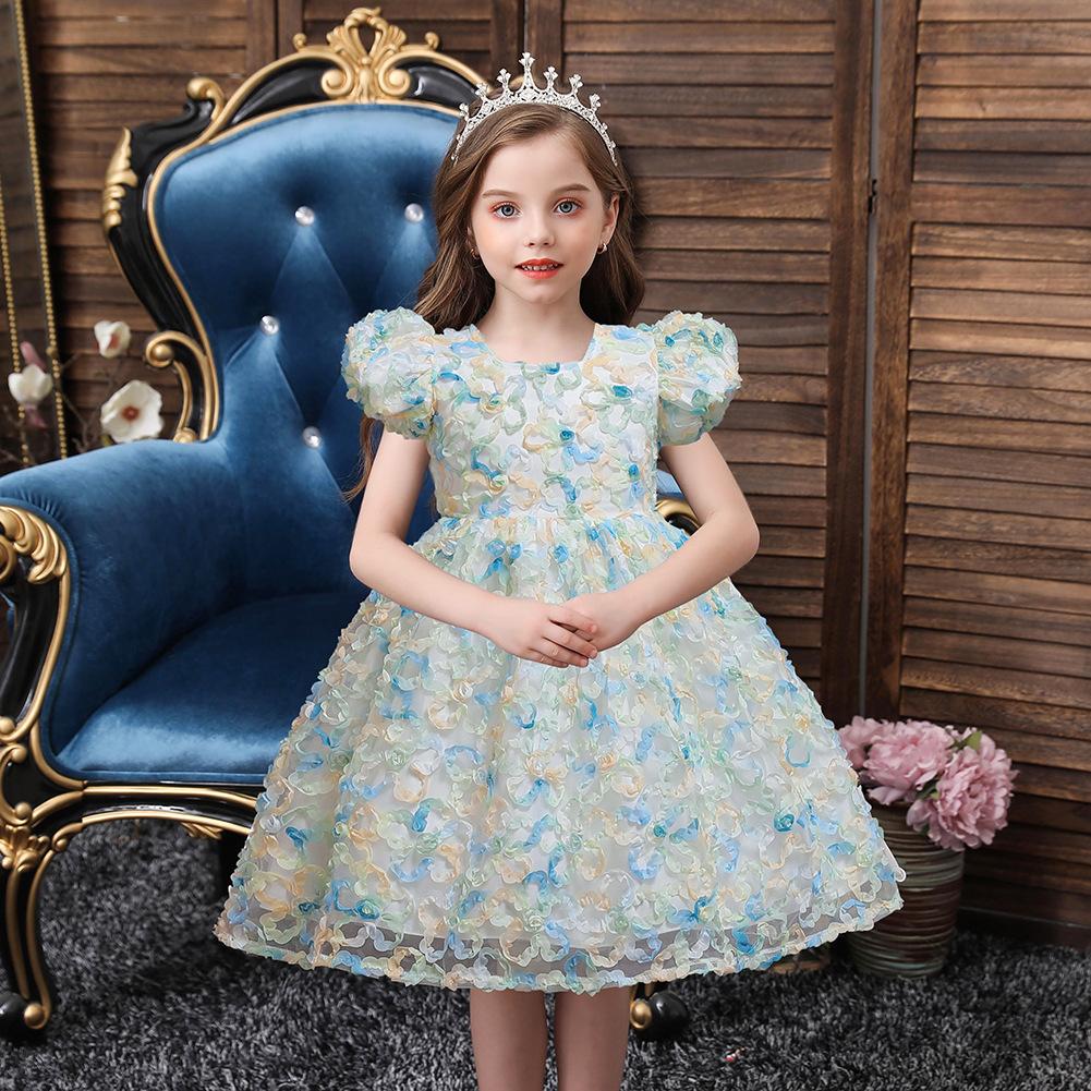 Vestido de Princesa Nuevo para Niñas de AliExpress Vestido de Noche de Manga Abullonada para Niñas Vestido de Flores Tridimensional para Bebé