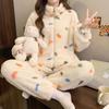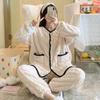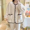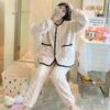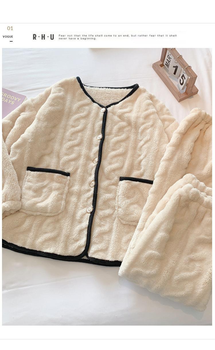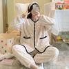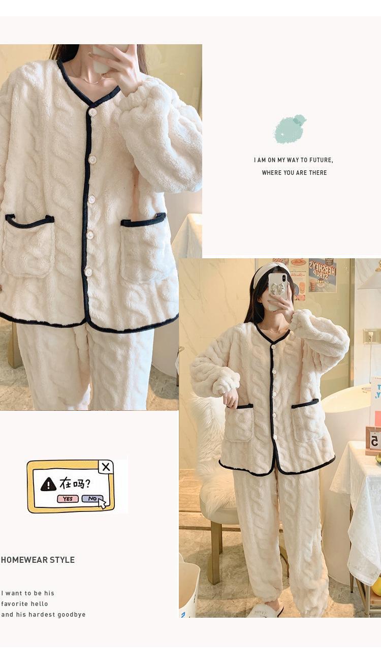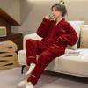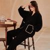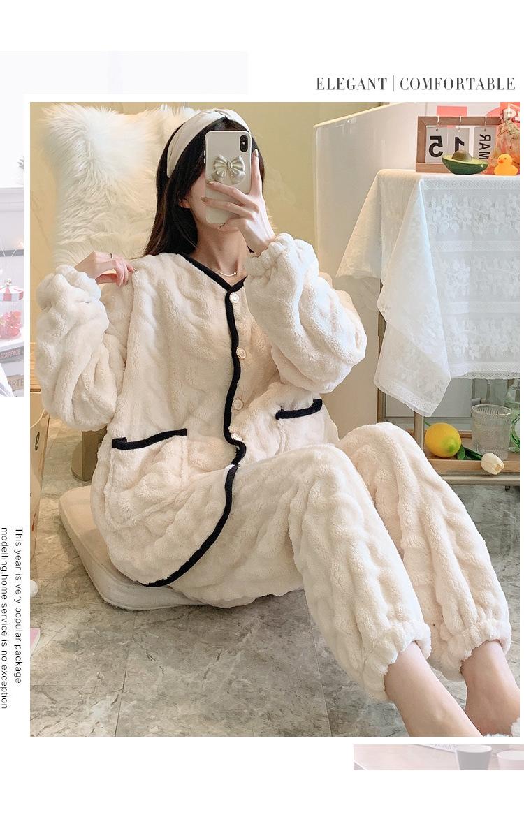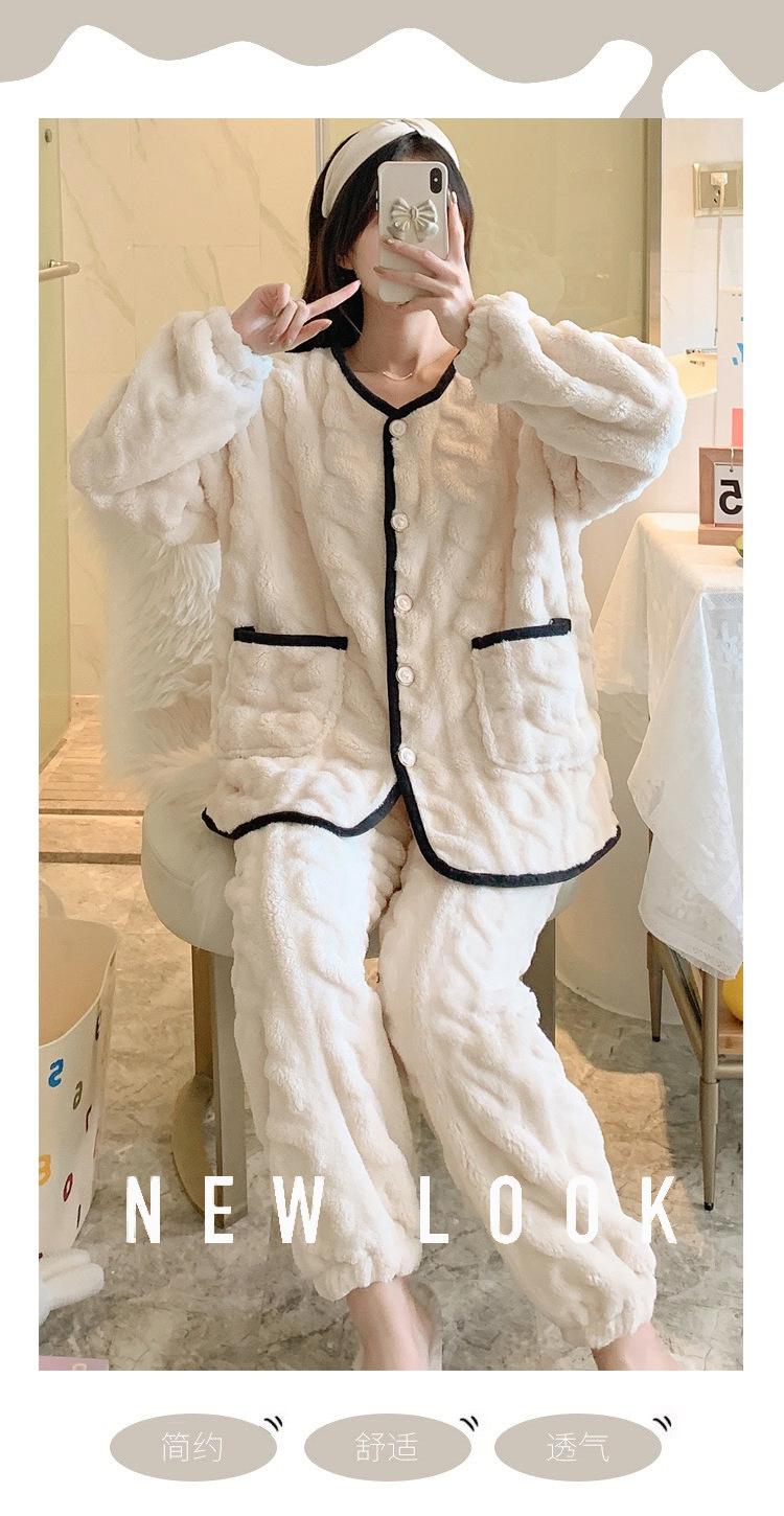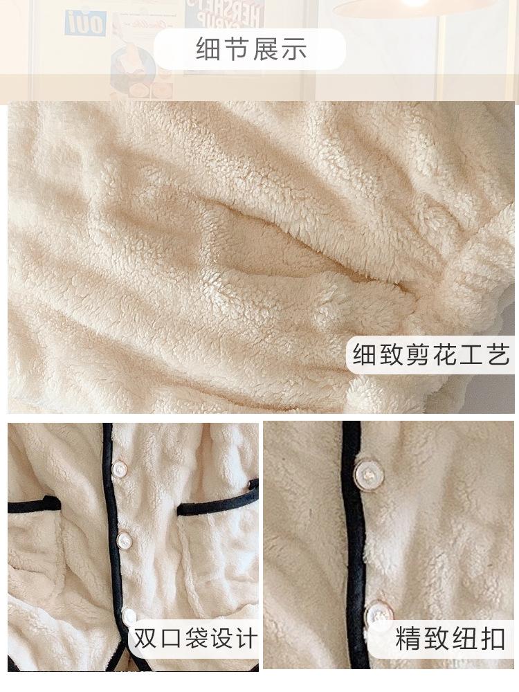 Pijama de mujer tipo cárdigan informal, sencillo, de invierno, holgado, de franela, cálido y grueso, de terciopelo, para el hogar