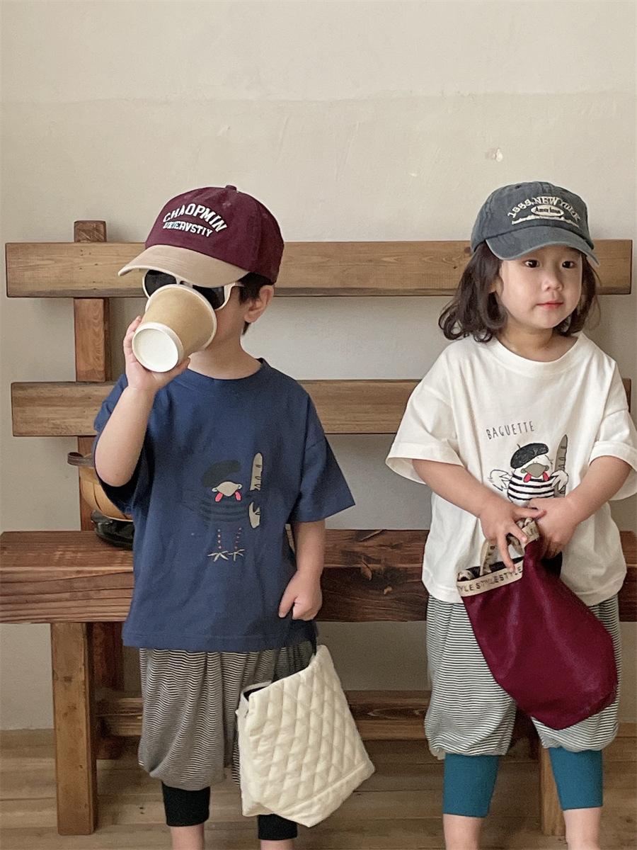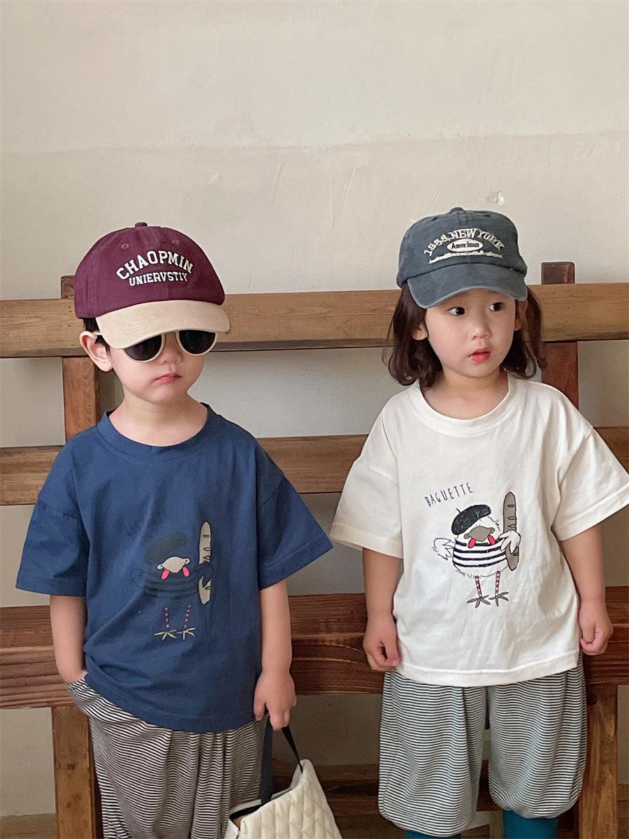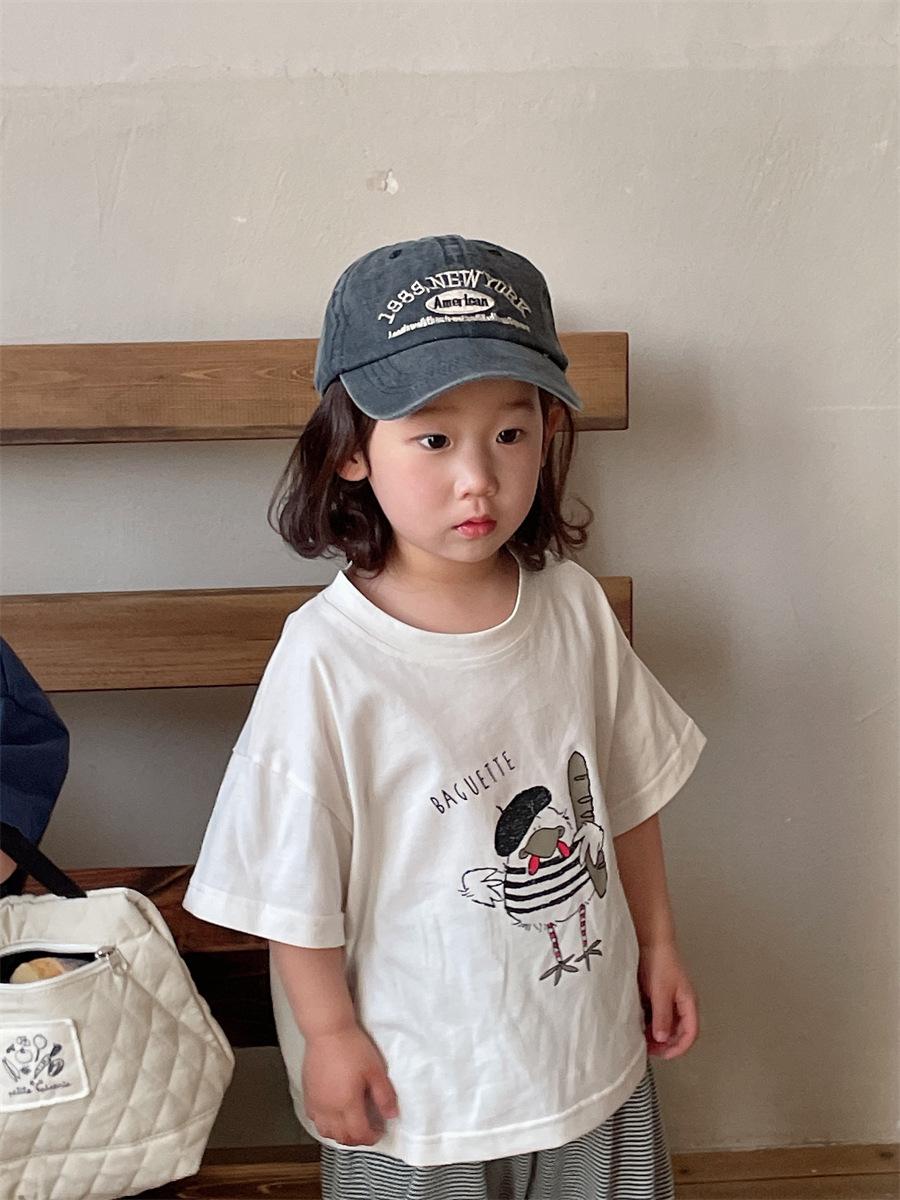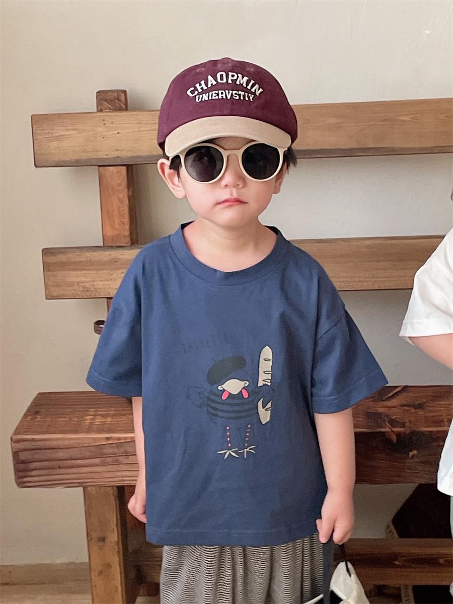 Camiseta de manga corta con estampado de dibujos animados para niños de Jiaye 2024 Verano Nuevo, camiseta holgada y linda de media manga para bebés niños y niñas