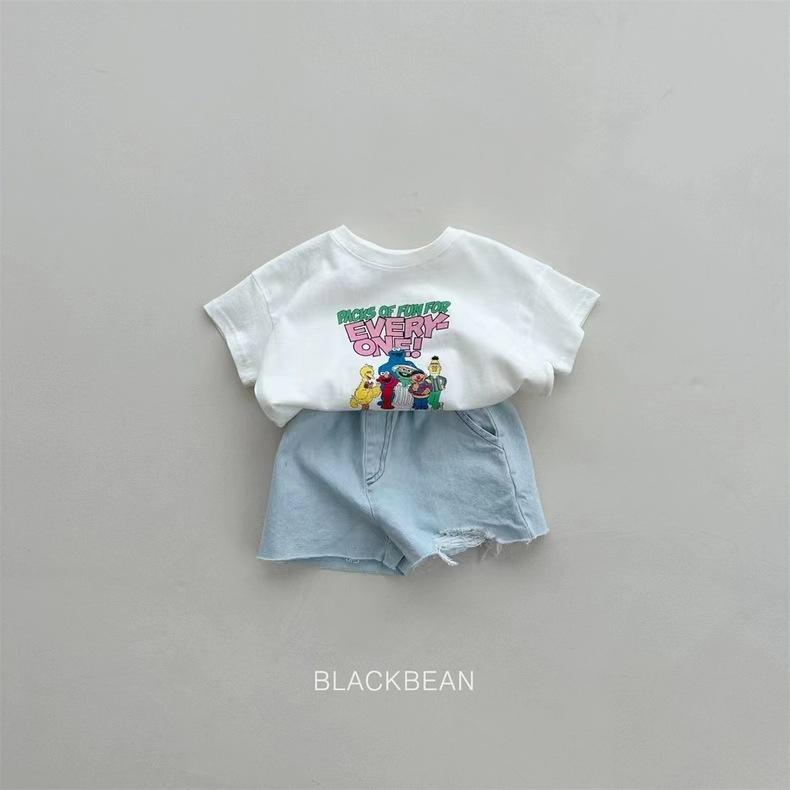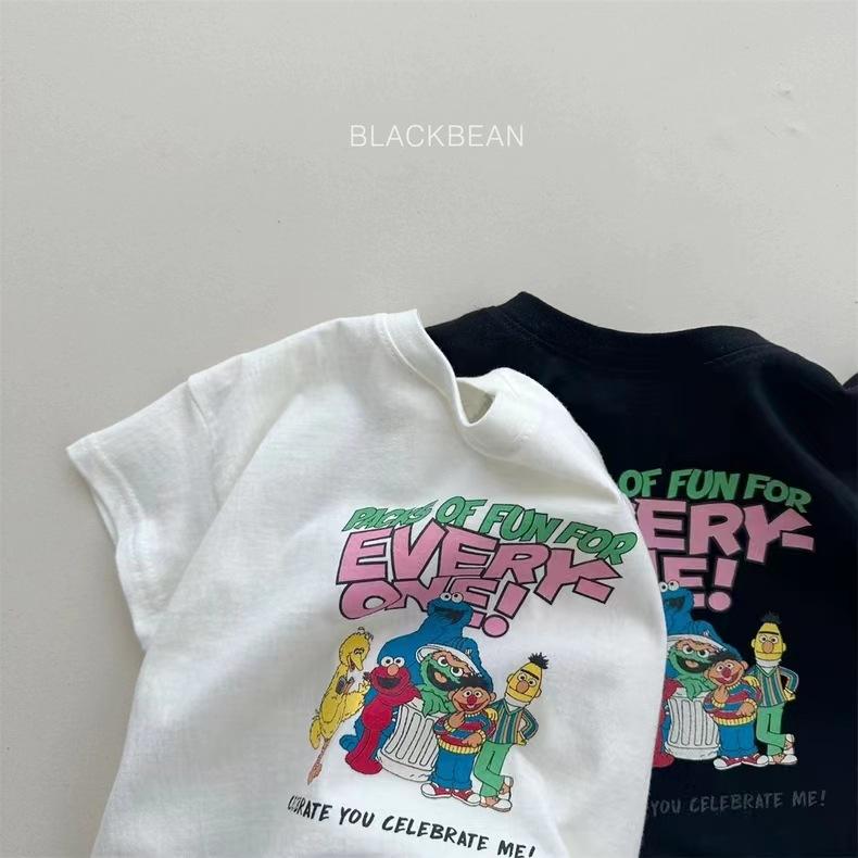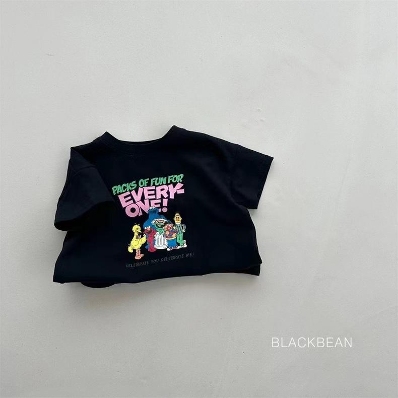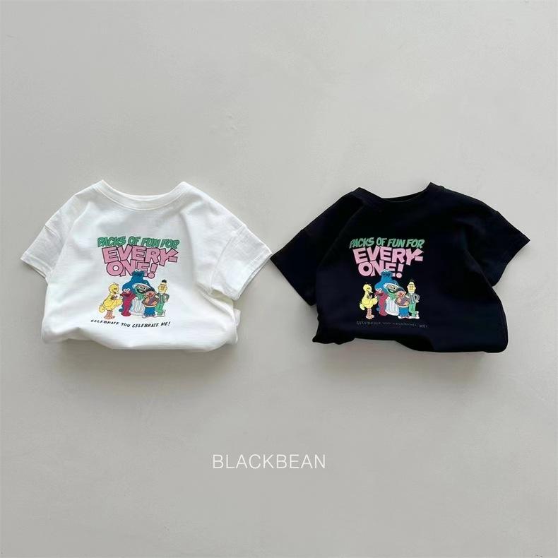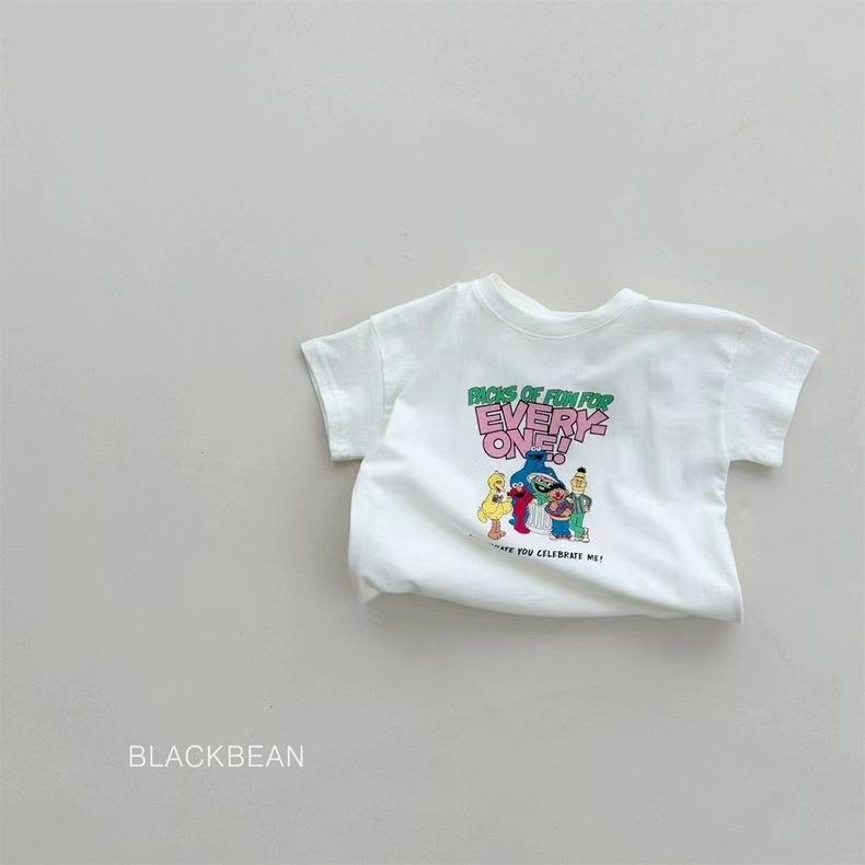 Camiseta de dibujos animados para bebés, niños y niñas, para familias de tres, de verano, de algodón, de manga corta y cuello redondo.