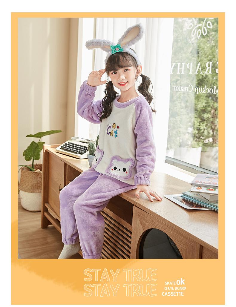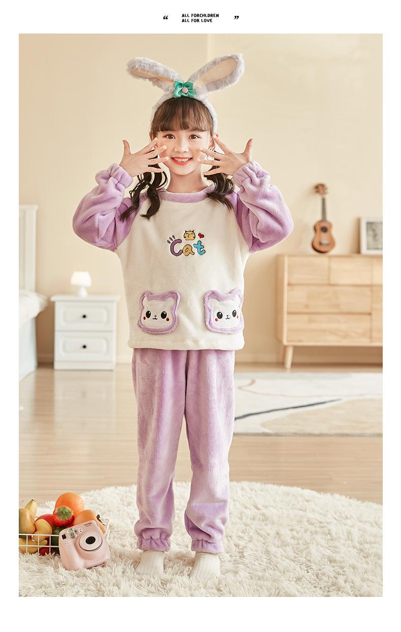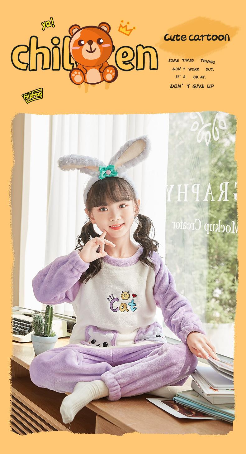 Traje de pijama para niñas 2023, ropa de hogar para niños con forro polar, traje de pijama cálido, suave y lindo para niñas de otoño e invierno