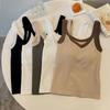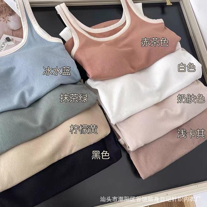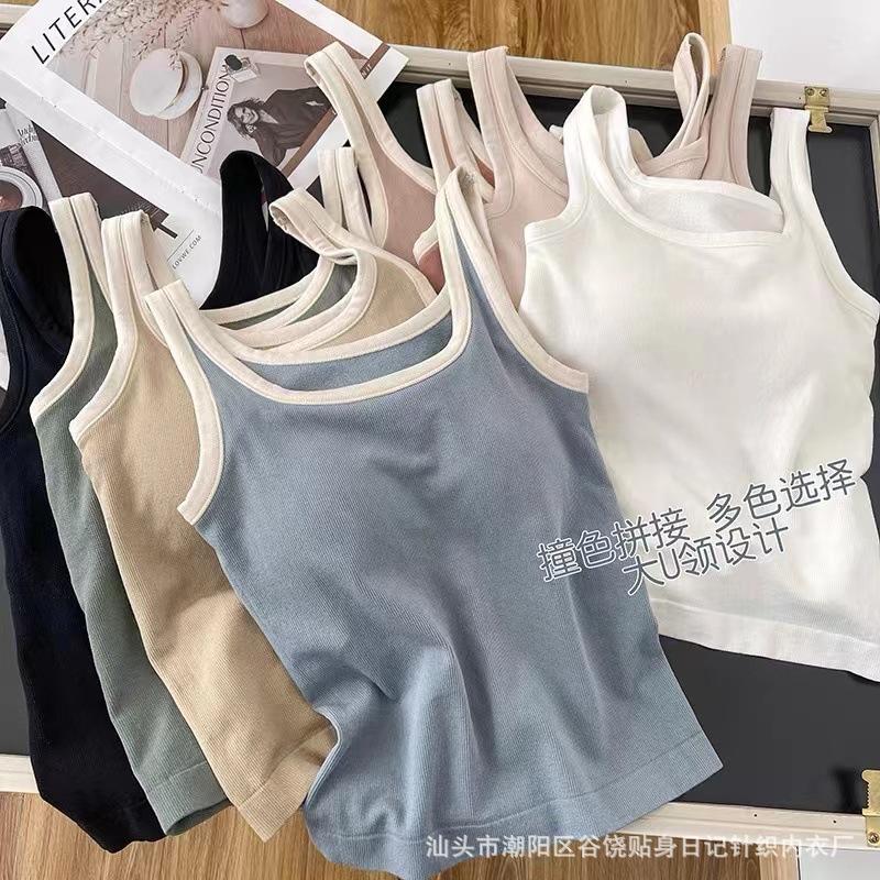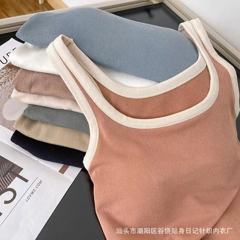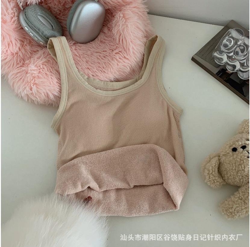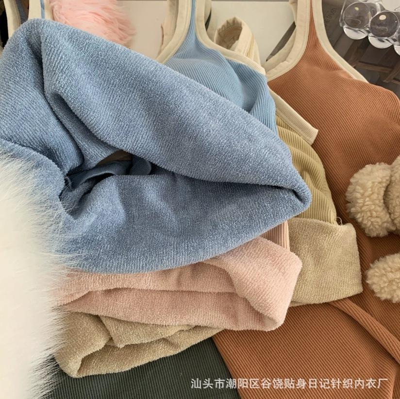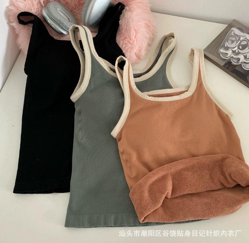 Otoño e invierno cálido Terry color contraste chaleco térmico top de brasier sin costuras cuello cuadrado adelgazante ropa interior térmica inalámbrica para mujer