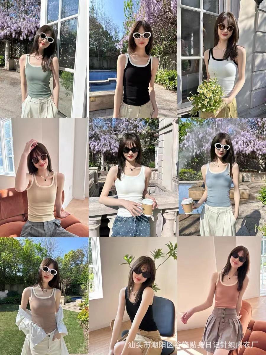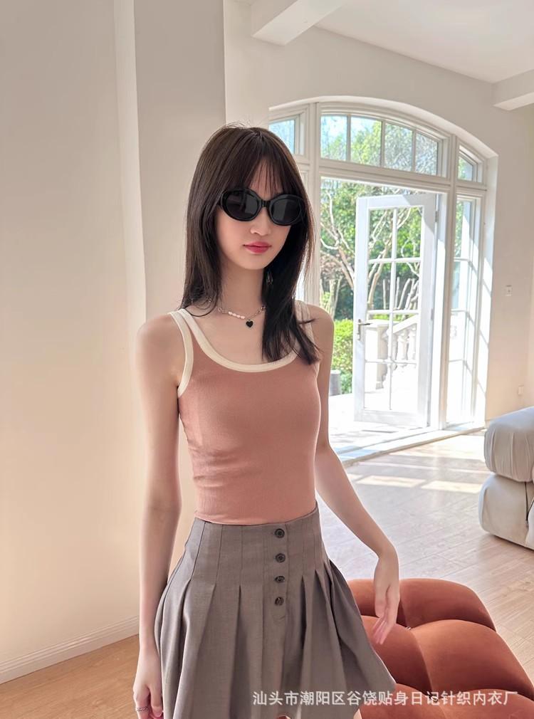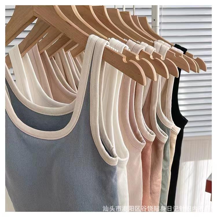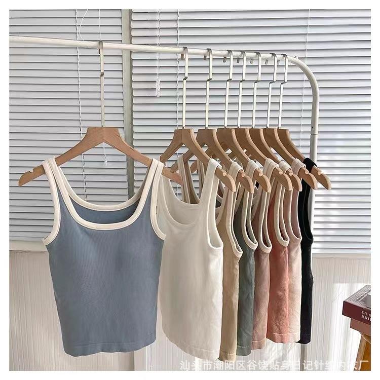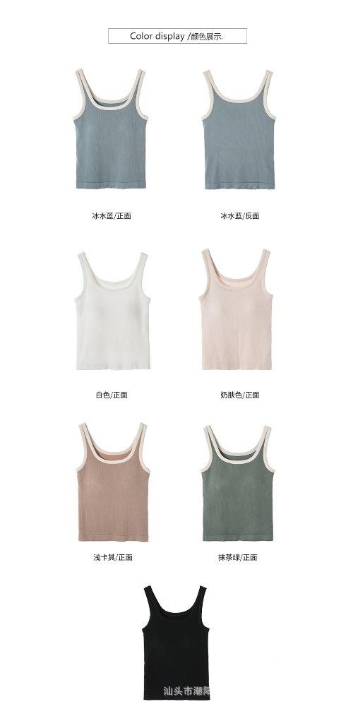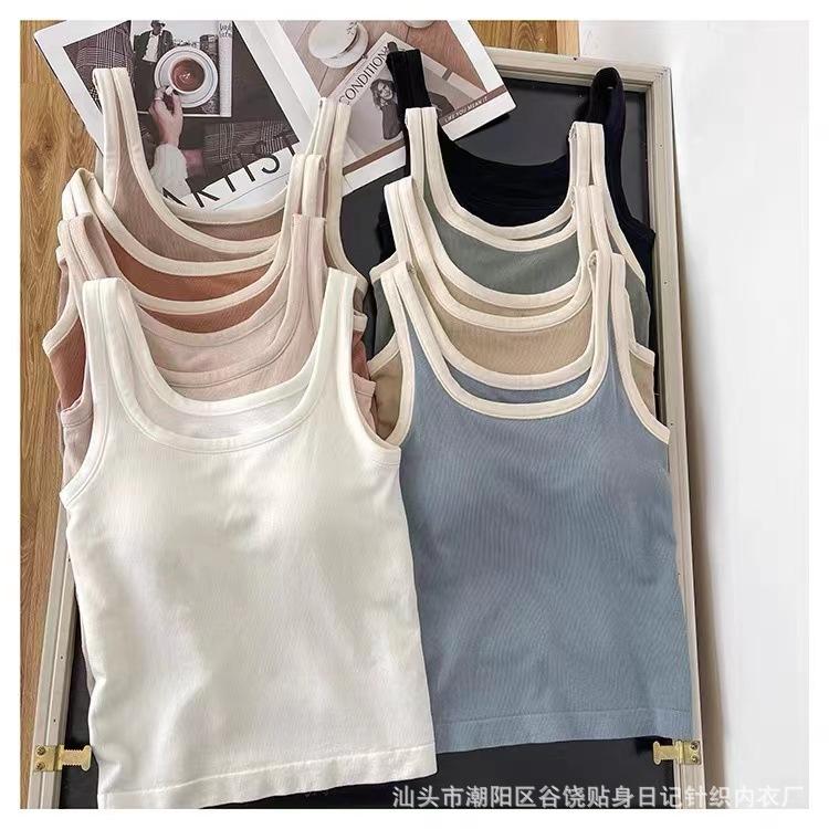 Otoño e invierno cálido Terry color contraste chaleco térmico top de brasier sin costuras cuello cuadrado adelgazante ropa interior térmica inalámbrica para mujer