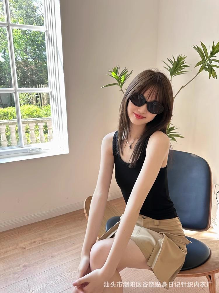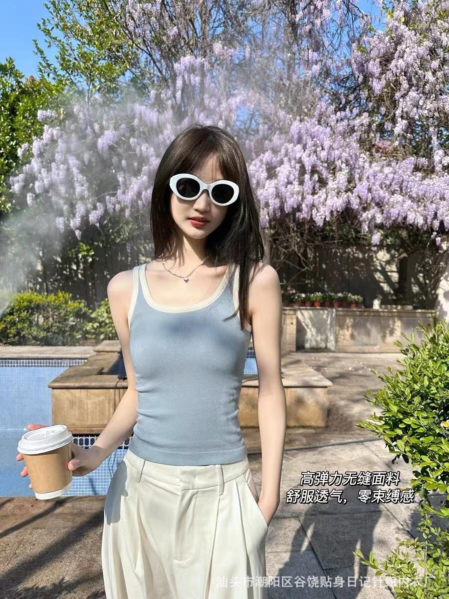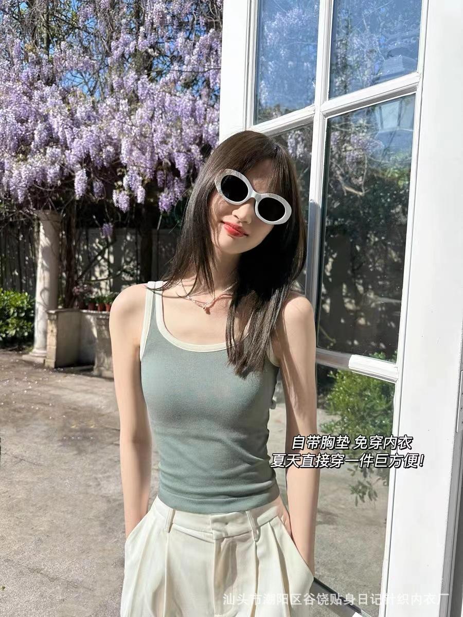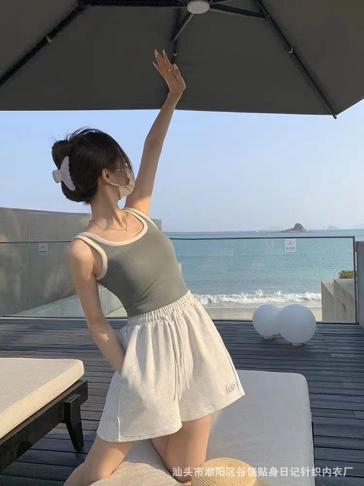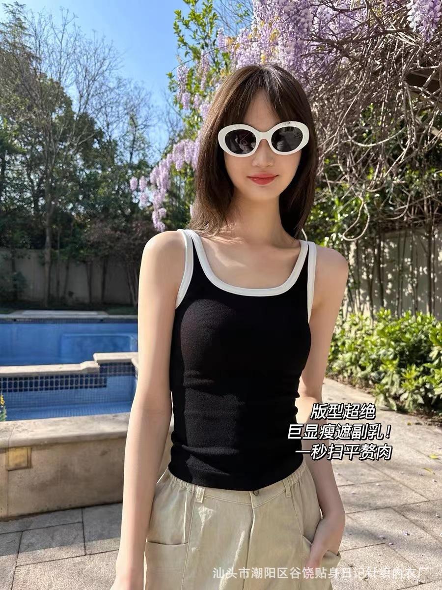 Otoño e invierno cálido Terry color contraste chaleco térmico top de brasier sin costuras cuello cuadrado adelgazante ropa interior térmica inalámbrica para mujer