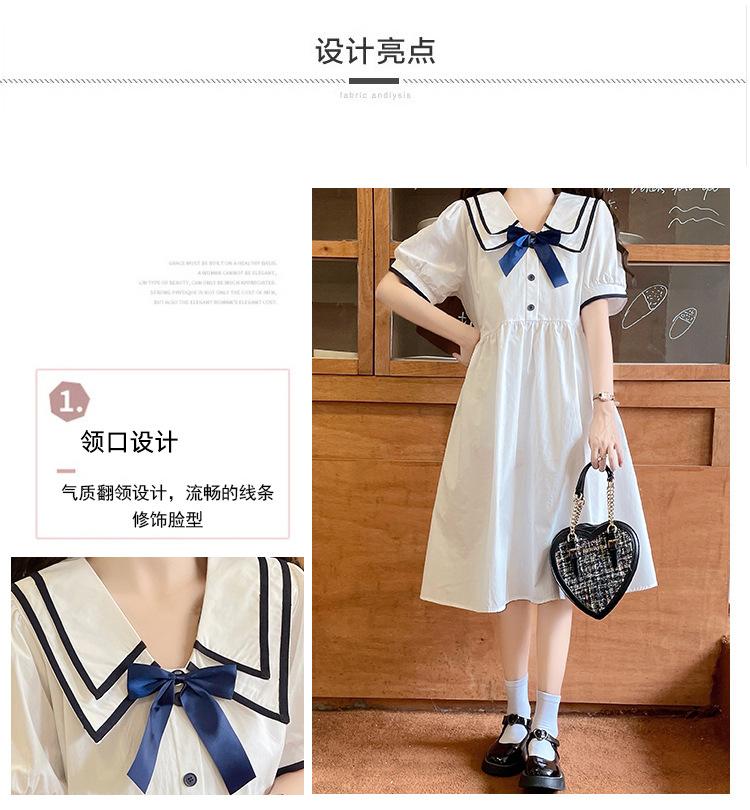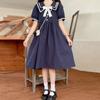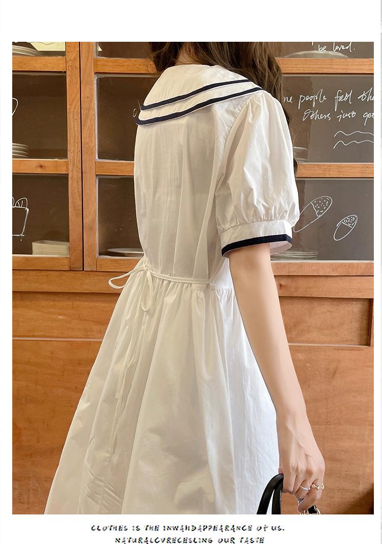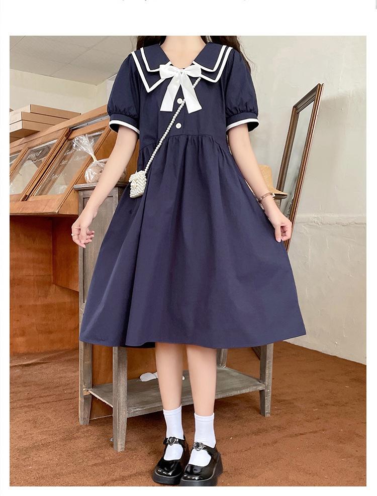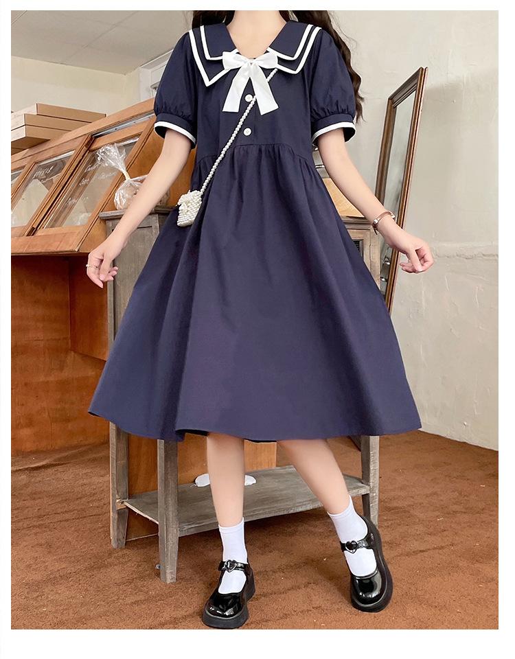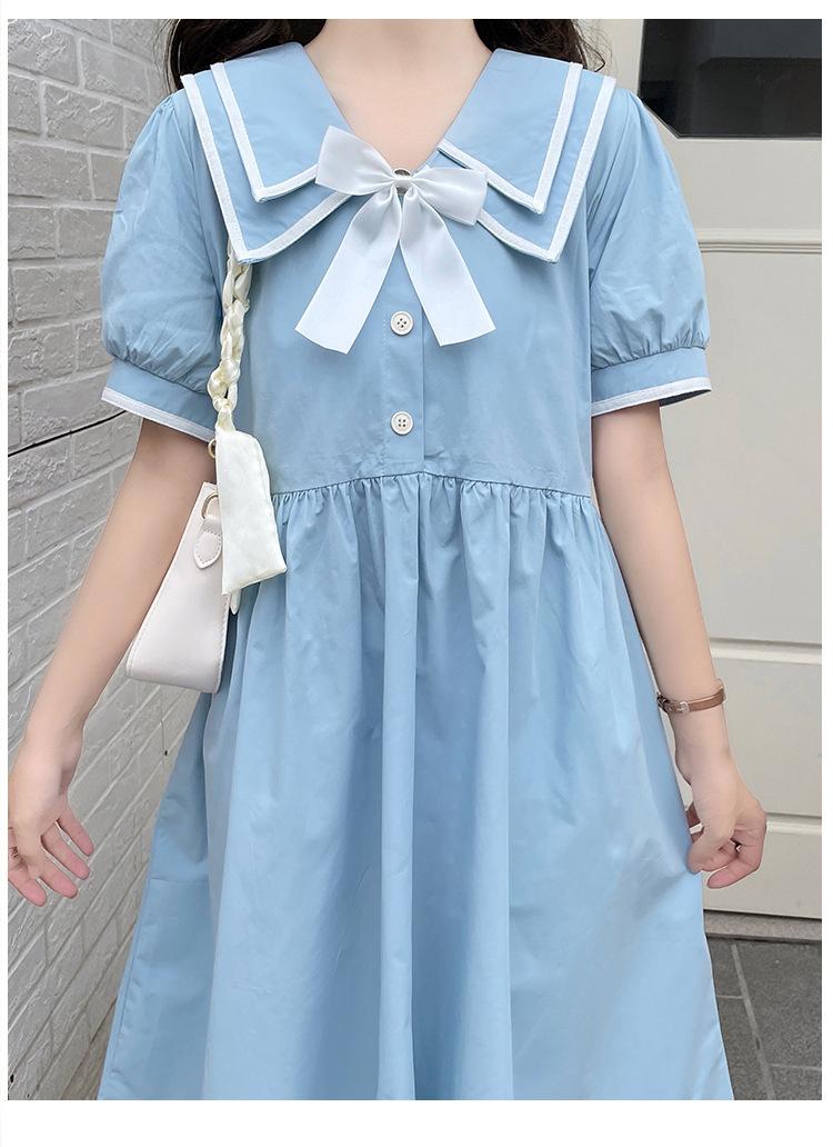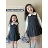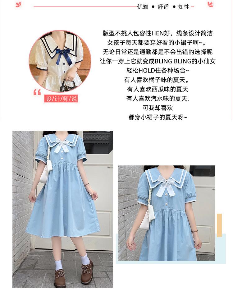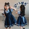 Falda estilo universitario para niñas, elegante vestido de verano de manga corta con cuello de muñeca fino, de moda infantil