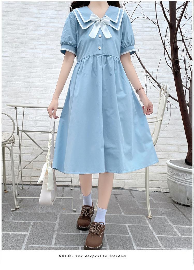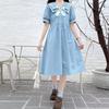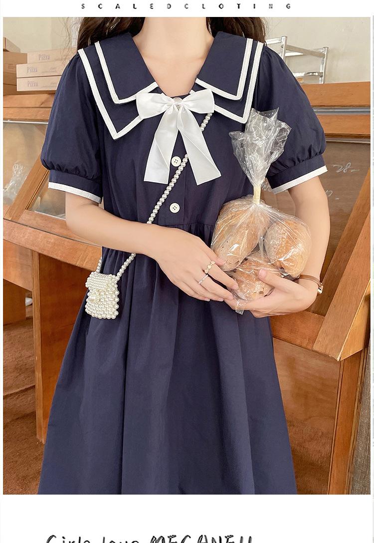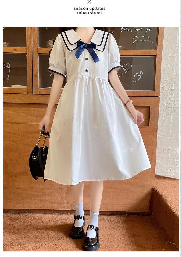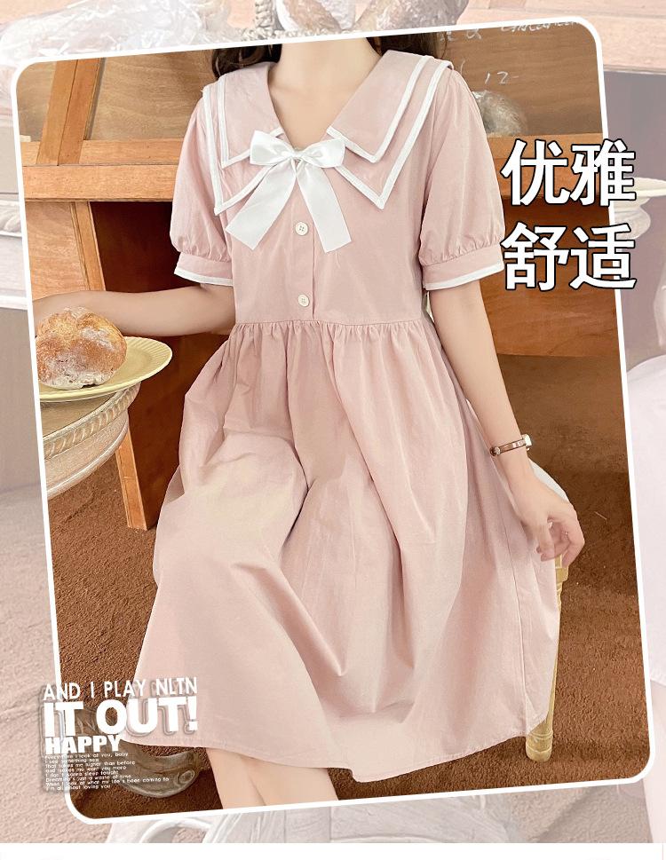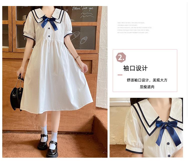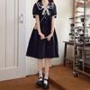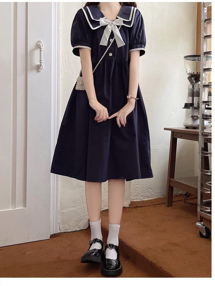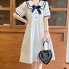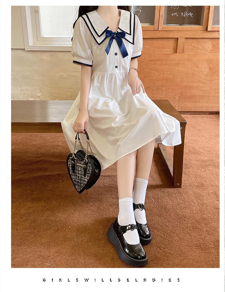 Falda estilo universitario para niñas, elegante vestido de verano de manga corta con cuello de muñeca fino, de moda infantil