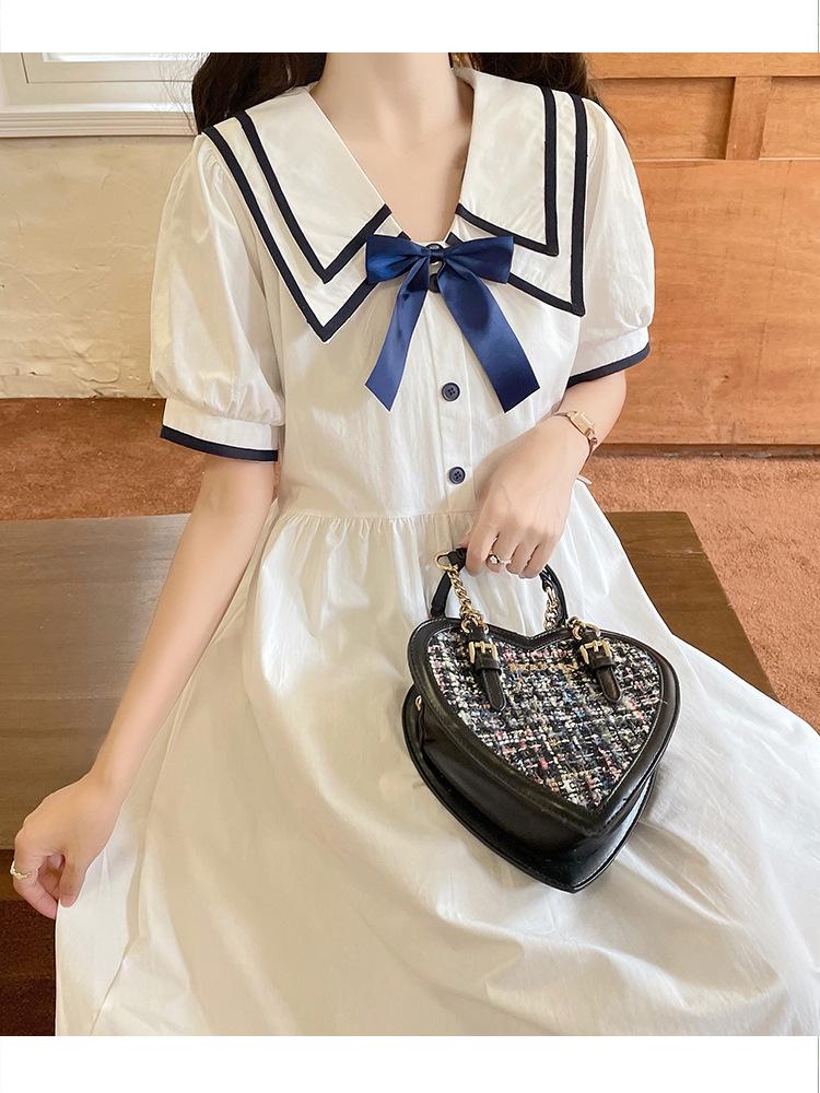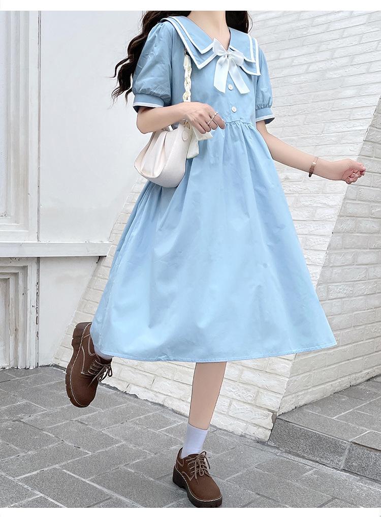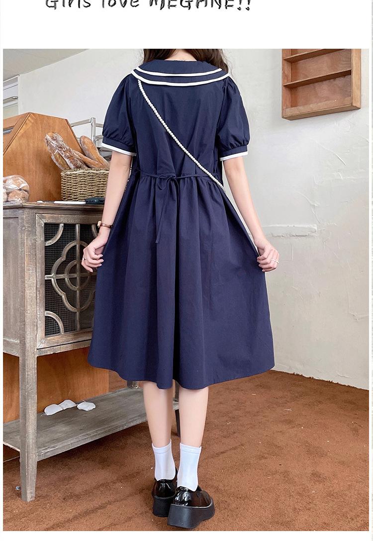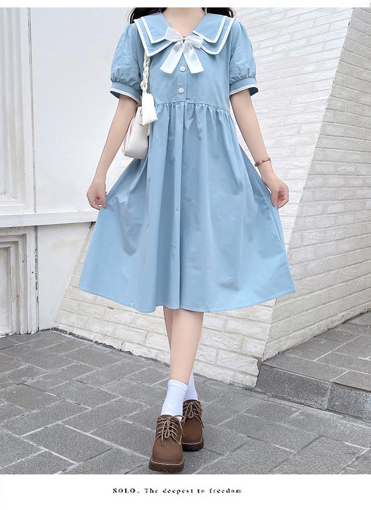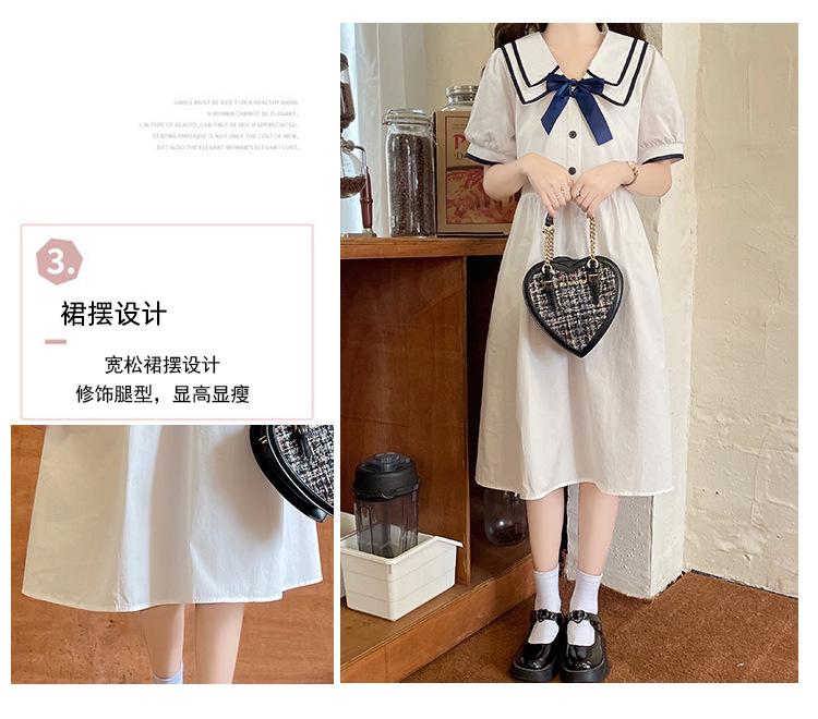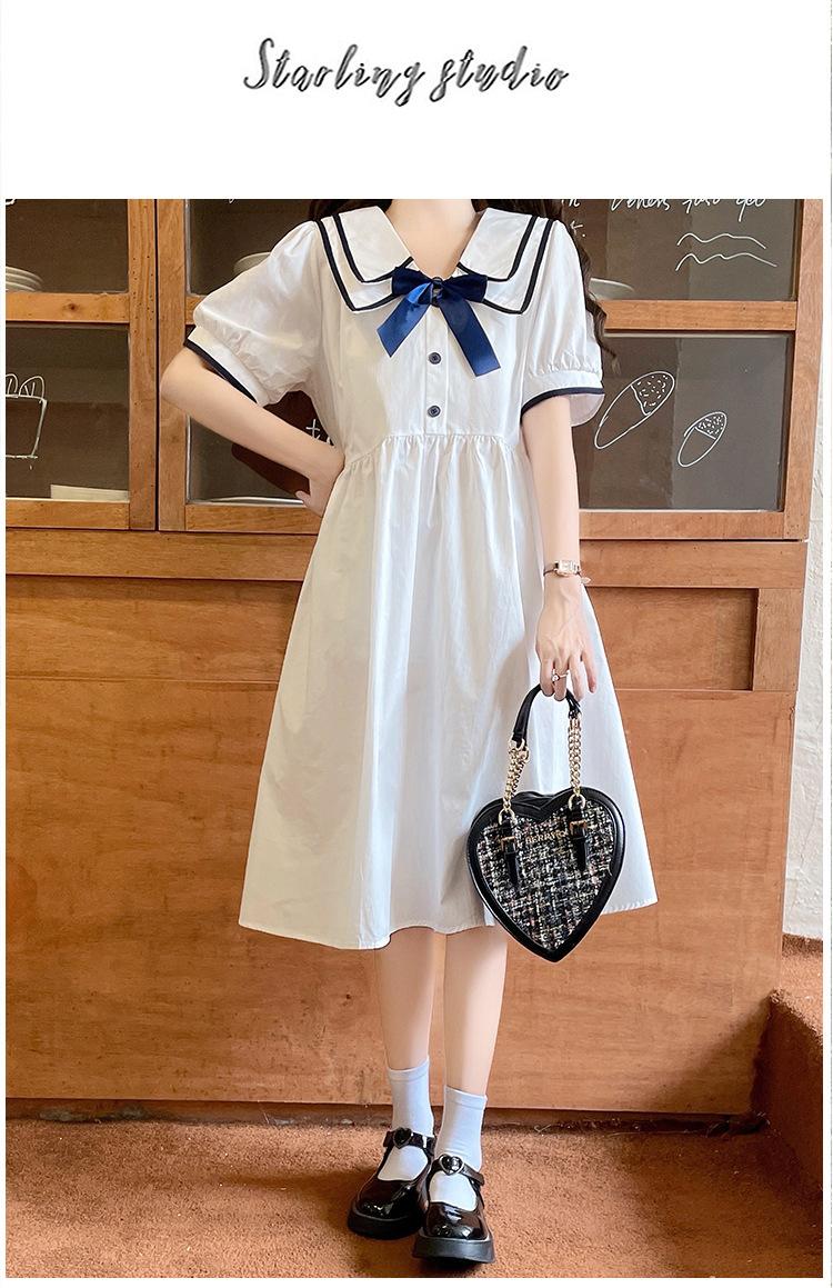 Falda estilo universitario para niñas, elegante vestido de verano de manga corta con cuello de muñeca fino, de moda infantil